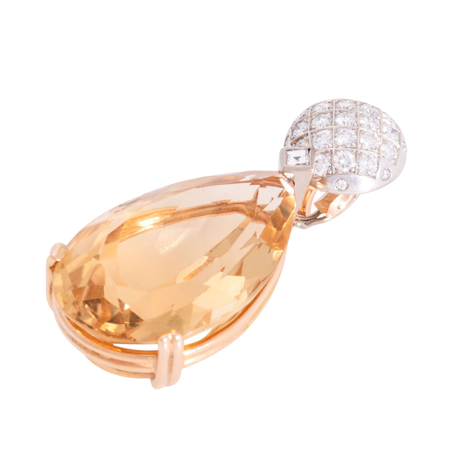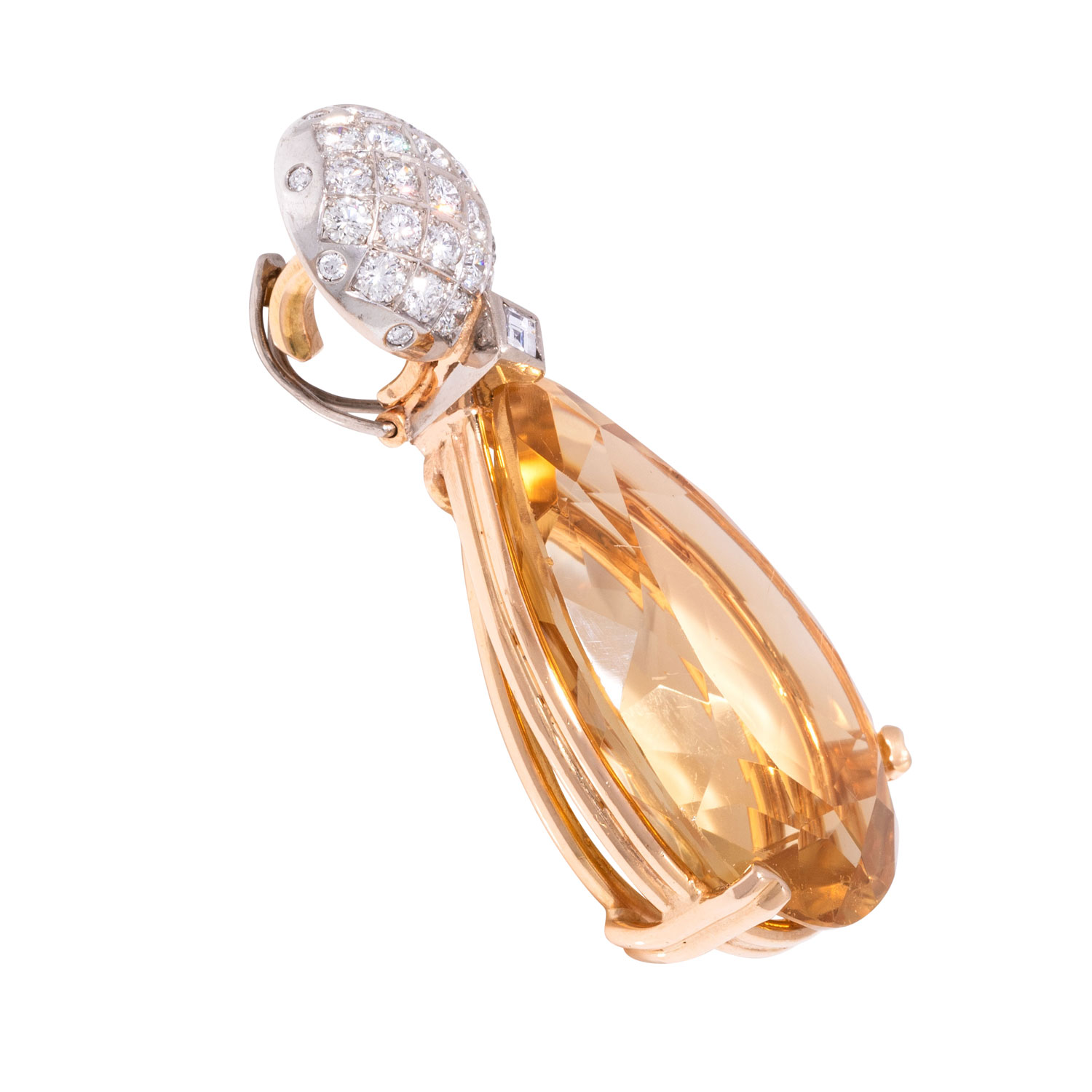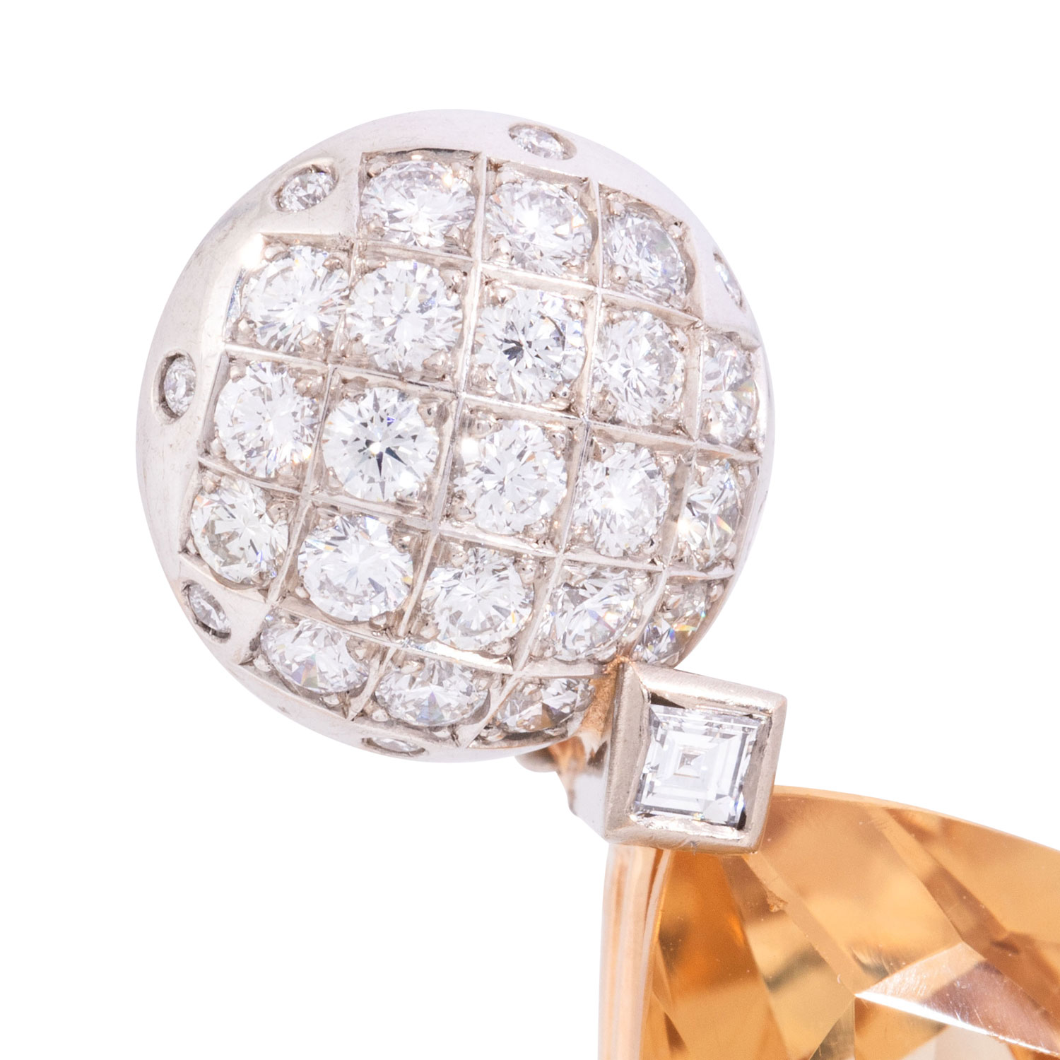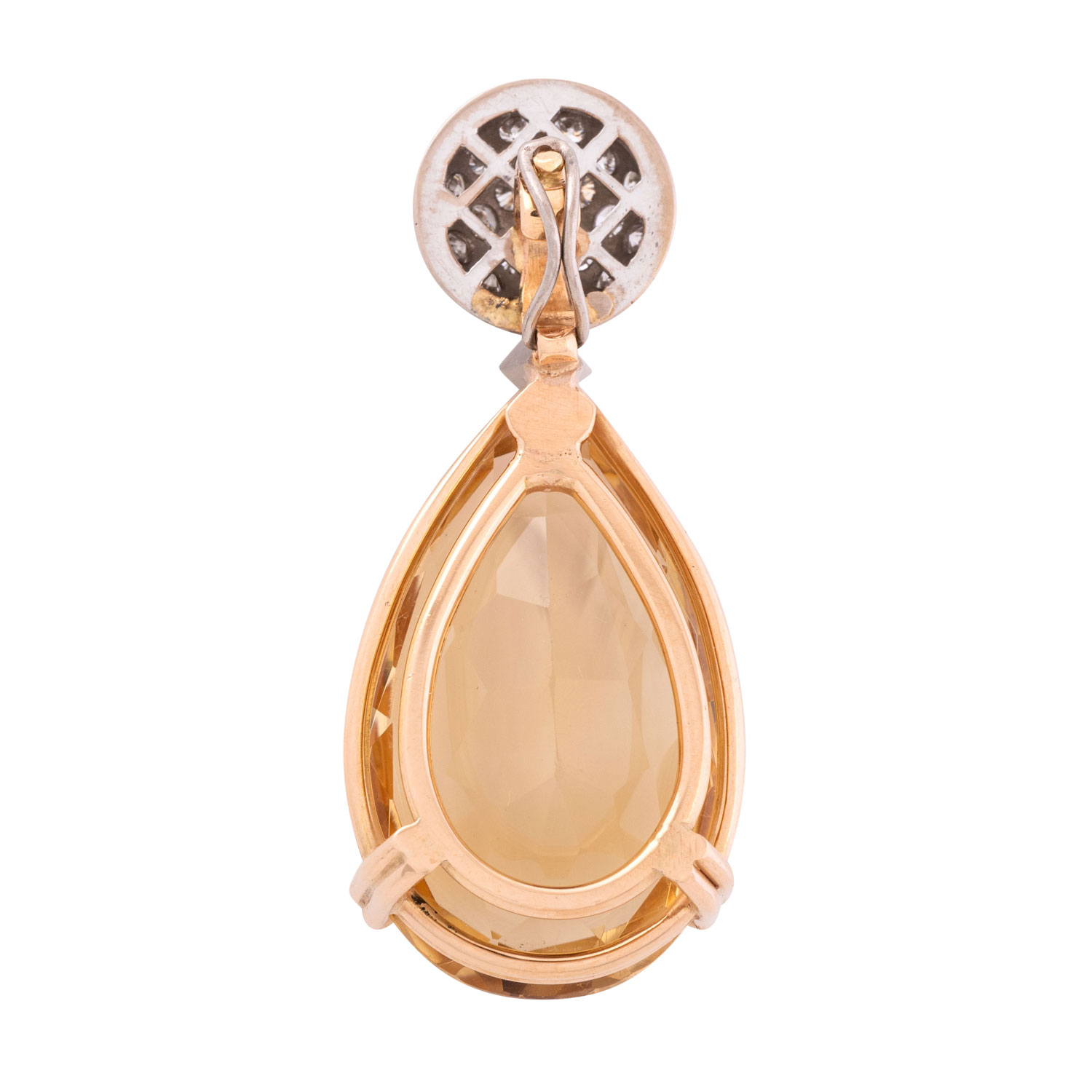 ca. 0,10 ct, FW (G)/VVS, Brillanten zus. ca. 0,9 ct, FW-WEISS (G-H)/VS und Citrin im Tropfenschliff 30 x 19 mm, GG/WG 18K, 16,7 g, L x B 45 x19 mm, 21. Jh., guter Zustand.