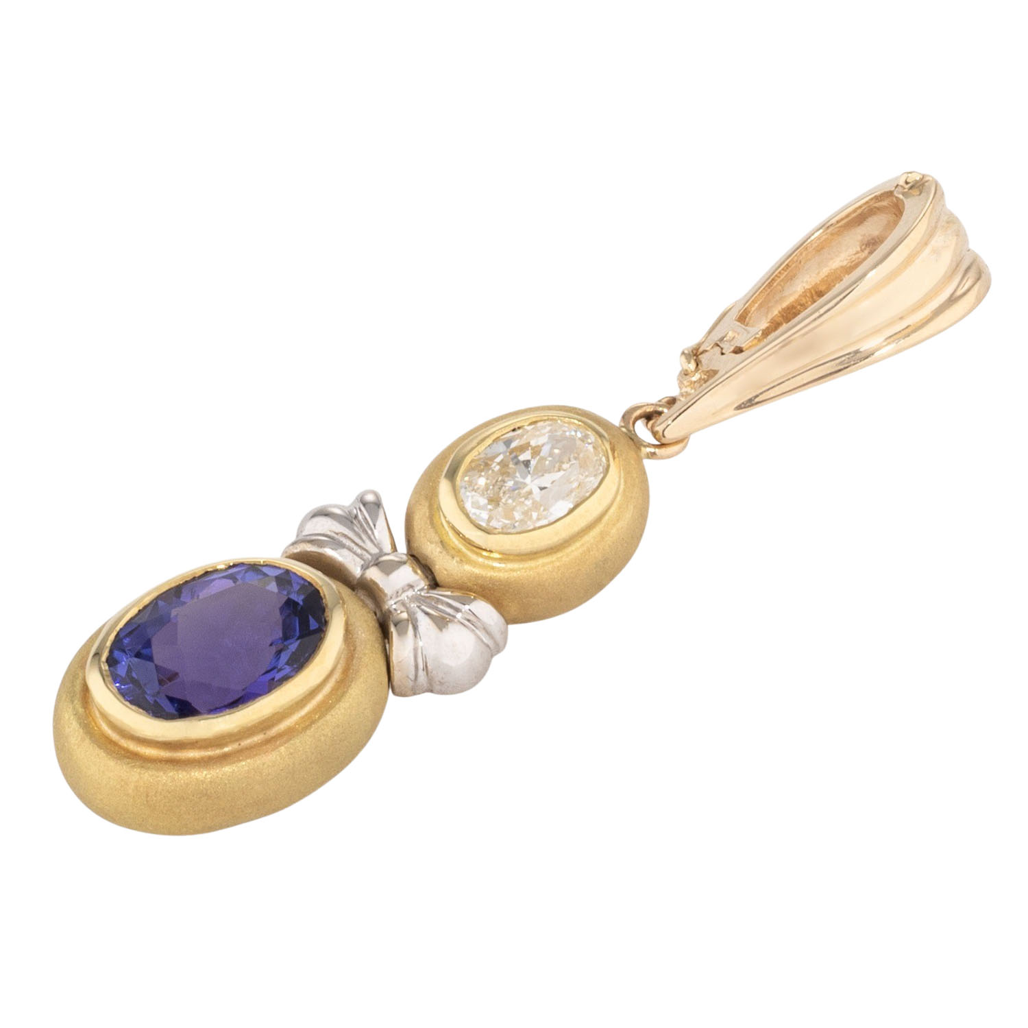Clip-Anhänger mit Tansanit und ovalem Diamant,