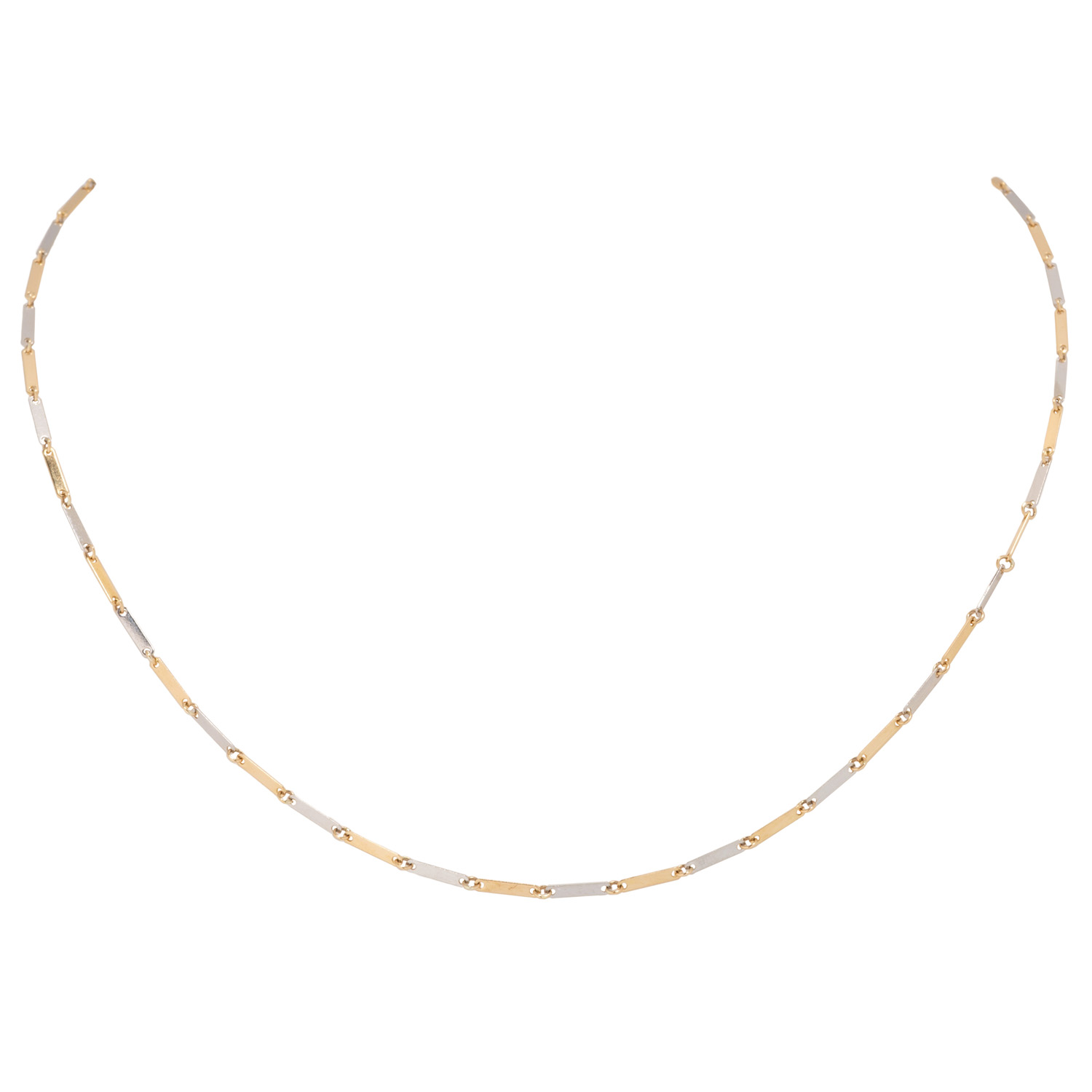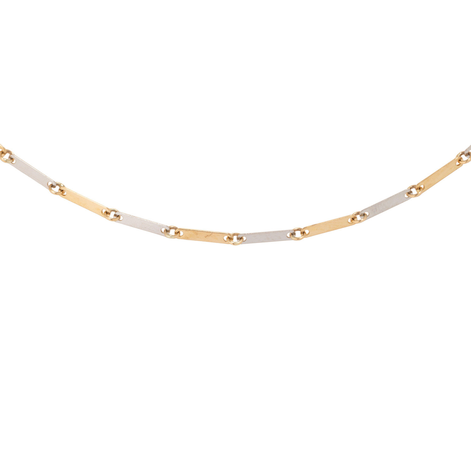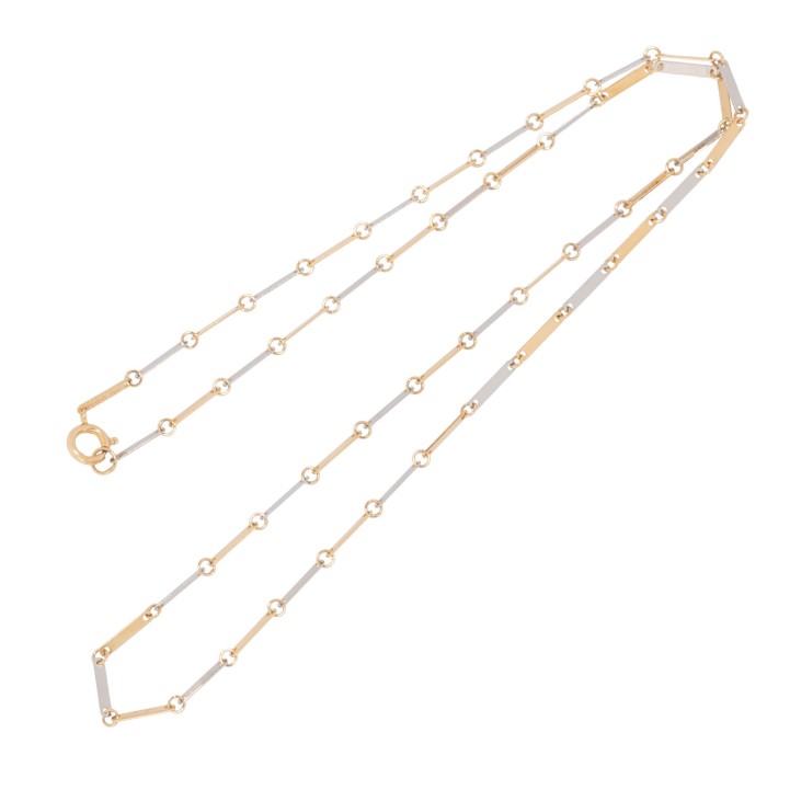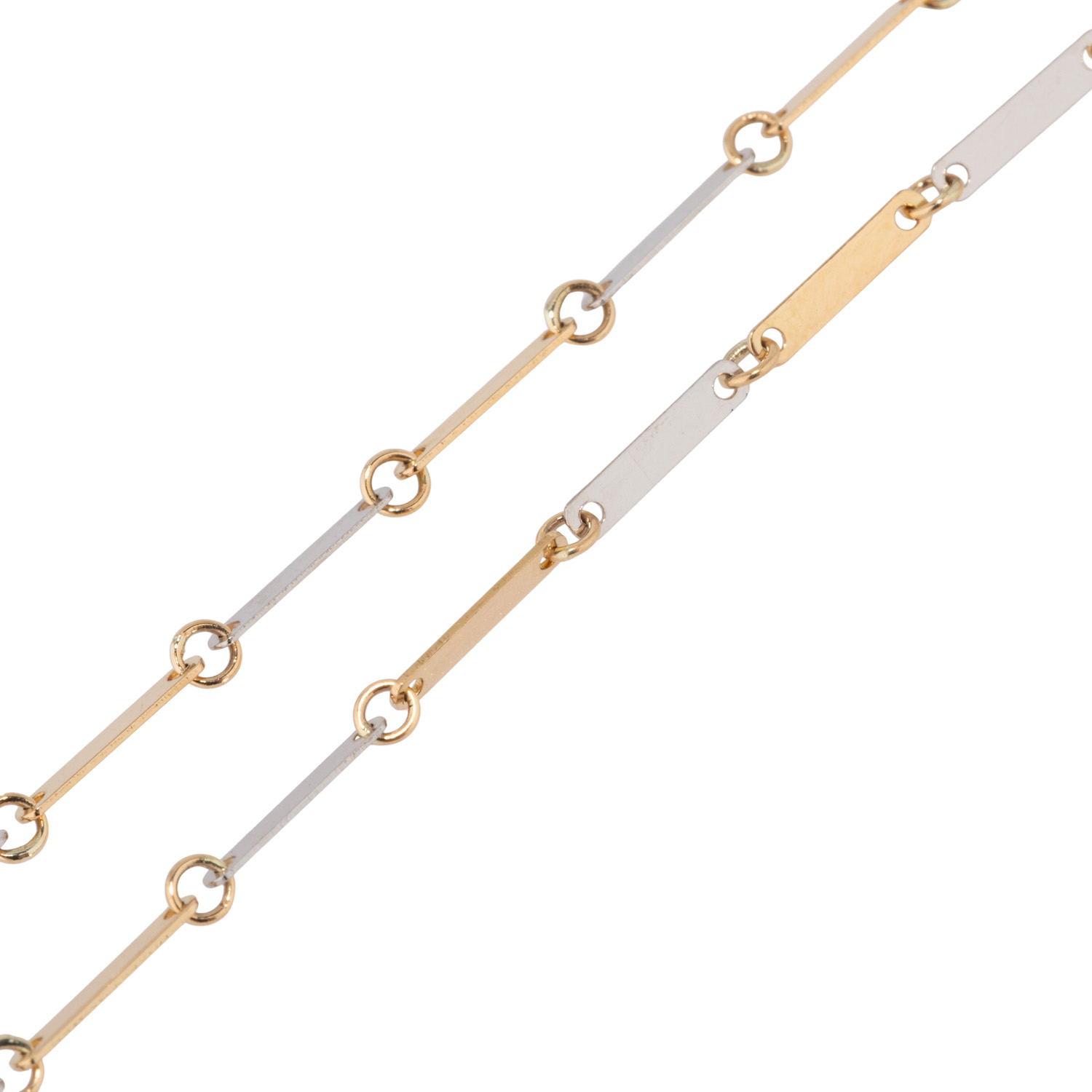 abwechselnd Gold- und Platin-Plättchen, GG 18K / Pt 950, 2,4 g, L: 38,5 cm, B: 1,4 mm, Federring, Ende 20. Jh., minimale Tragespuren.