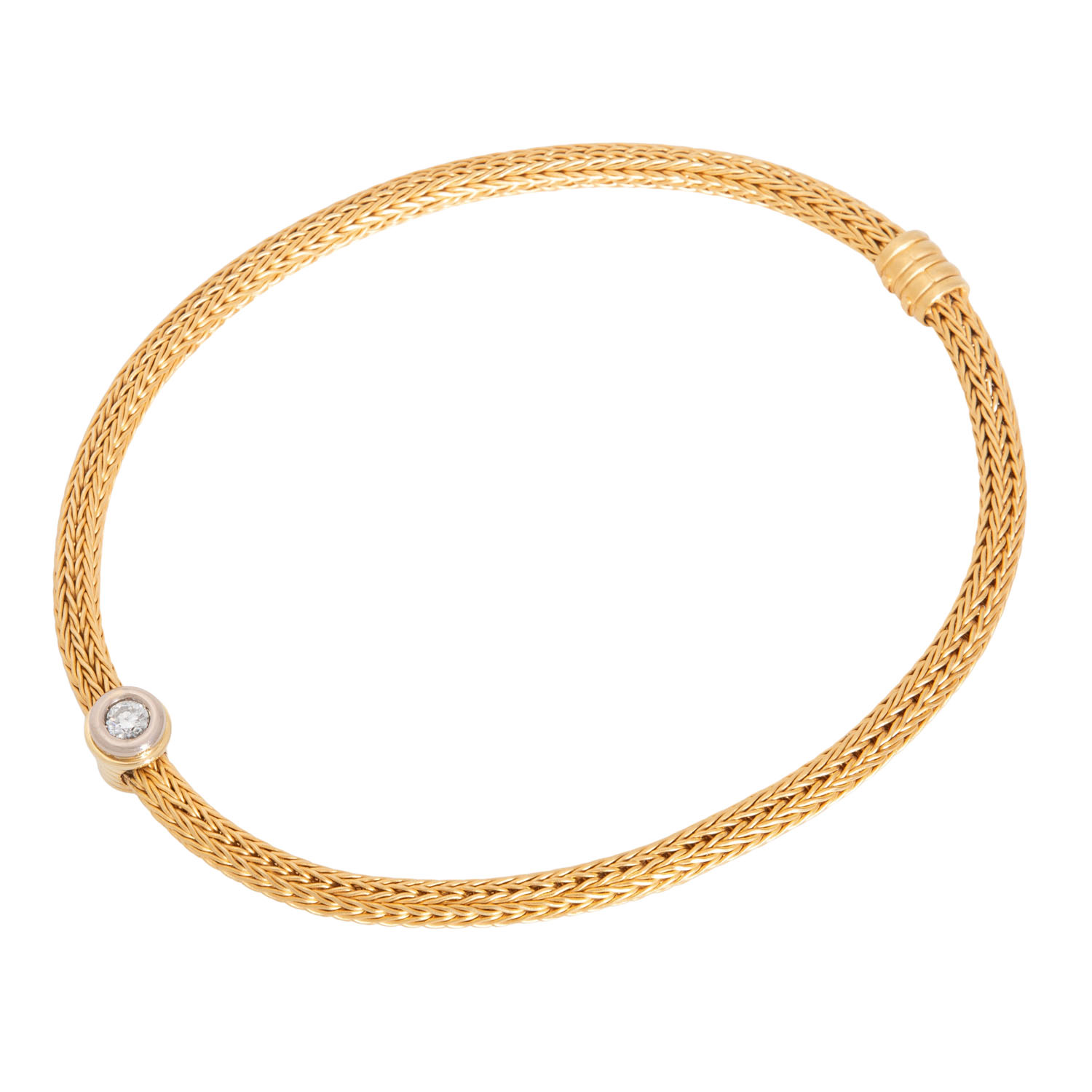 ca. 1 ct, ca. LGW (I-J)/VS, GG/WG 18K, 137 g, L: ca. 43 cm, B: ca. 0,7 - 1,2 cm, Ende 20. Jh., leichte Tragespuren, mit Herstellerpunzen, massiv gearbeitet.