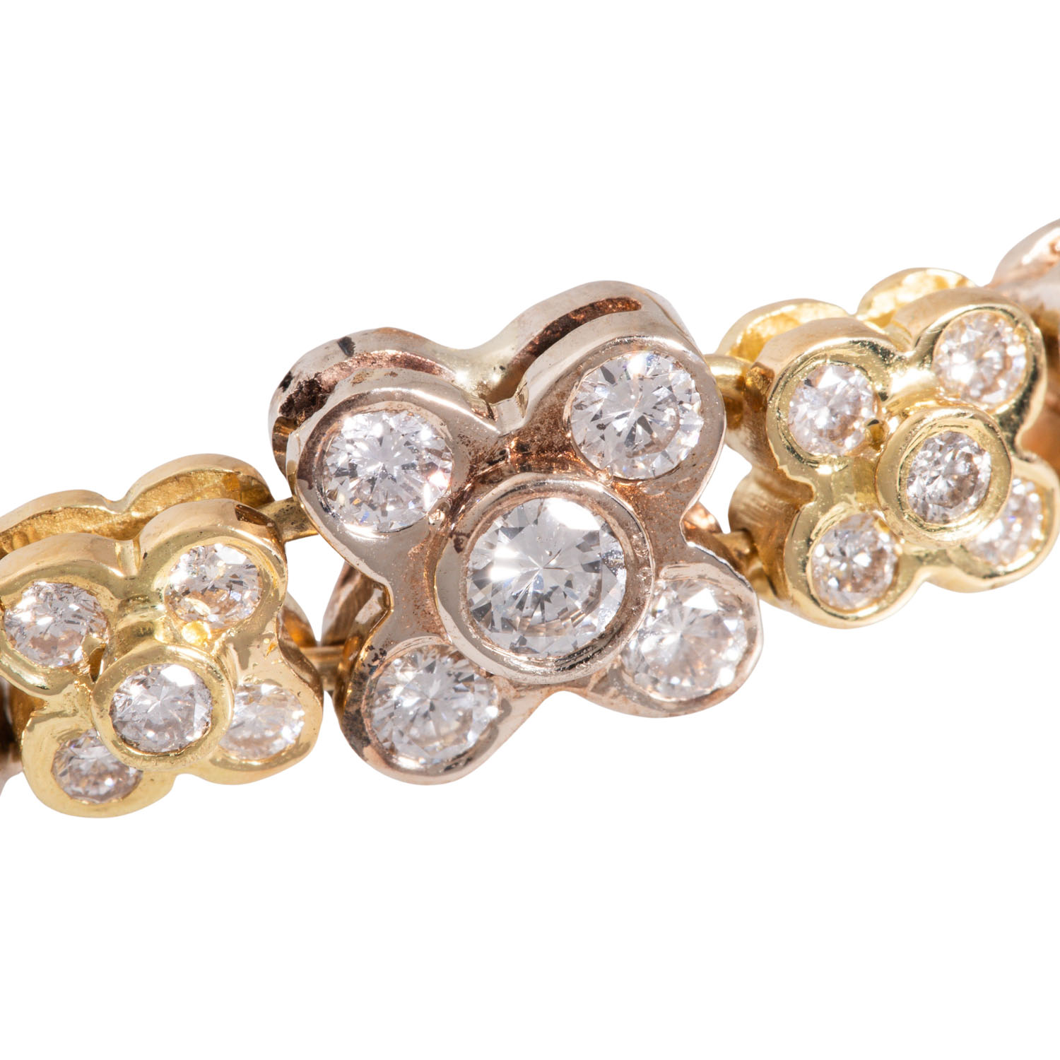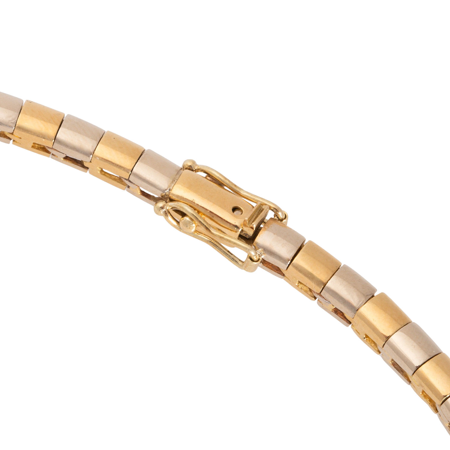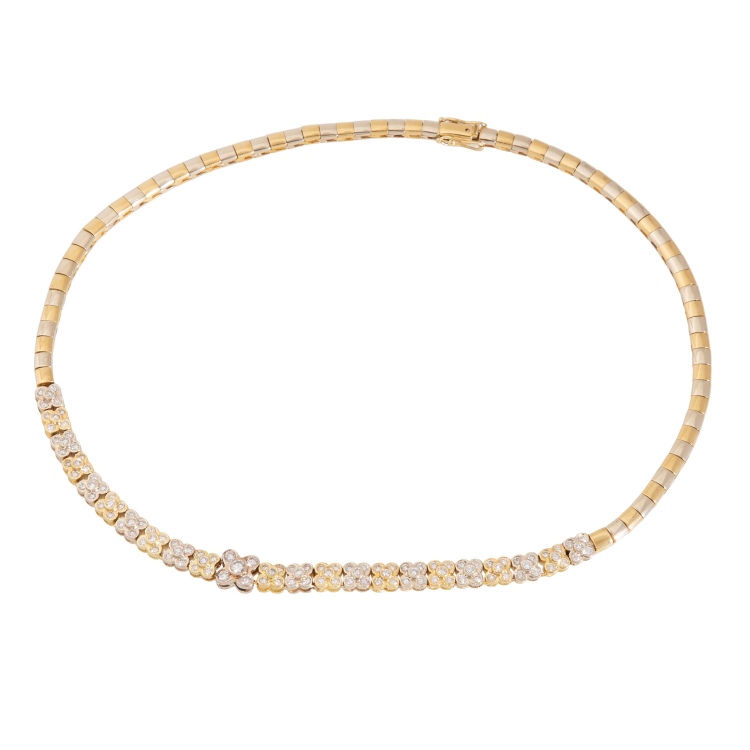 zus. ca. 2,18 ct, zentraler Brillant ca. 0,11 ct, WEISS (H)/SI, GG/WG 18K, 58,3 g, L: ca. 45 cm, B: ca. 4,3 - 10,7 mm, 21. Jh., guter Zustand.