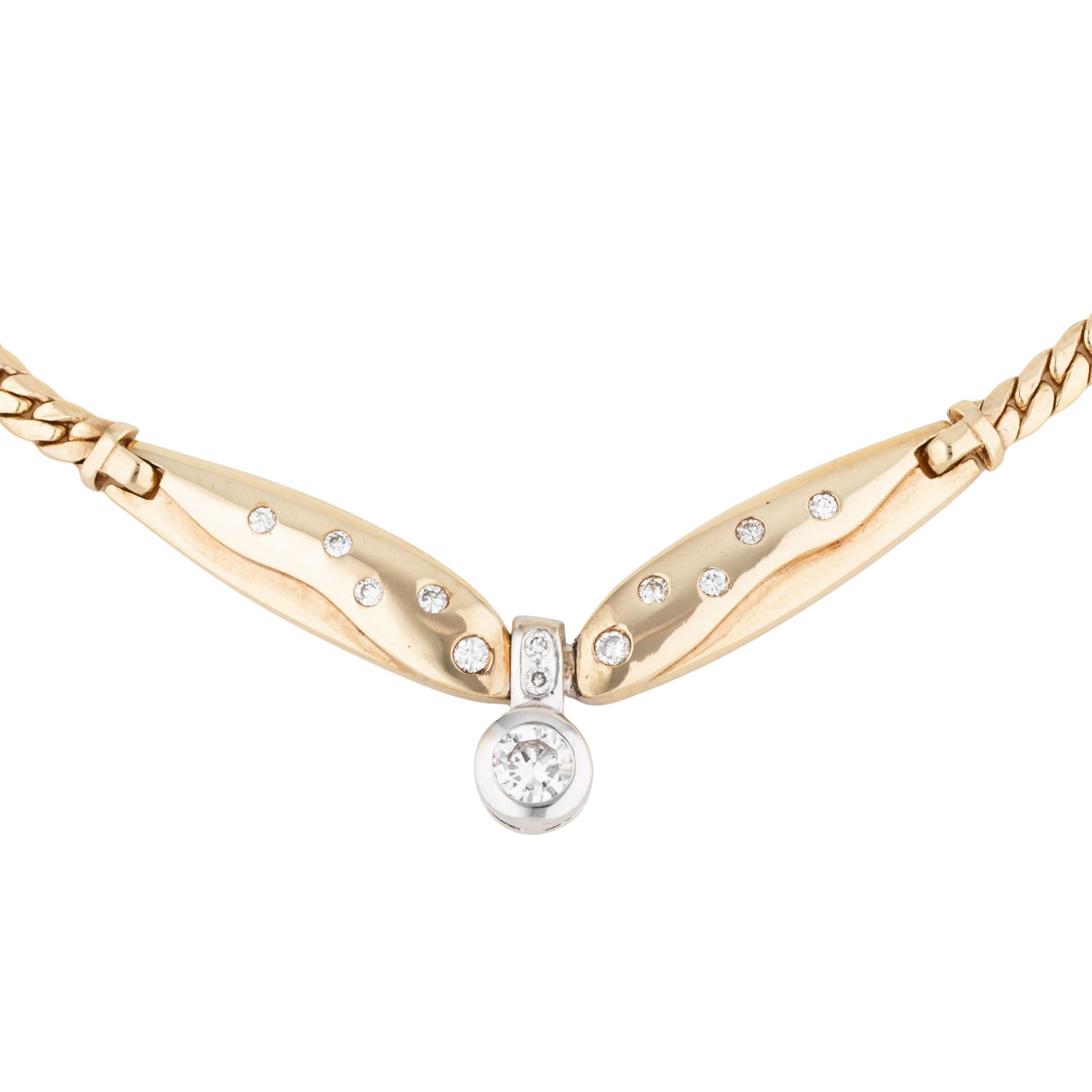 Collier mit 13 Brillanten im Mittelteil,