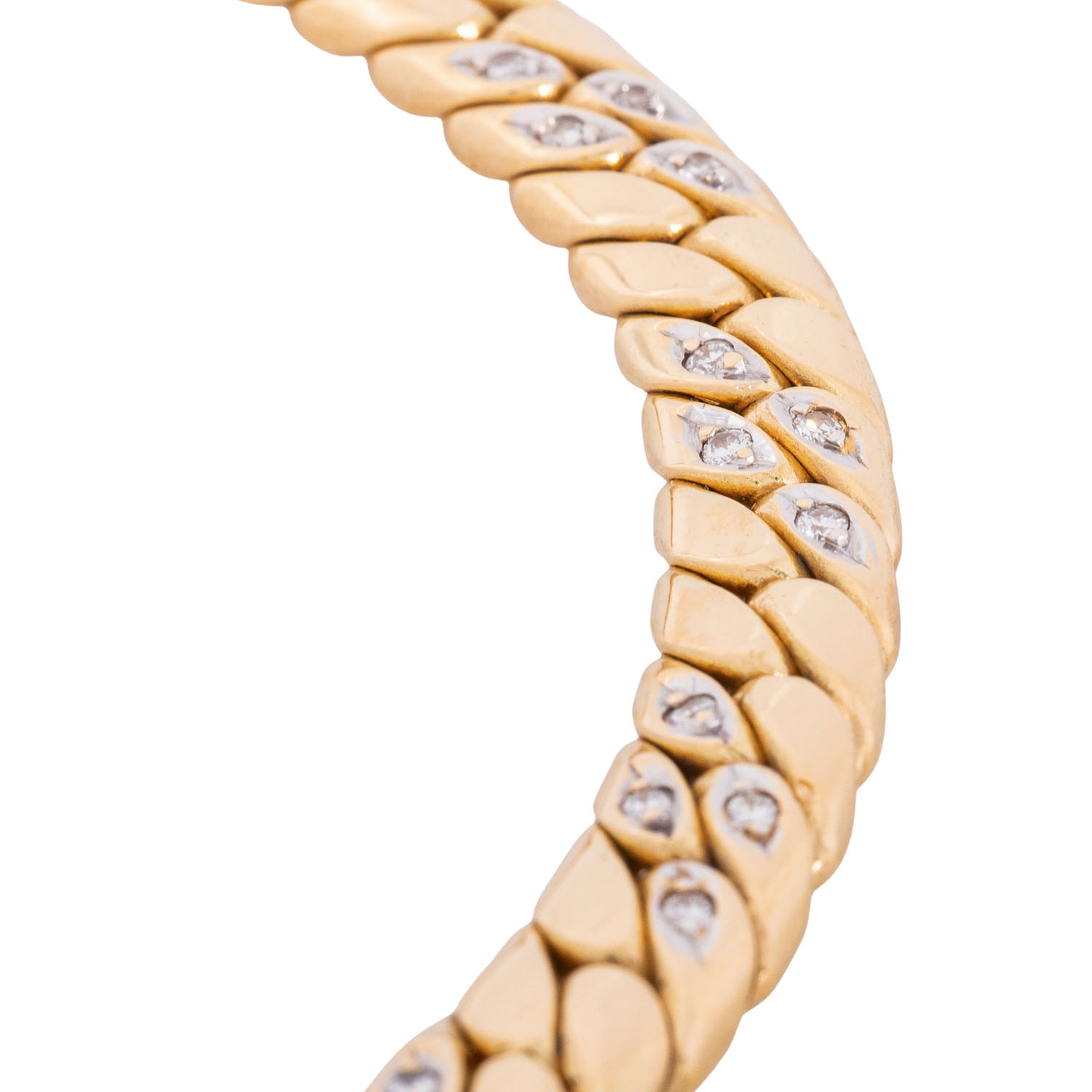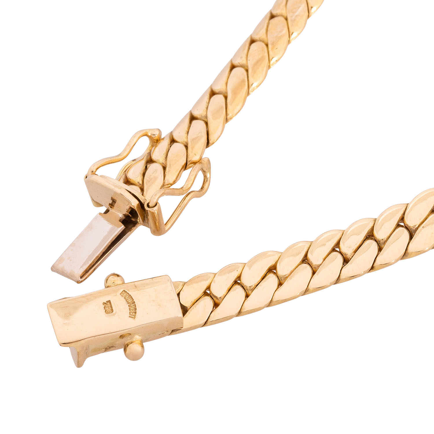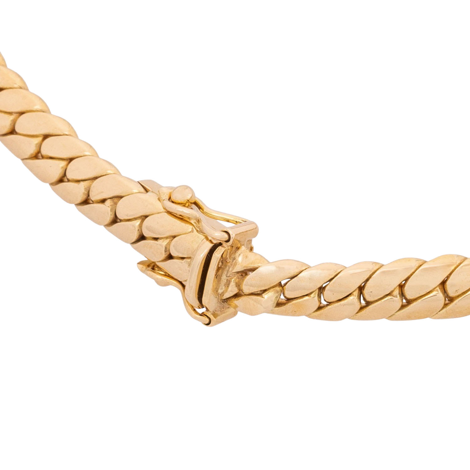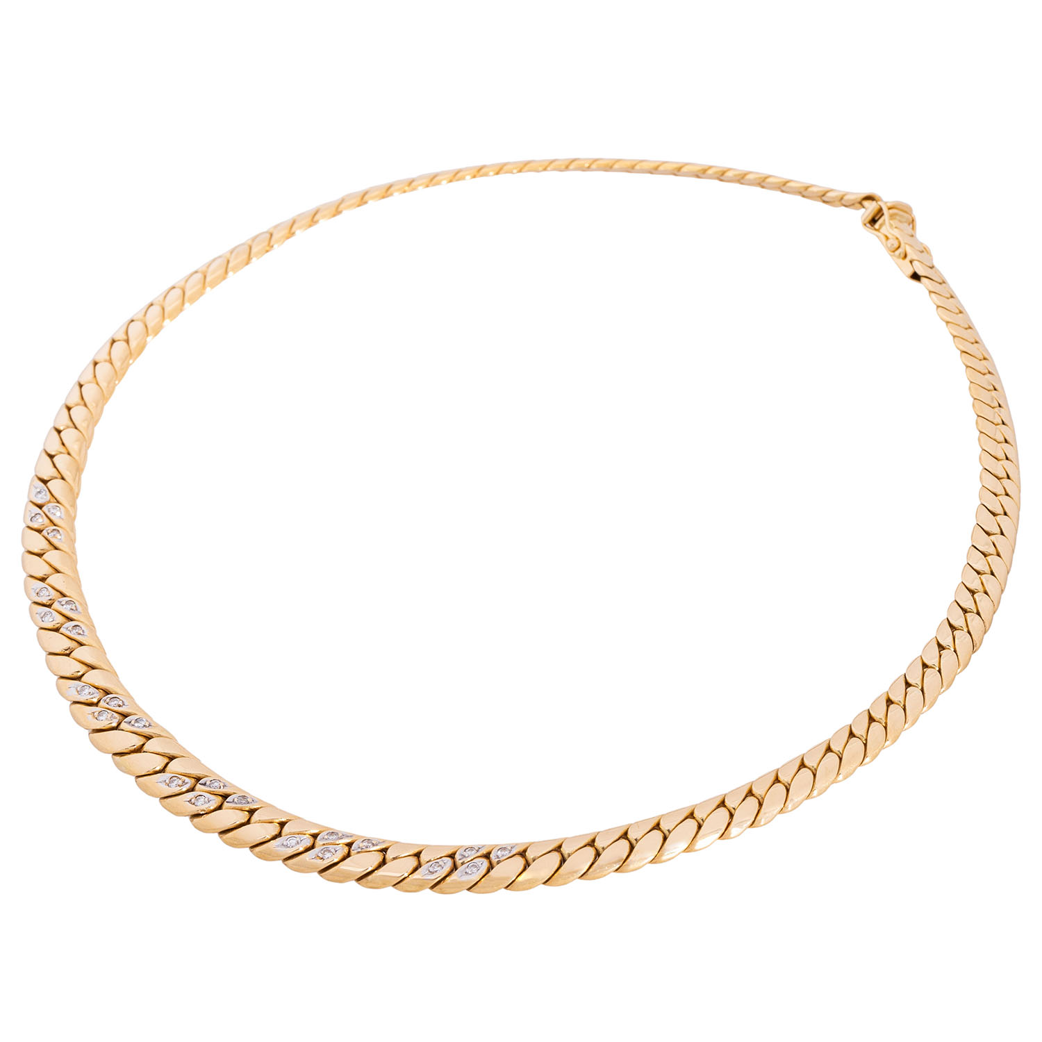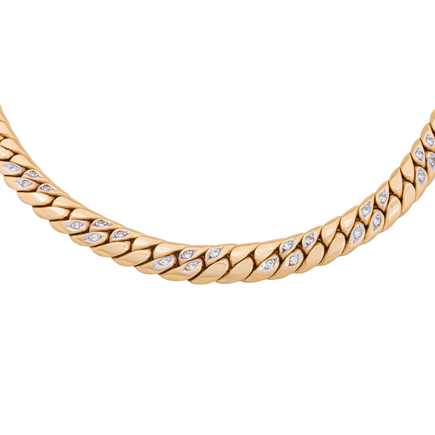 zus. ca. 0,24 ct, WEISS (H)/SI, WG/GG 18K, 83,2 g, L: ca. 42 cm, B: ca. 0,5 - 0,8 cm, Ende 20. Jh., minimale Tragespuren, massiv gearbeitet, Handarbeit (punz.).
