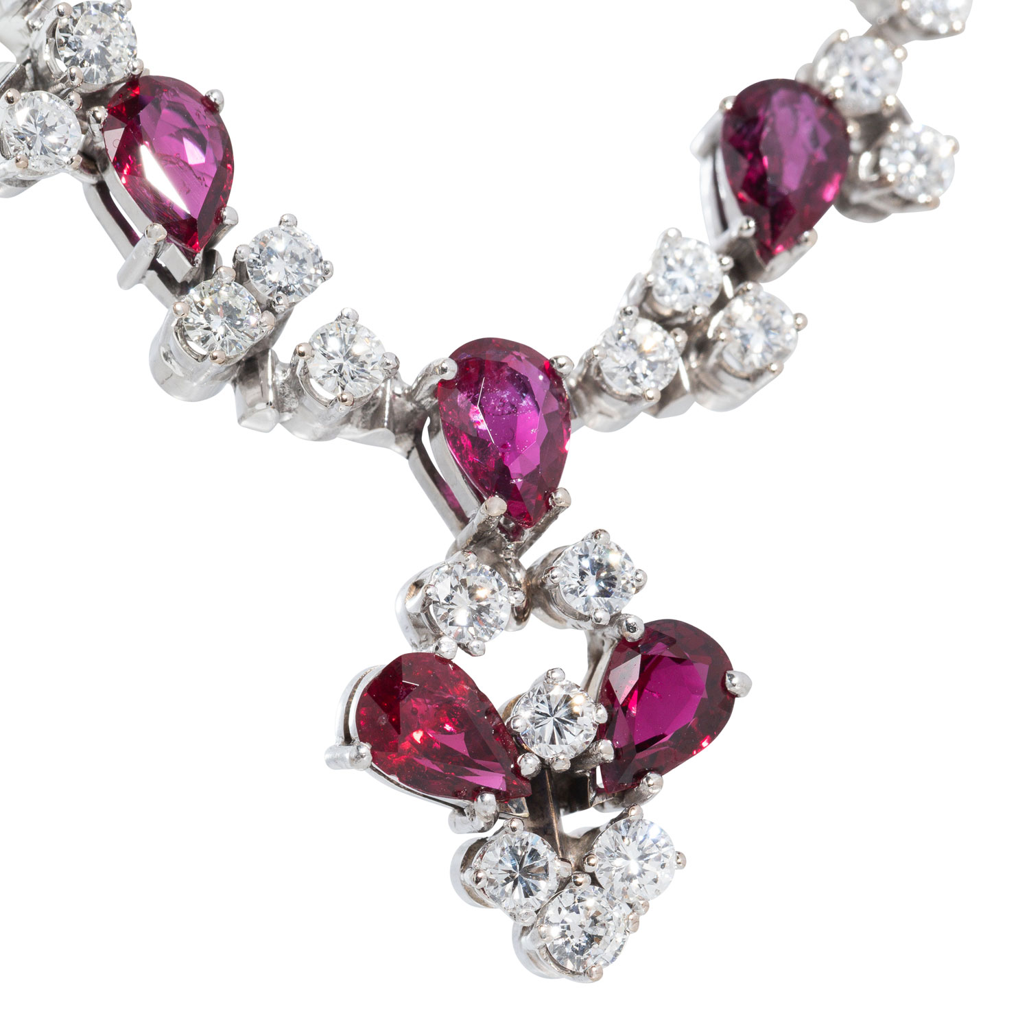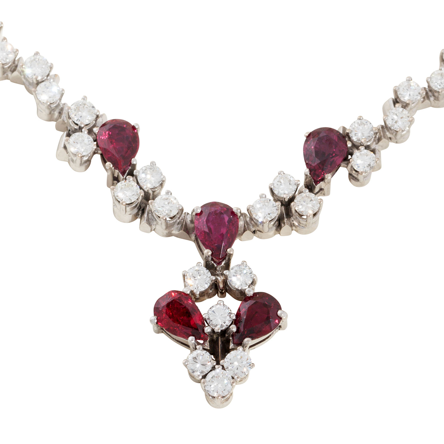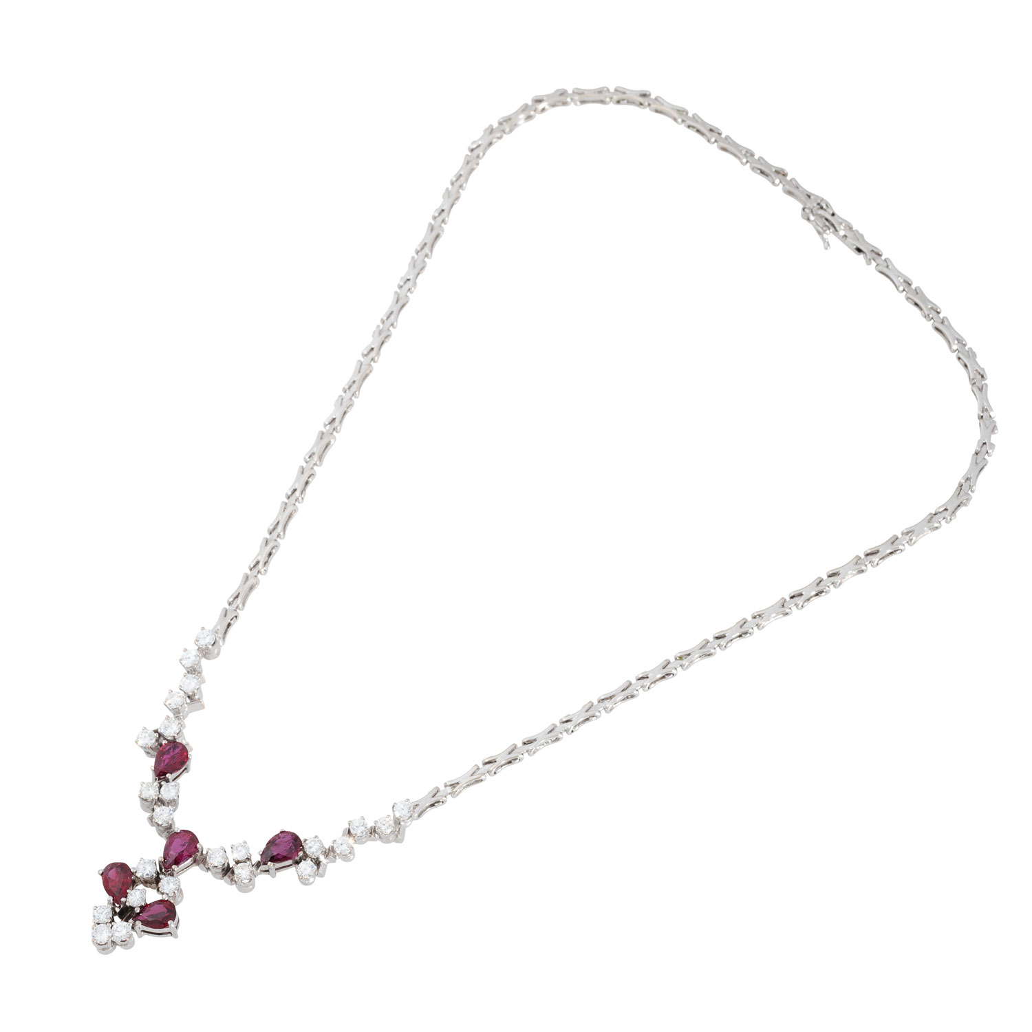 Collier mit 5 schönen Rubintropfen und Brillanten von zus. ca. 1,8 ct,