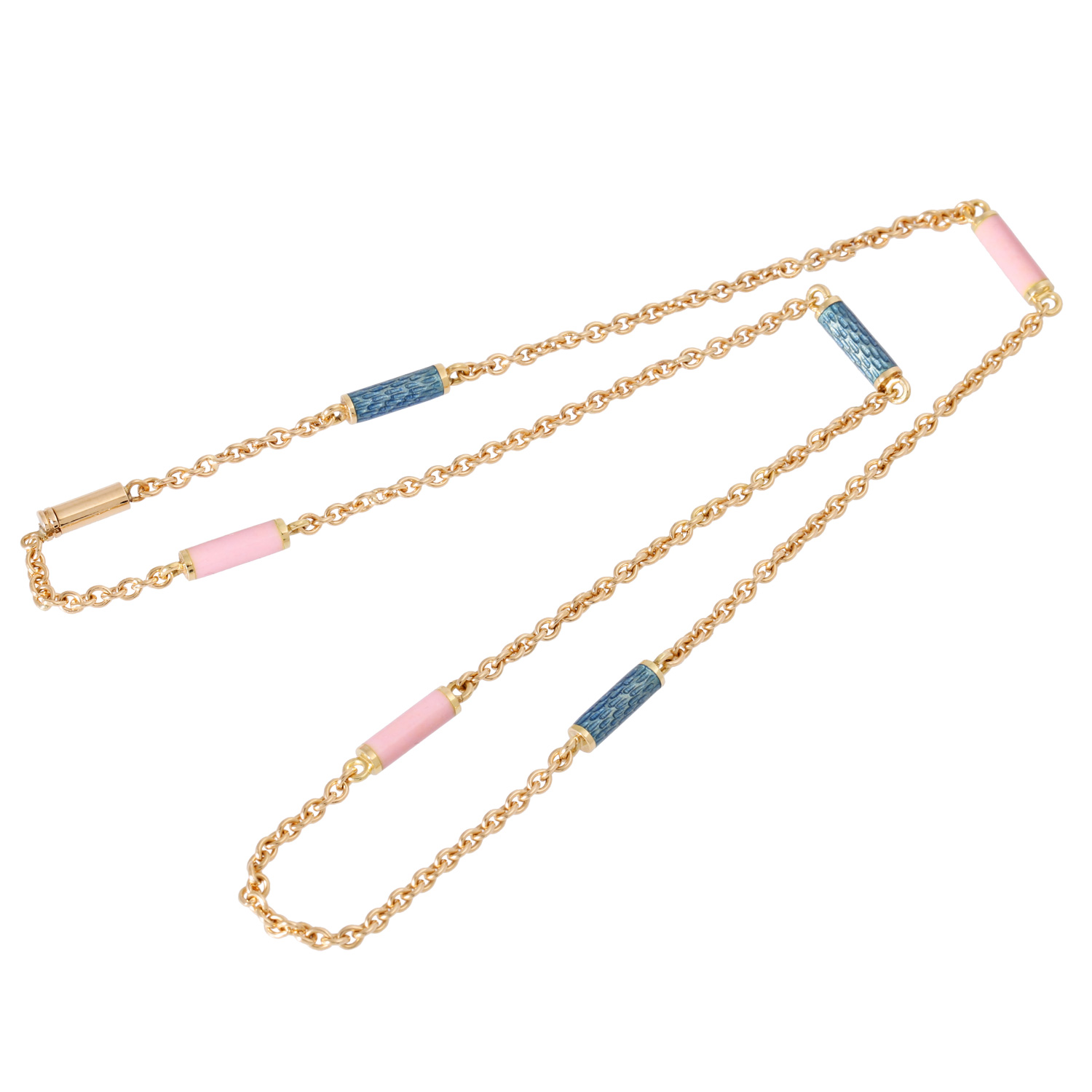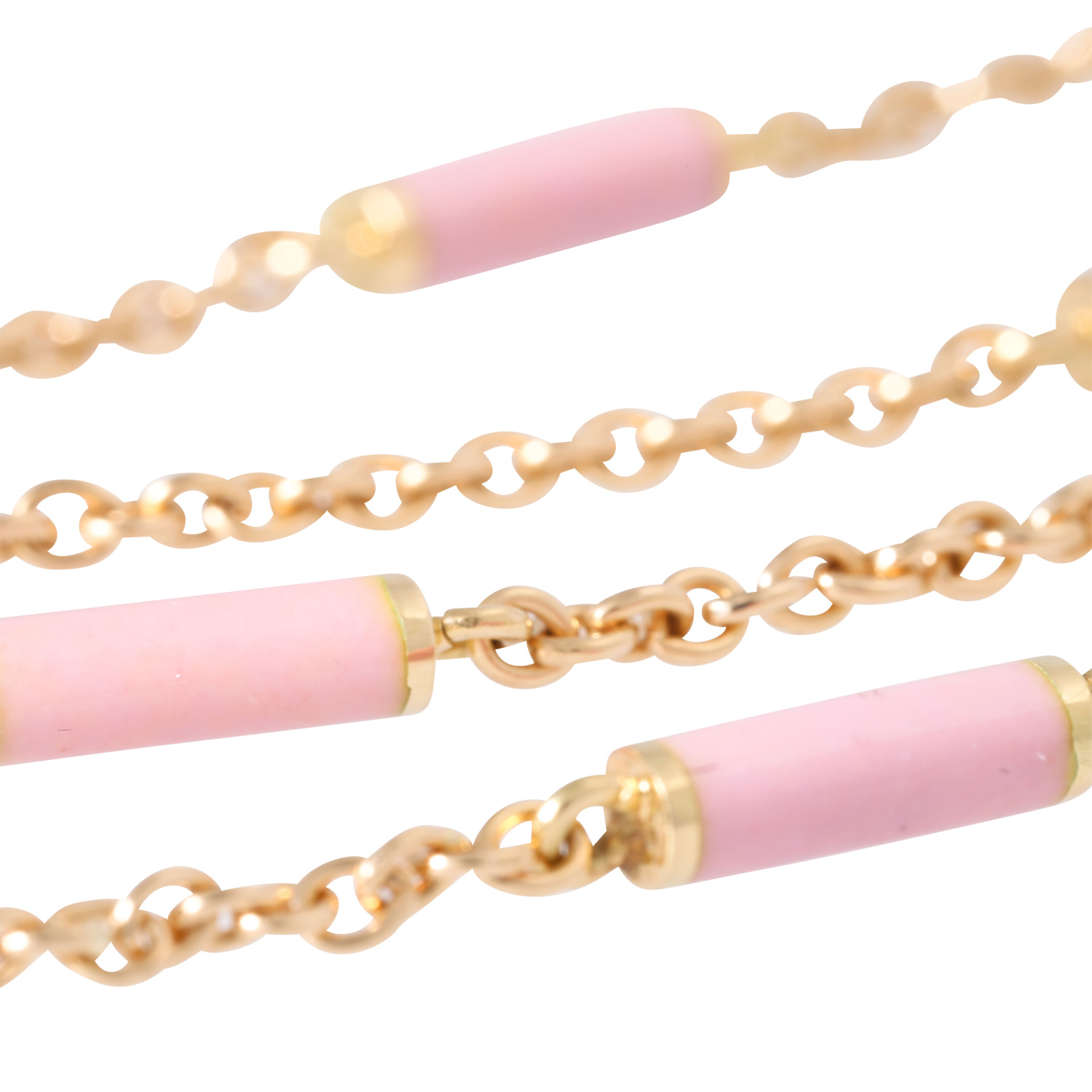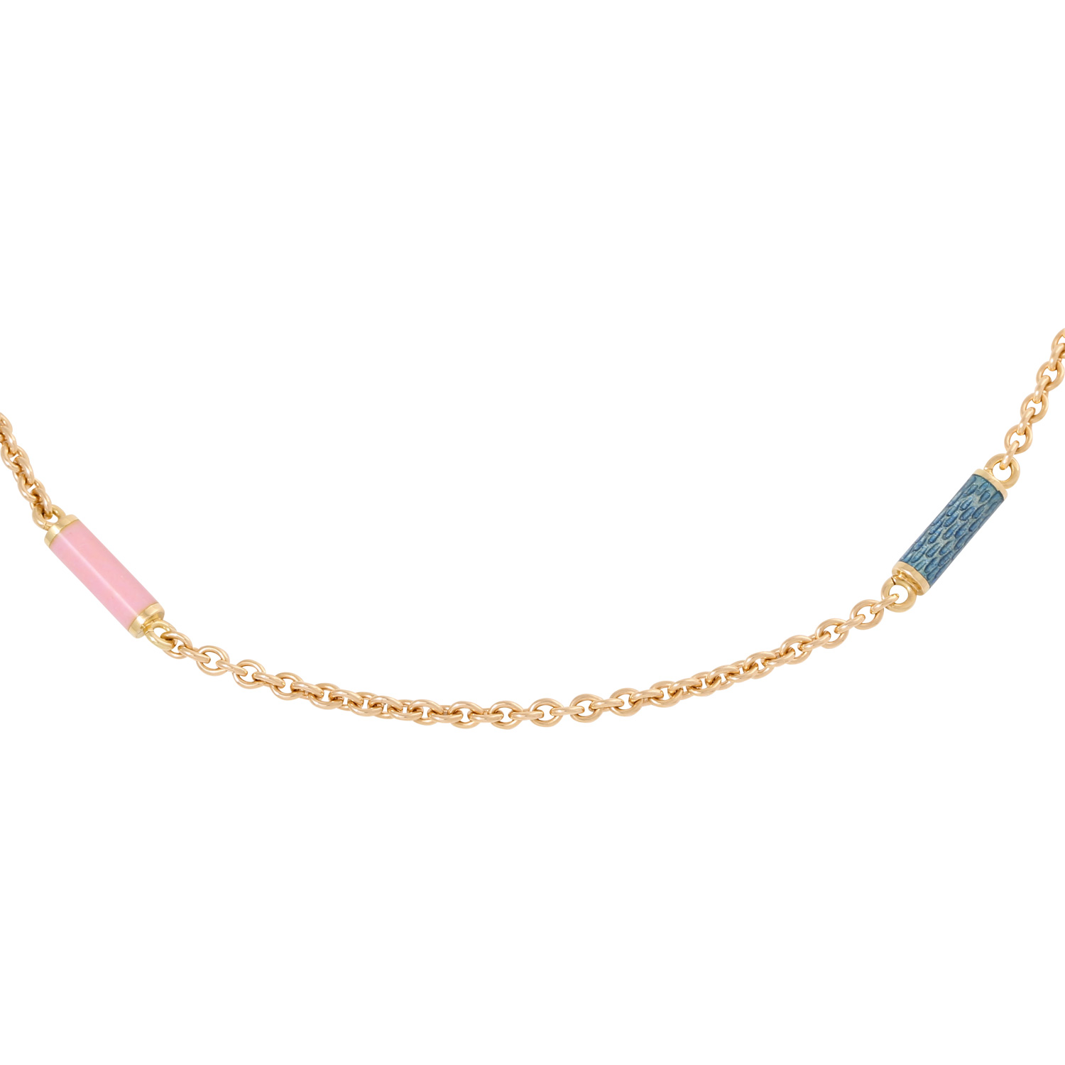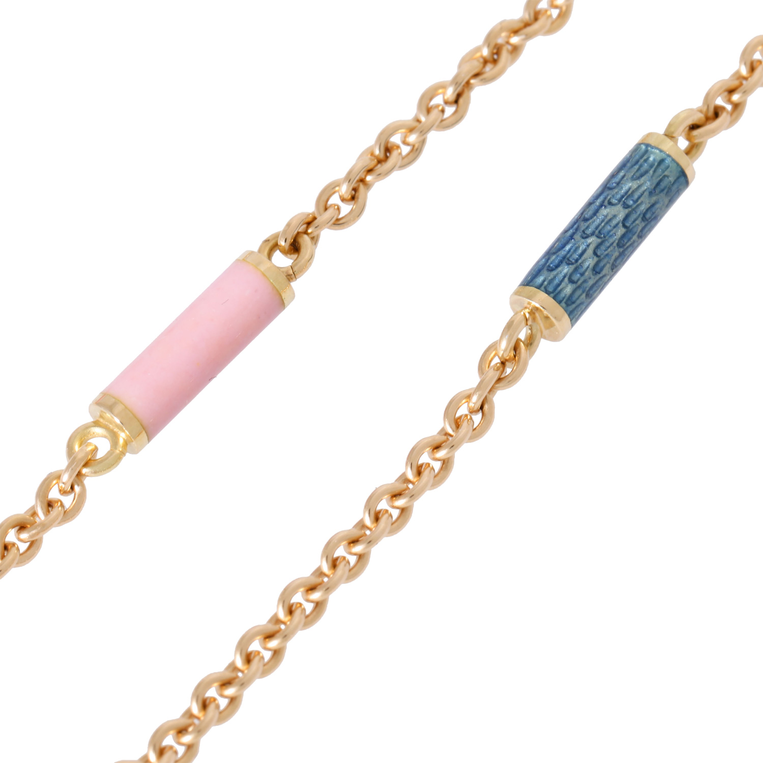 rosa opak und blau transparent, Ankerkette, GG/WG 18K, 13,0 g, L: 43 cm, D: 3,2 mm, Ende 20. Jh., minimale Tragespuren.