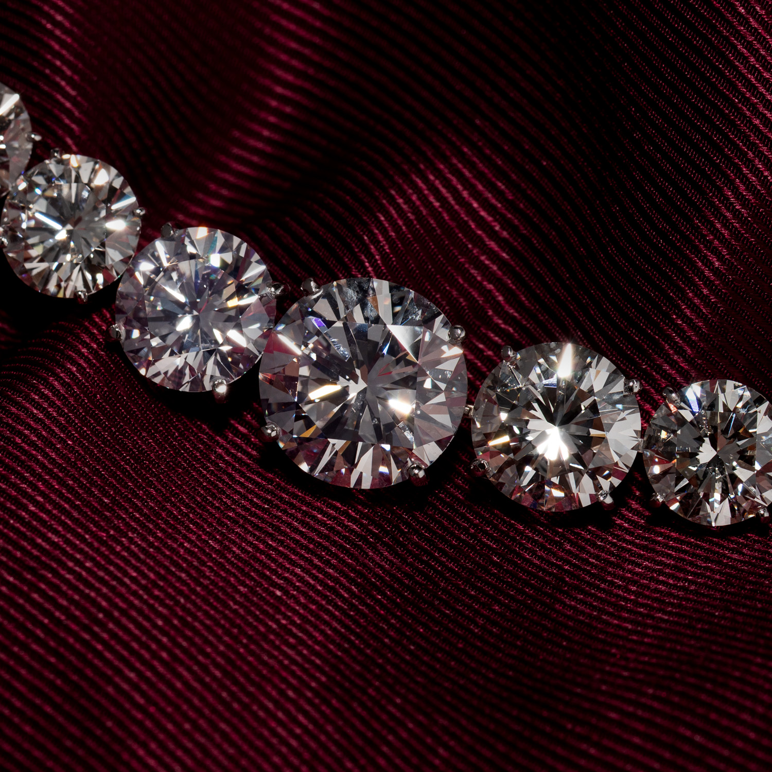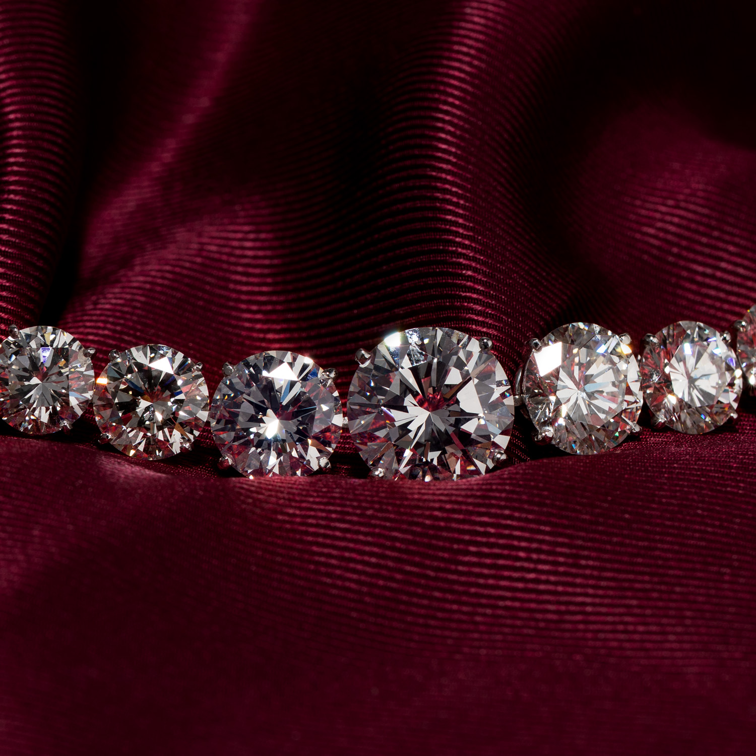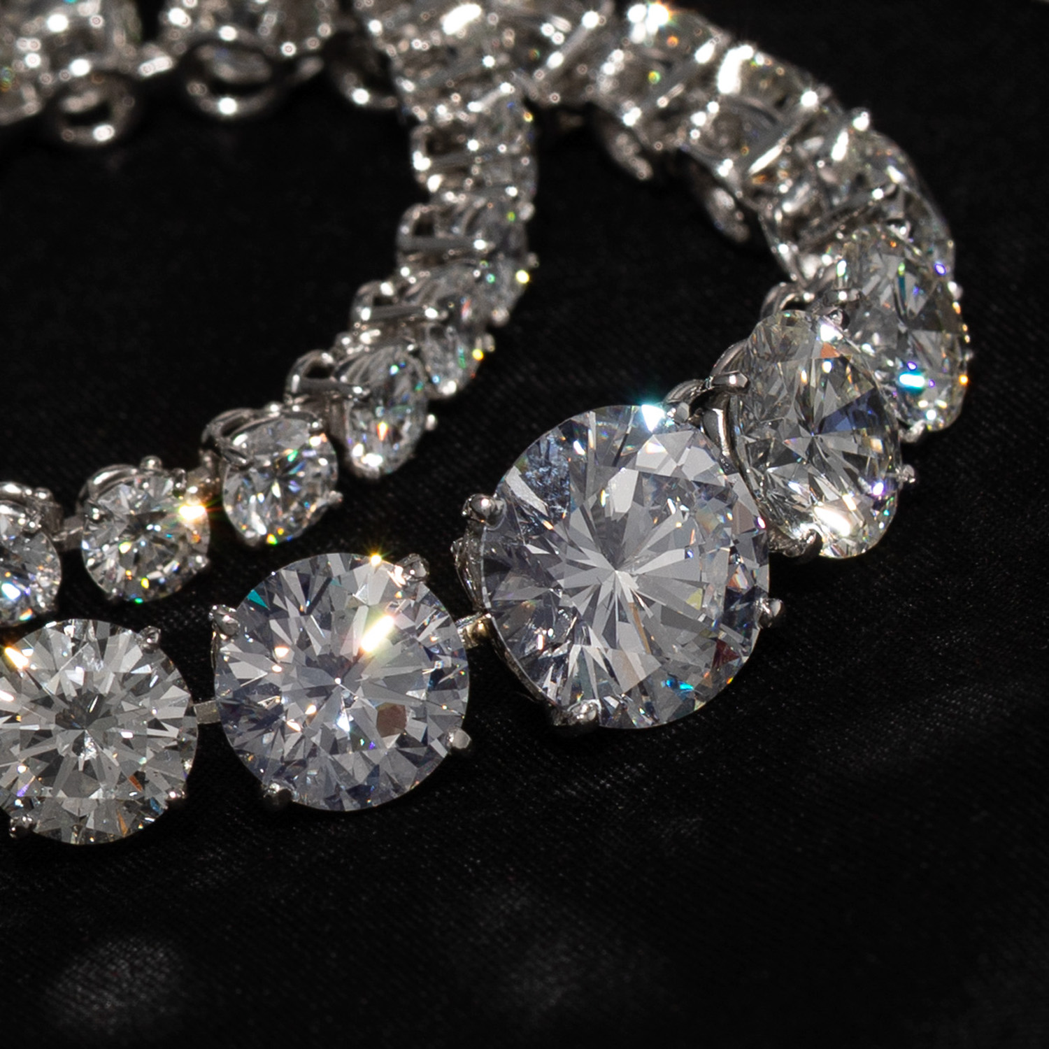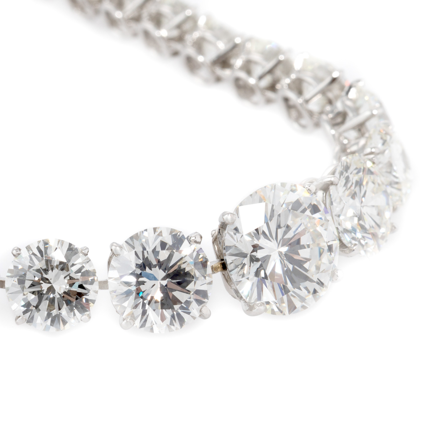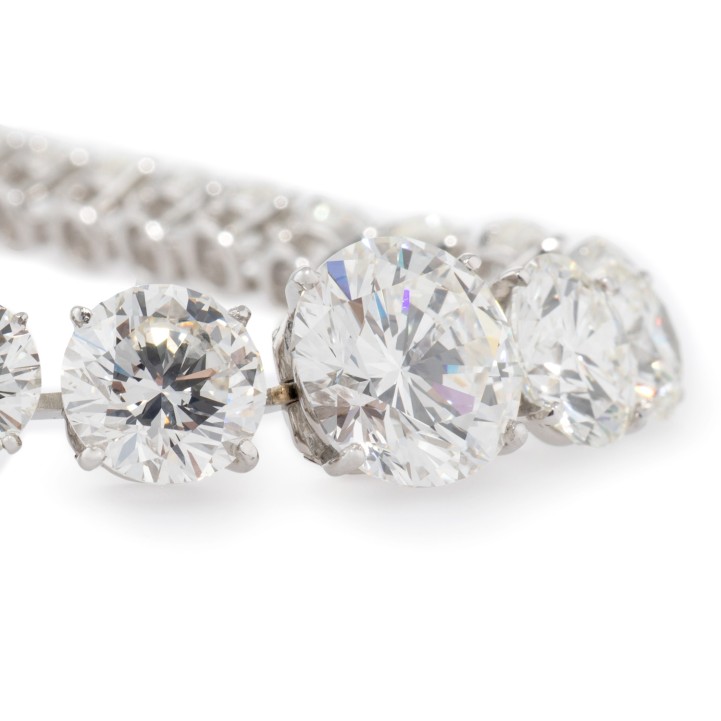 WEISS-LGW (H-J)/ VS-SI, Diamanten der Größe D: 4 - 11,8 mm, Platin, 51,2 g, L: 37,5 cm, 21. Jh., neuwertig.