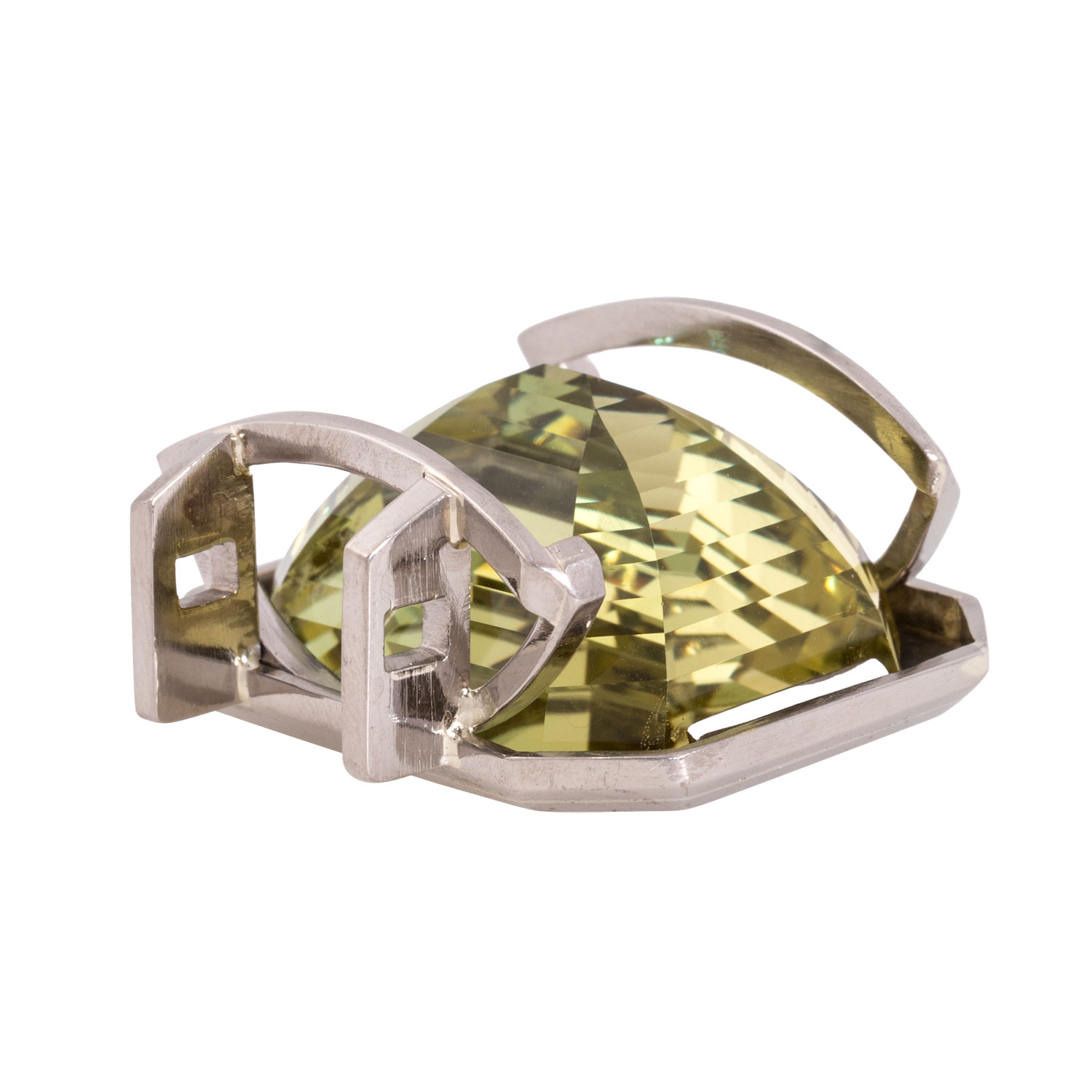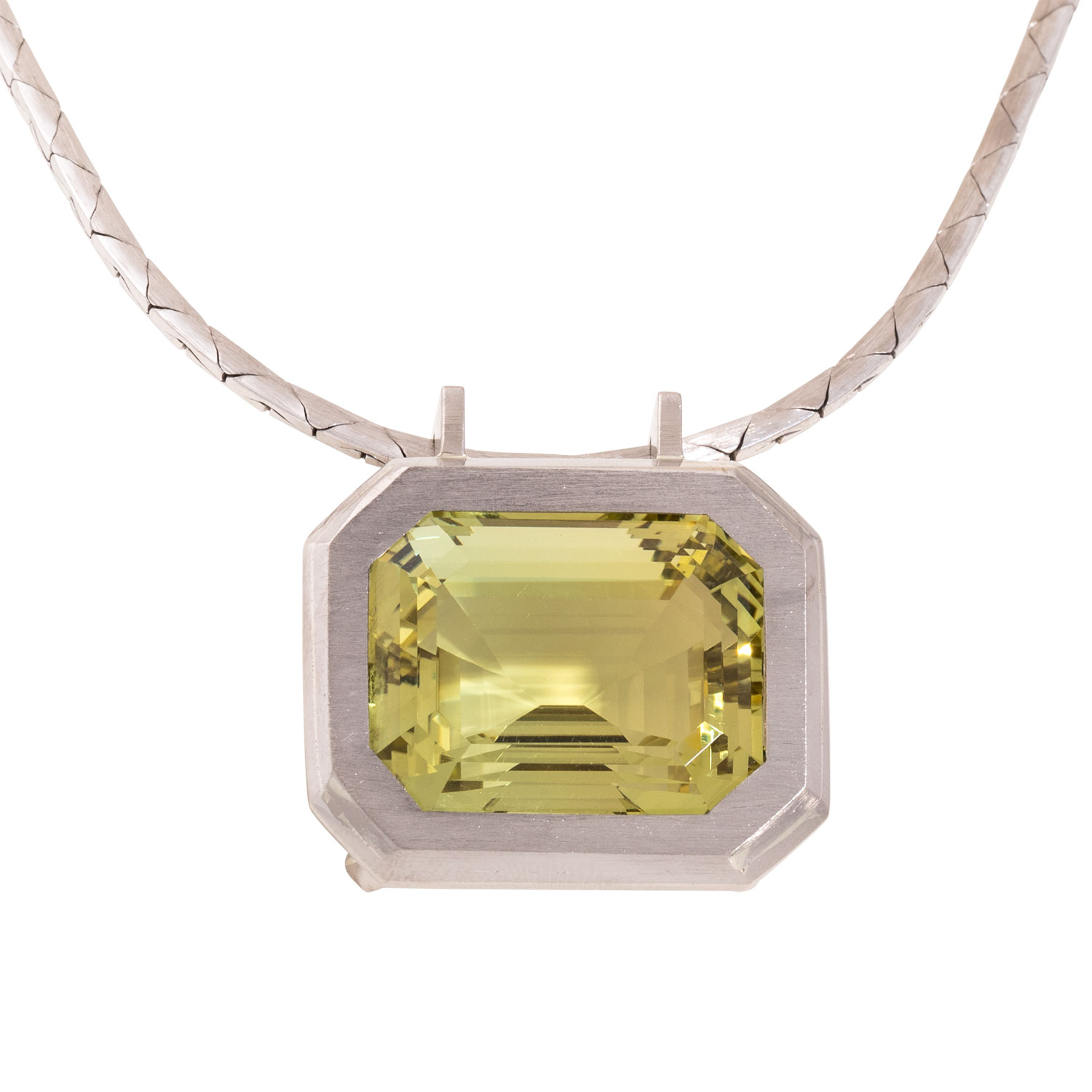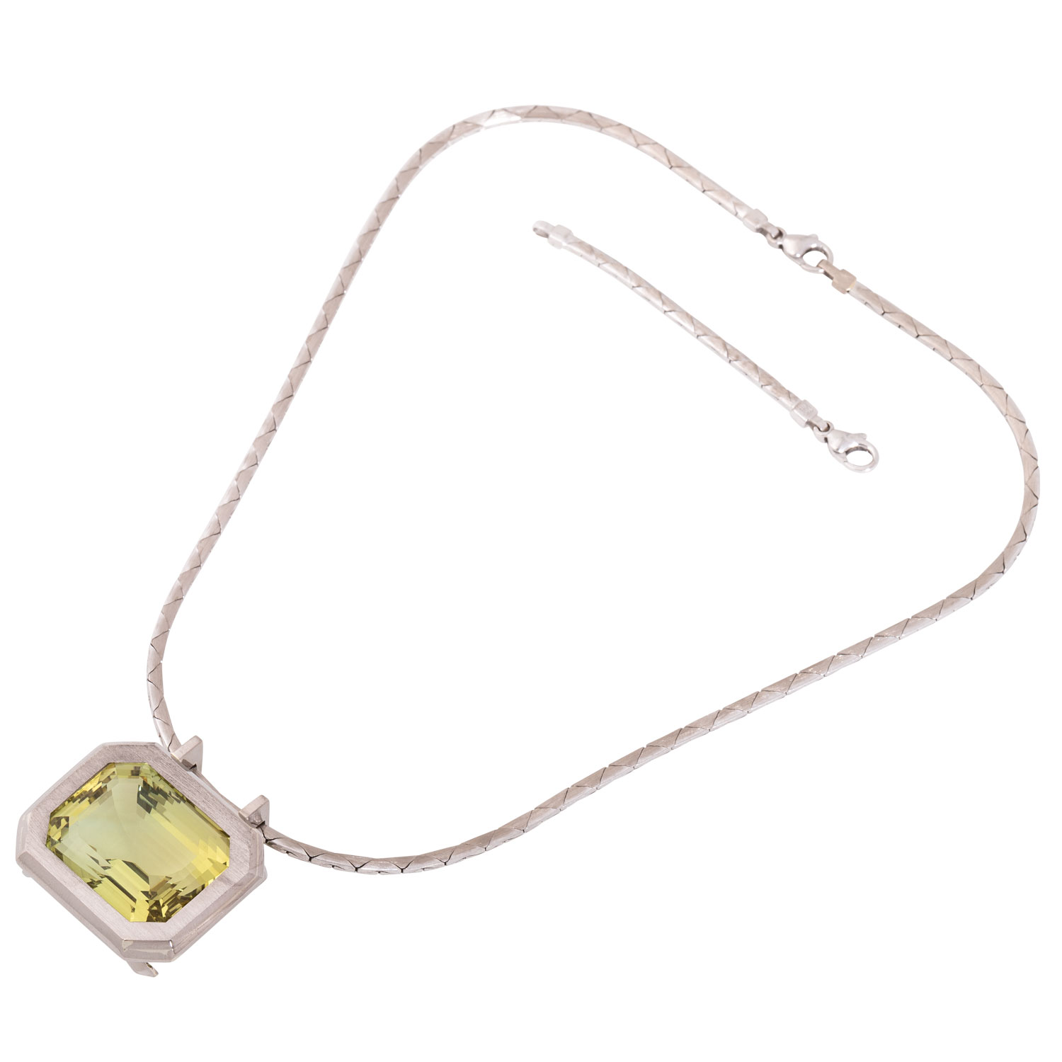von ca. 60 ct, grün-gelbe Farbe, 18K WG, 67 gr, Kettenlänge ca. 42+7 cm, 20./21. Jh., leichte Tragespuren, Herstellermarke Andreas Silbermann Stuttgart, inkl. Etui. (18)