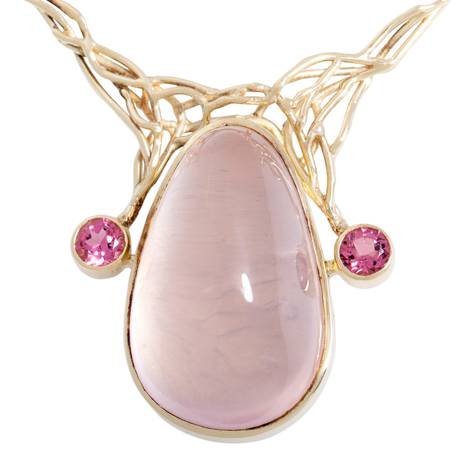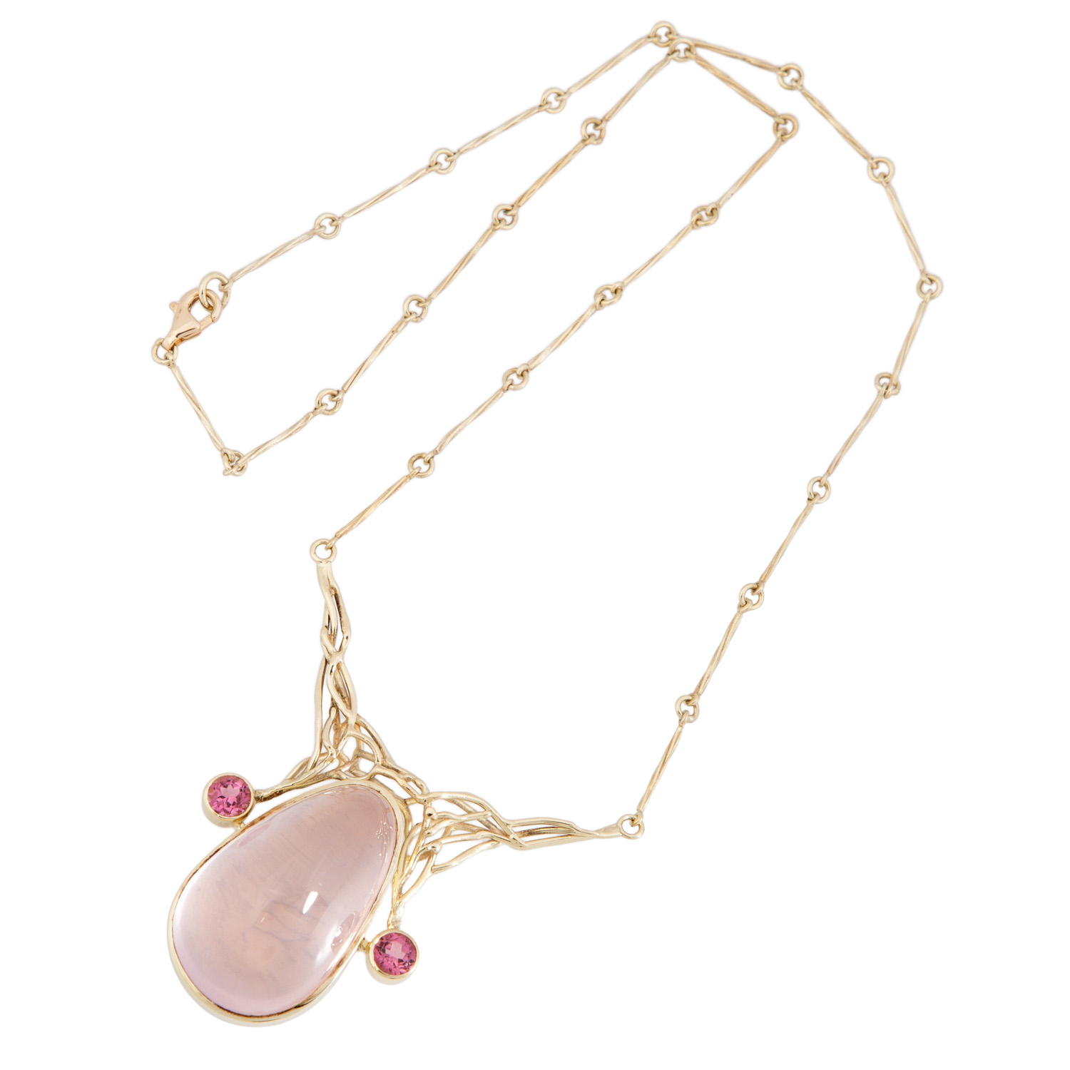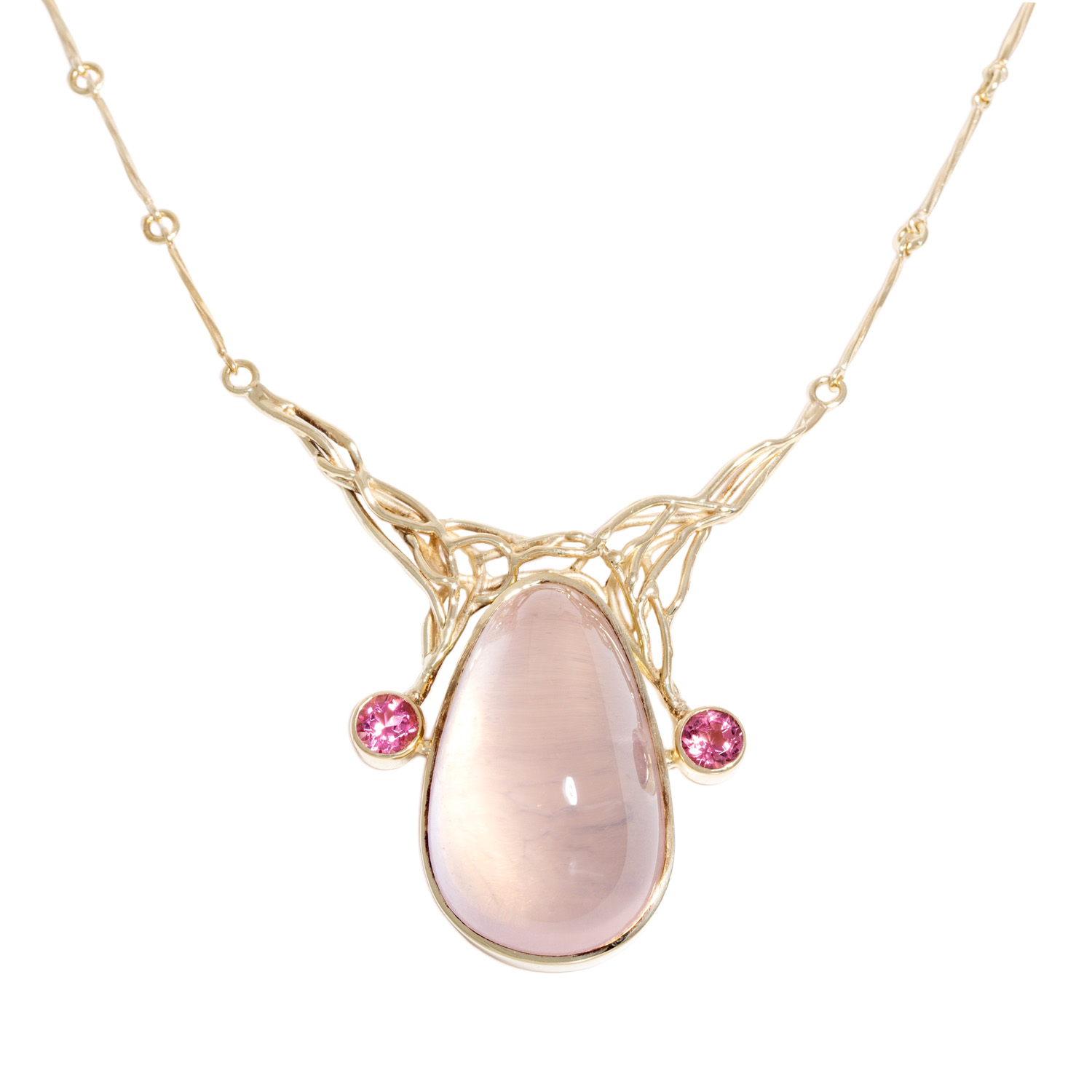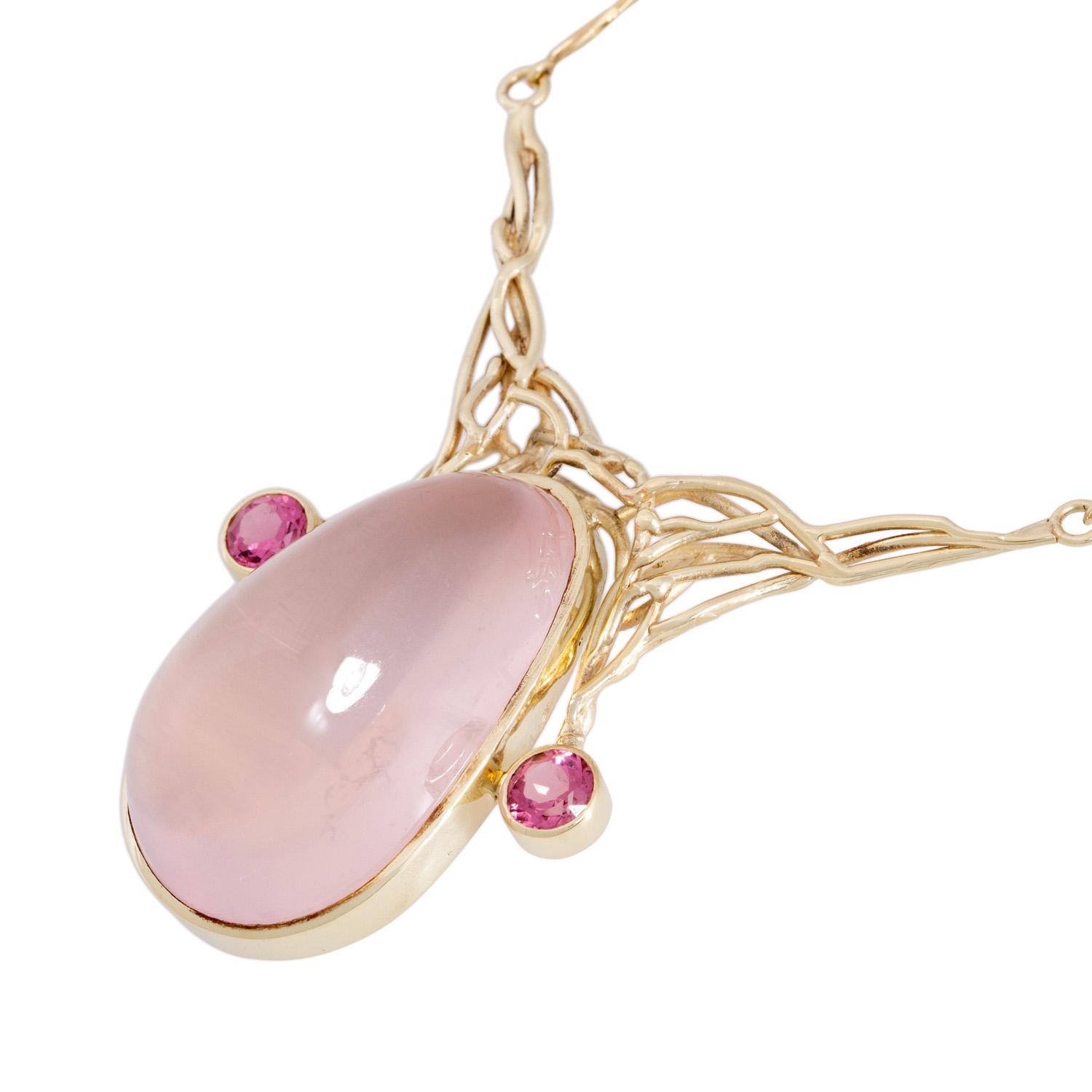 Collier mit Rosenquarz flankiert von 2 rosa Turmalinen,