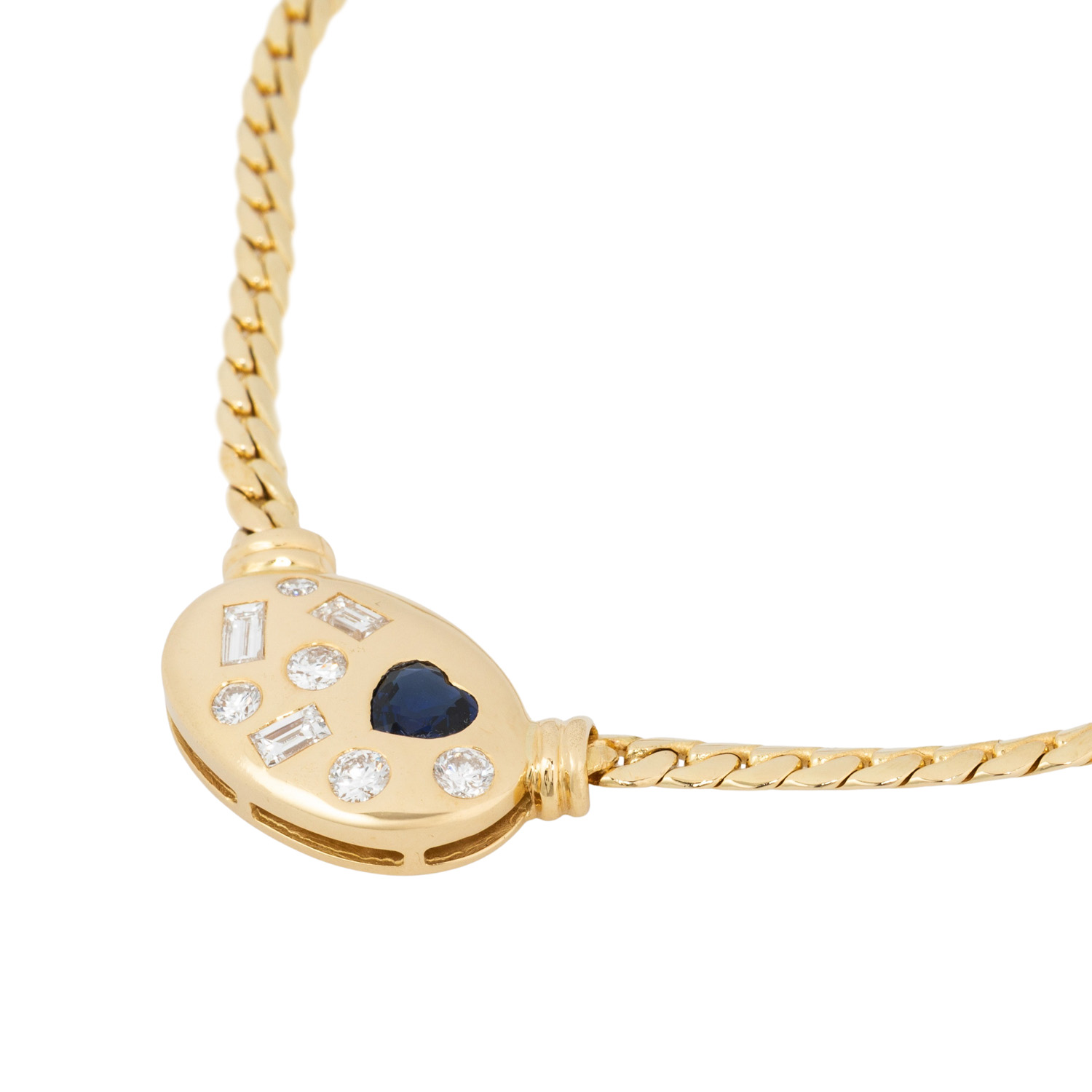 Collier mit Saphir 0,50 ct (grav.) und 8 Diamanten zus. 0,69 ct (grav.),