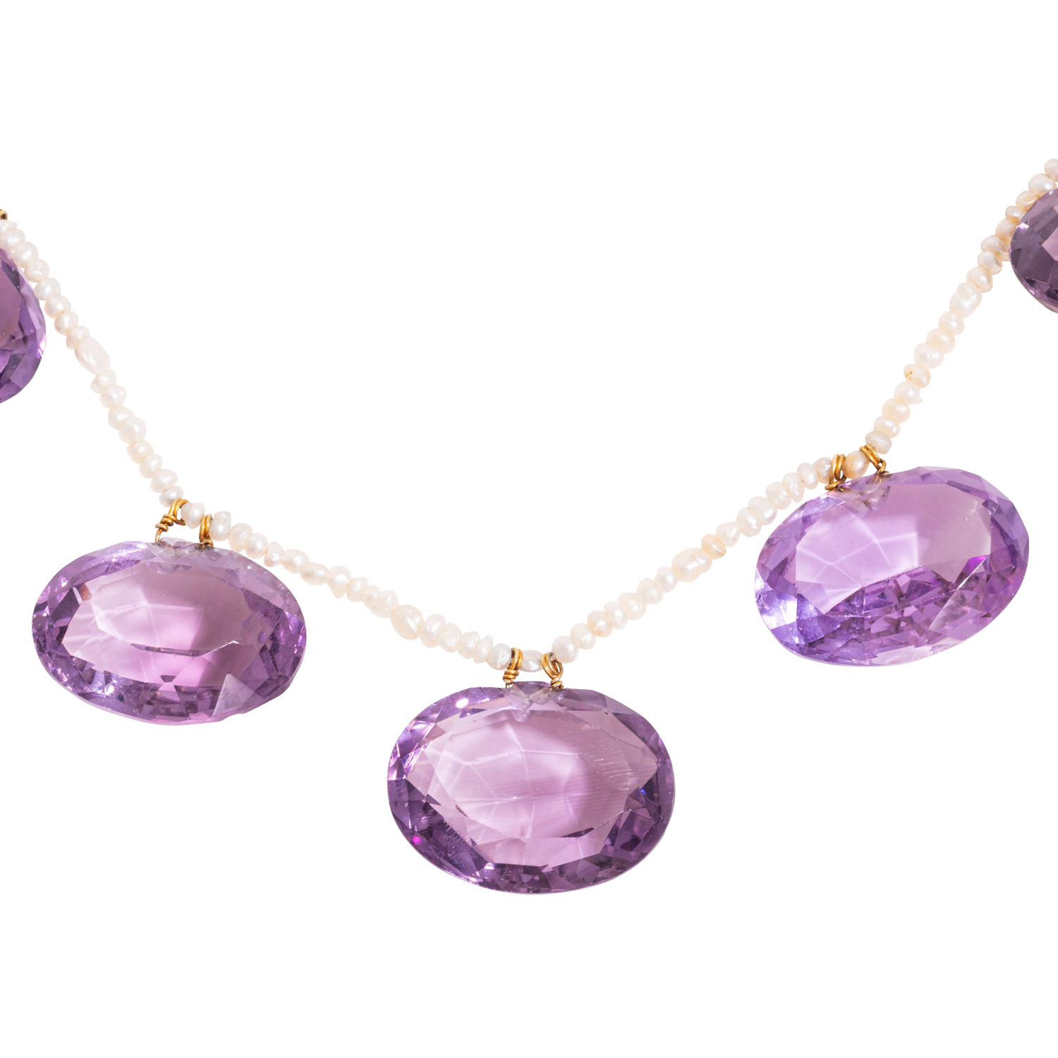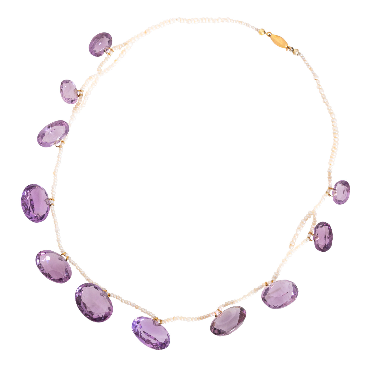 Collier mit Süßwasserperlen und 11 Amethysten,