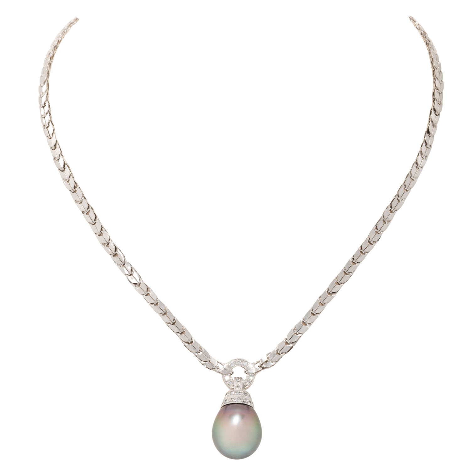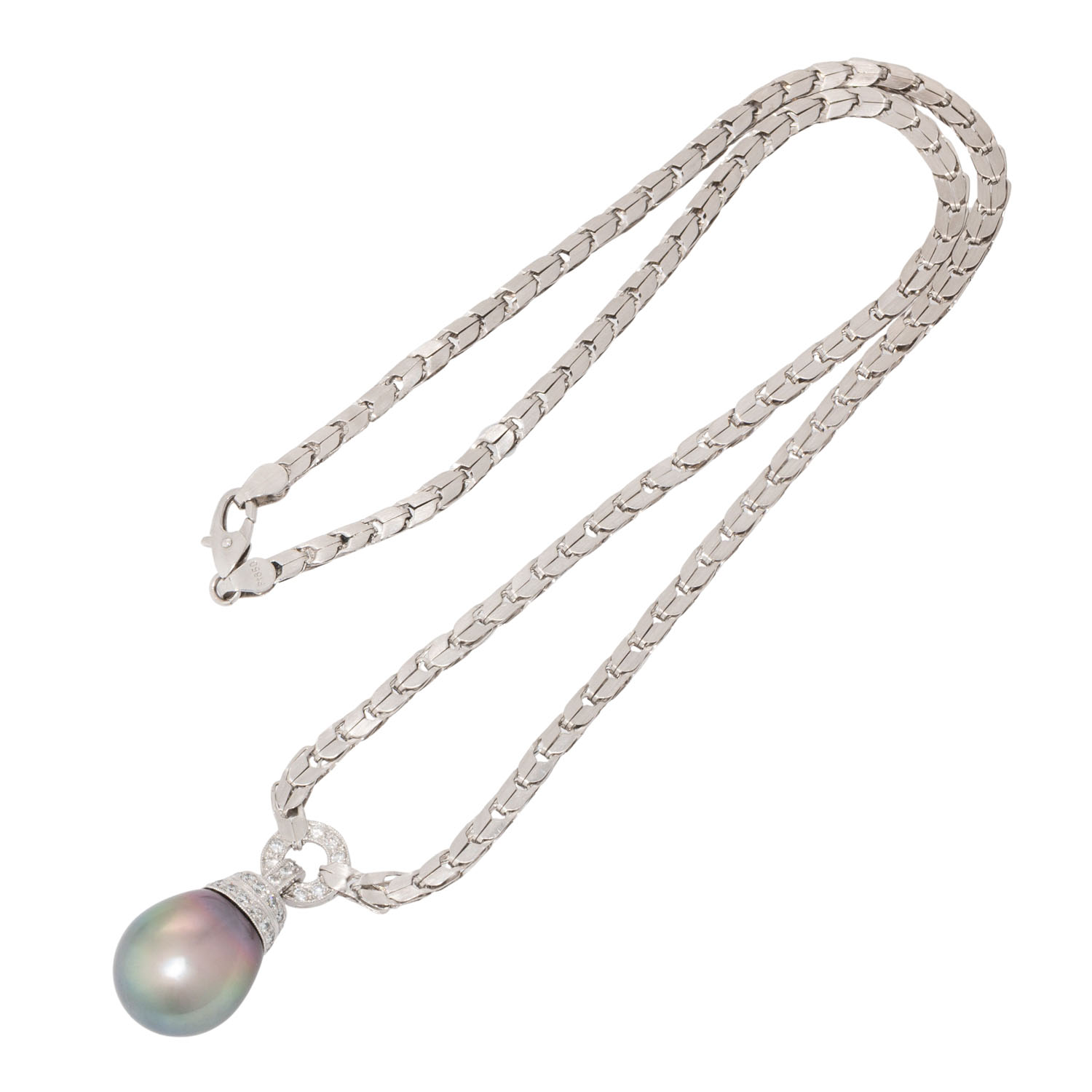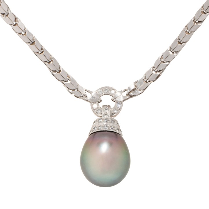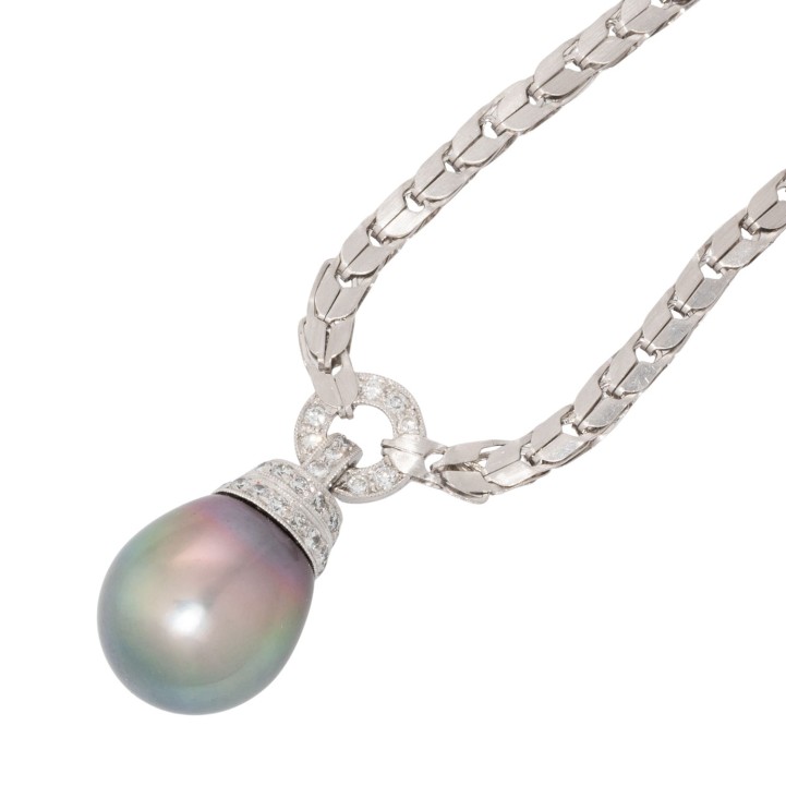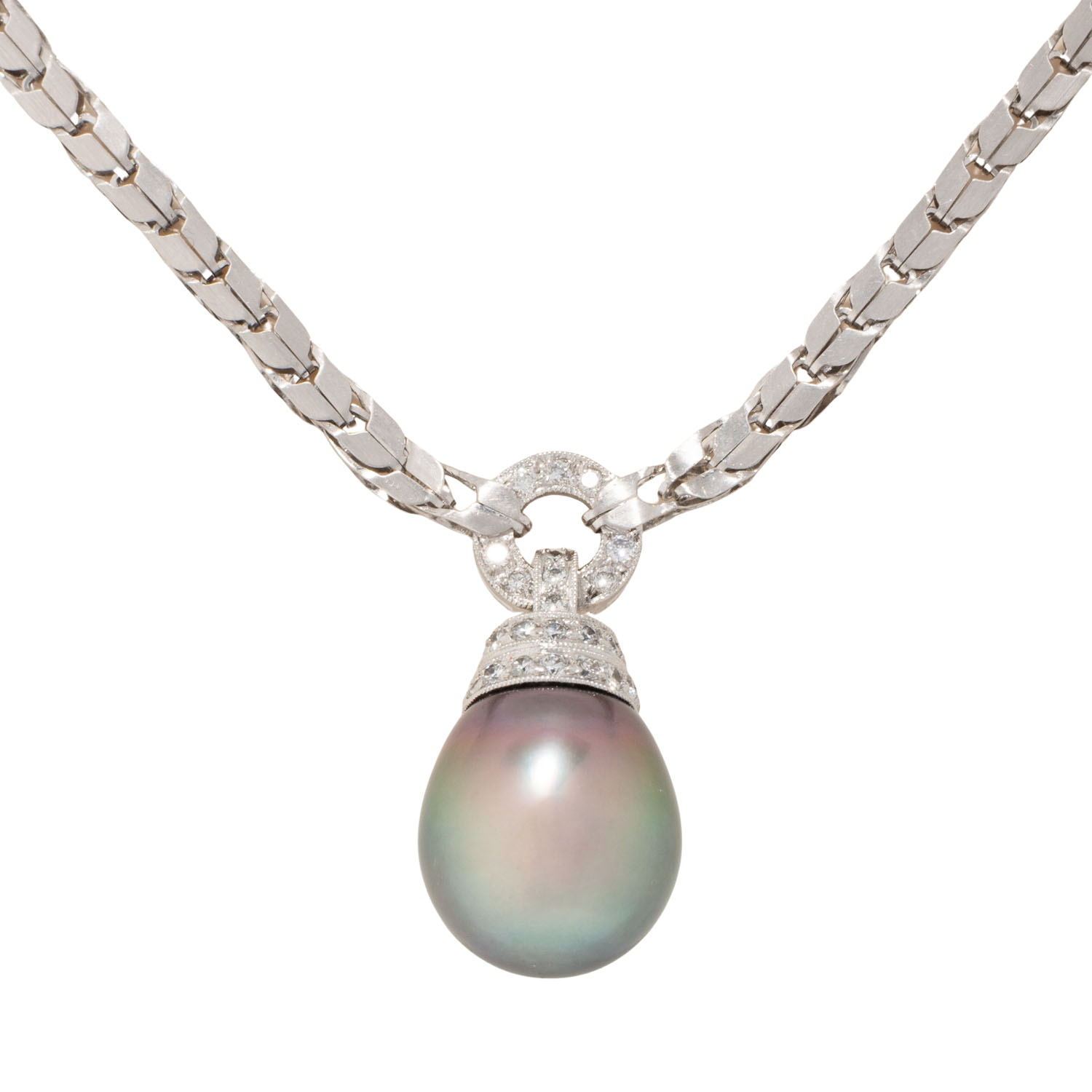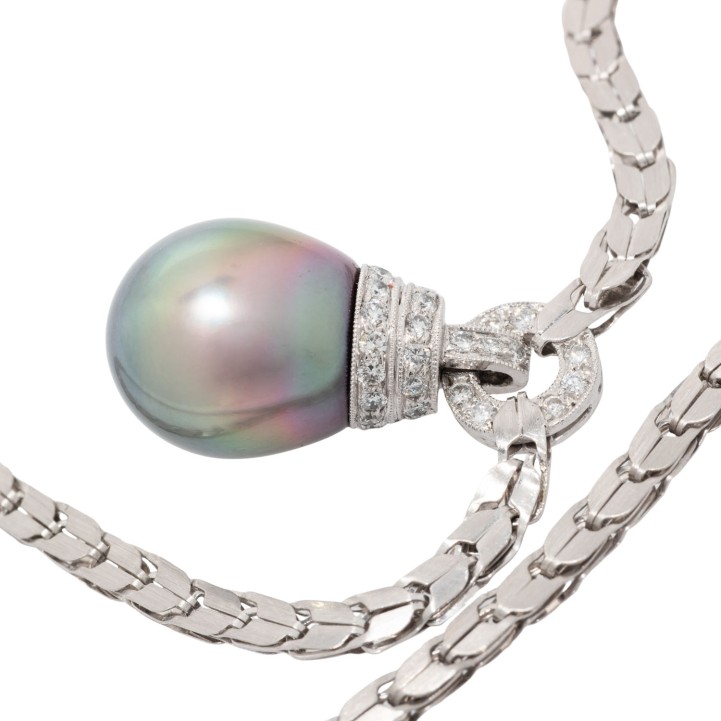 Collier mit Tansanit und Tahitiperle im Mittelteil,