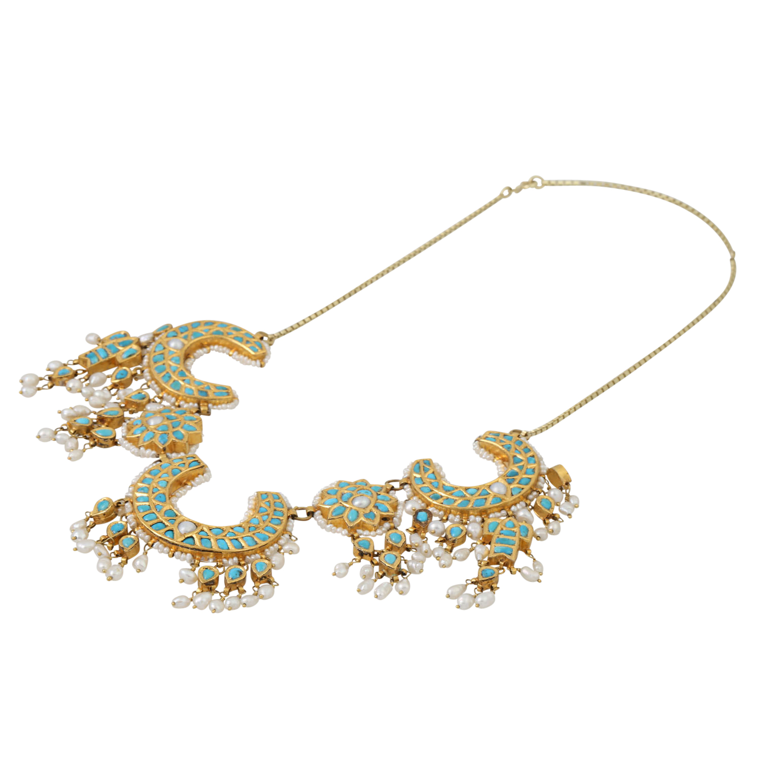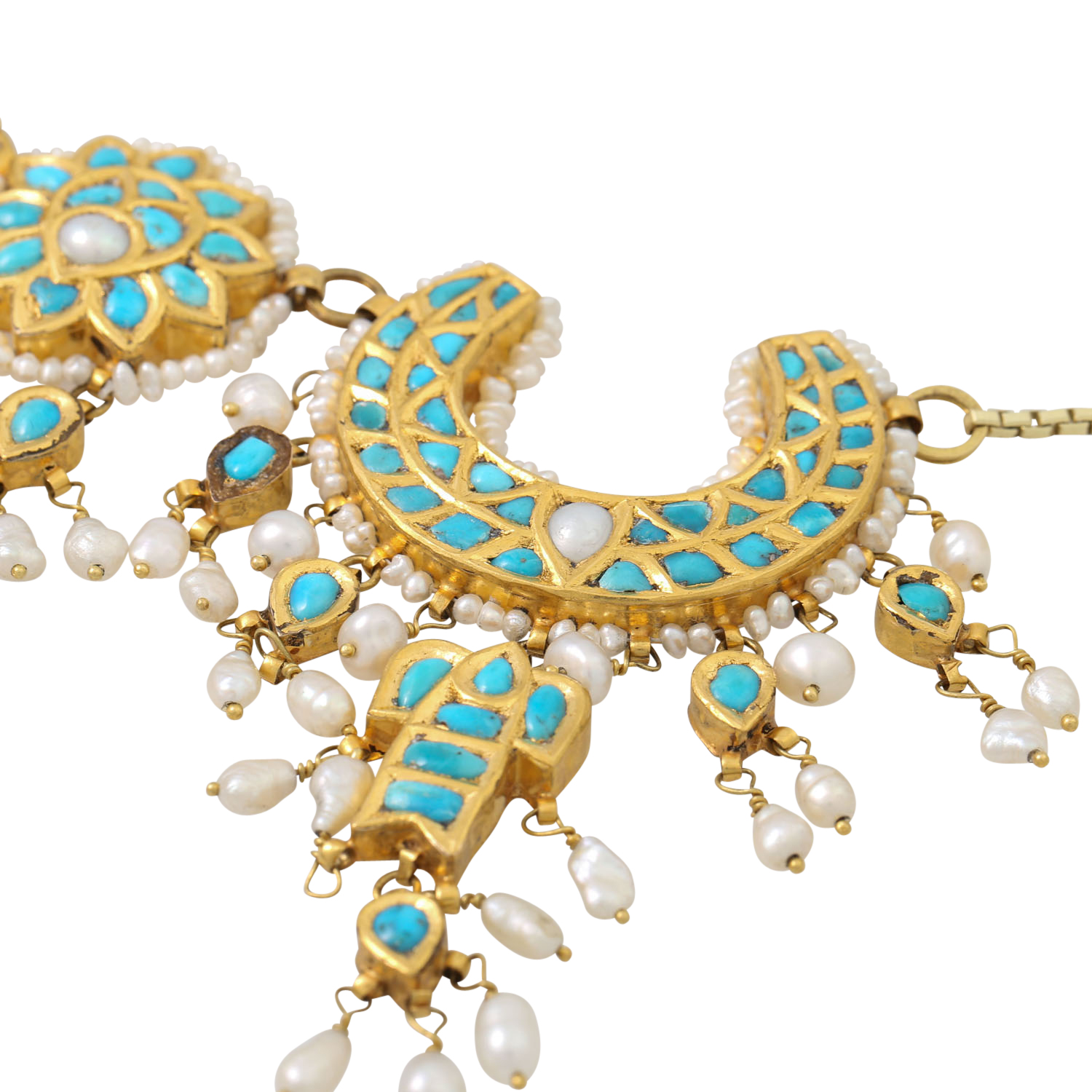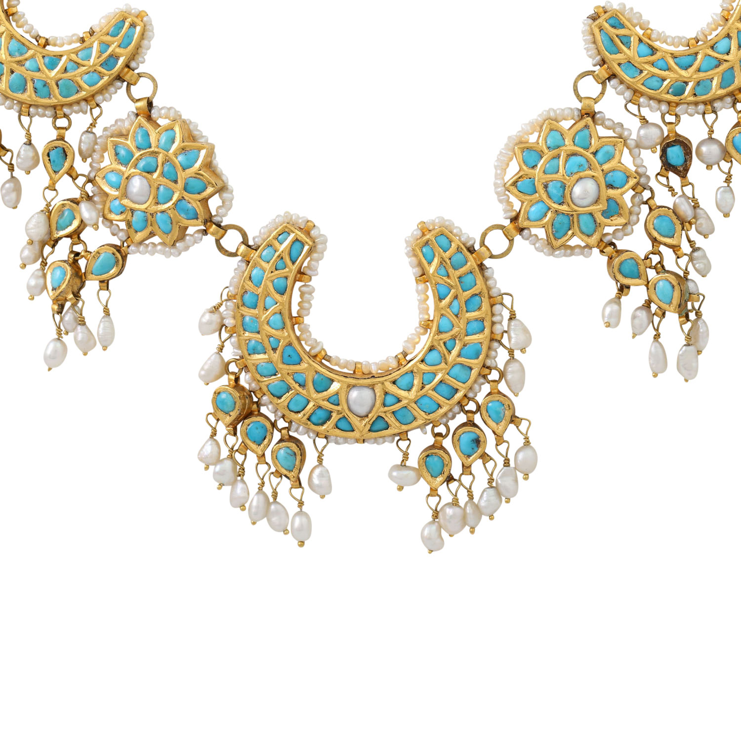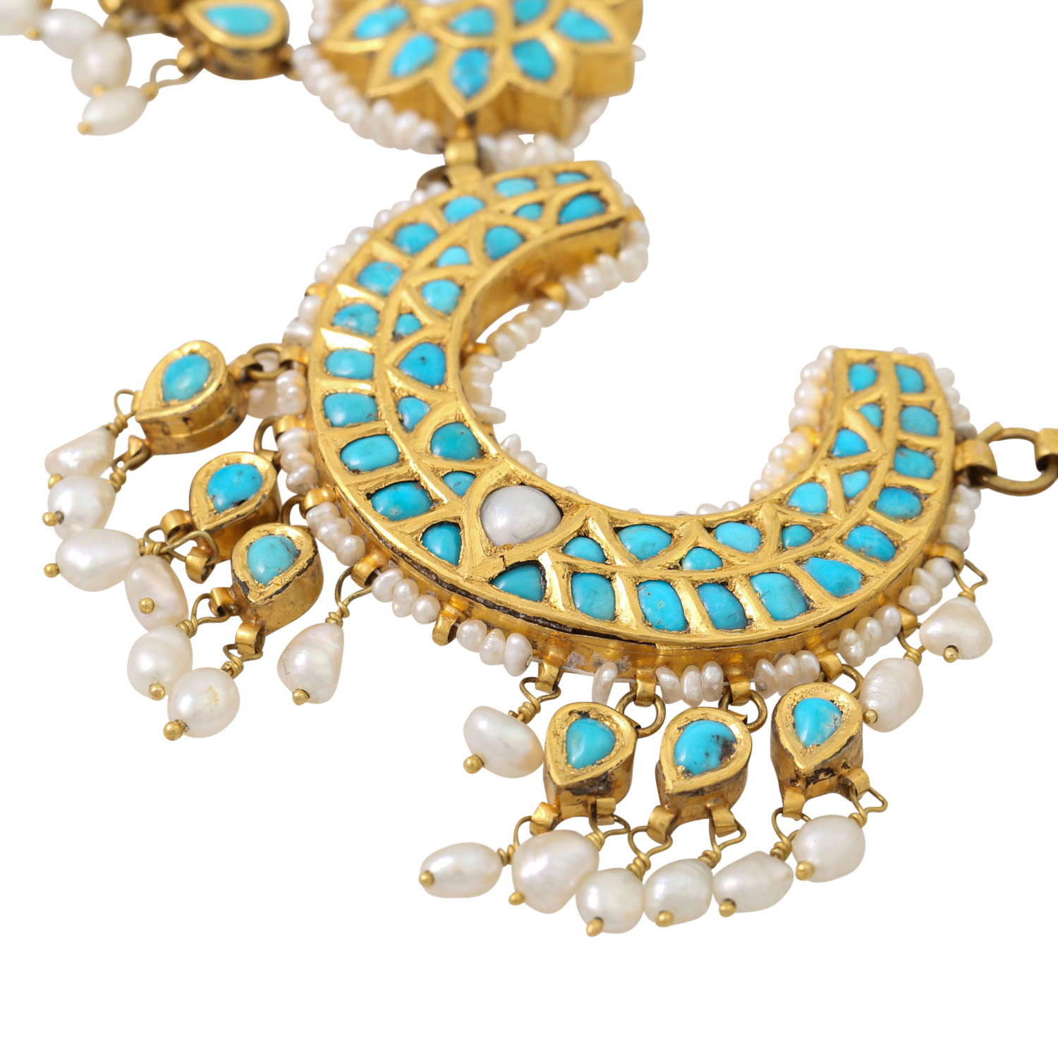 Collier mit Türkisen und Süßwasserzuchtperlen,