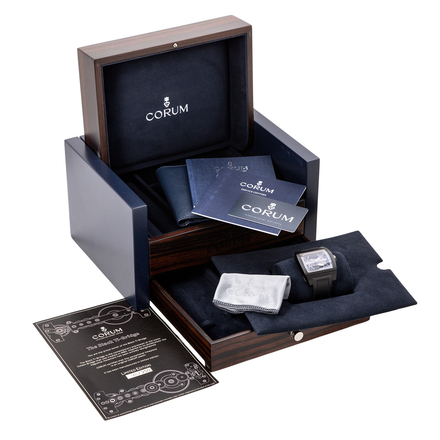 CORUM extravagante und limitierte 'Black Ti-Bidge' Herrenuhr, Ref. 05.0040. Full Set.