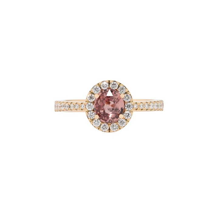 Damenring, bes. mit 1 hochfeinen Padparadscha Saphir 1,01 ct.