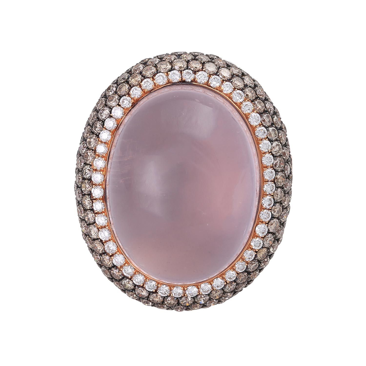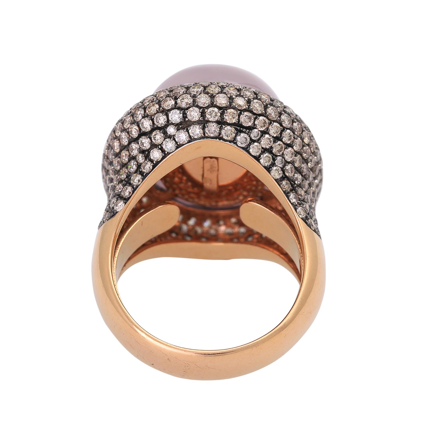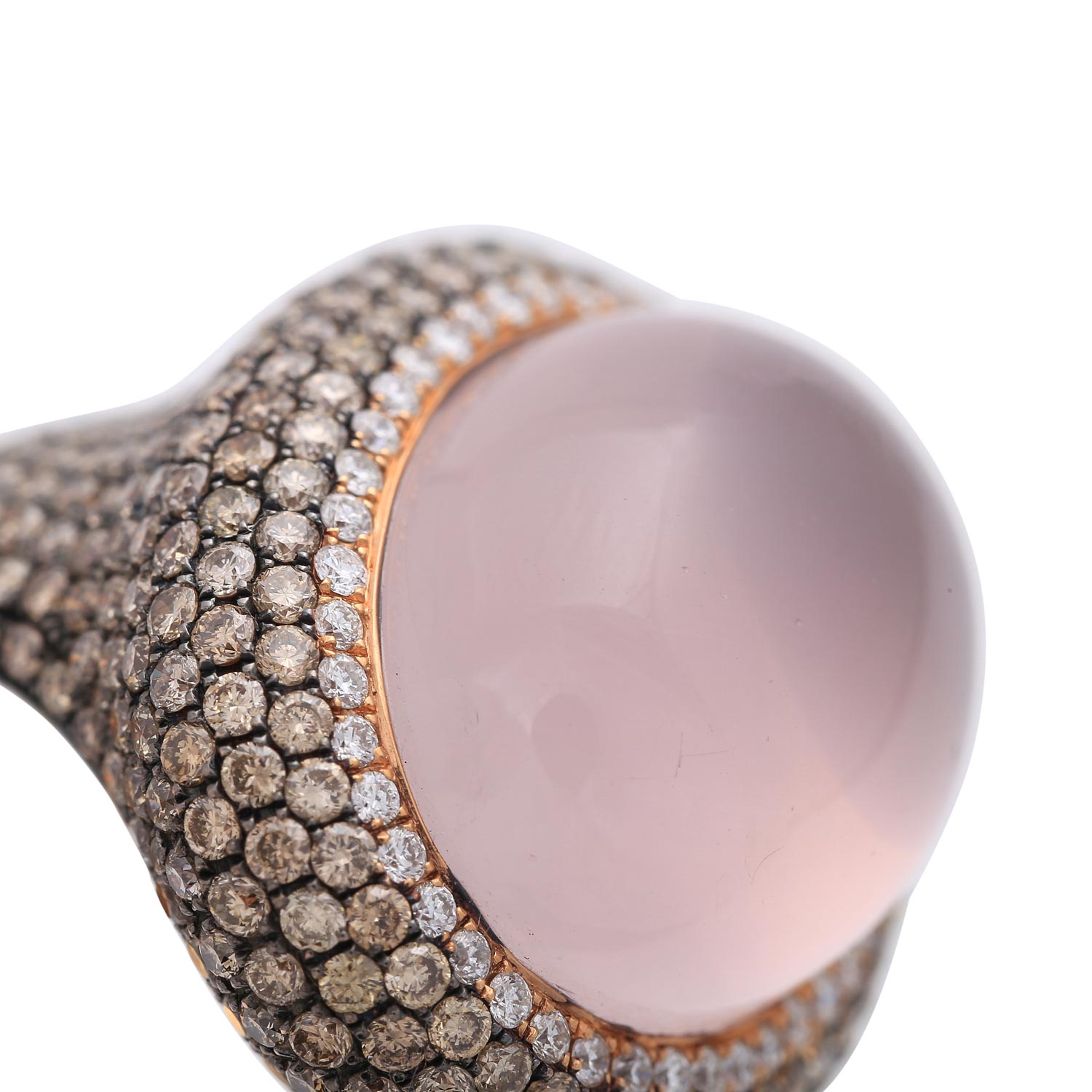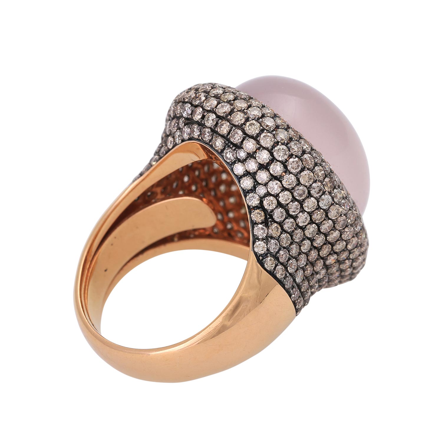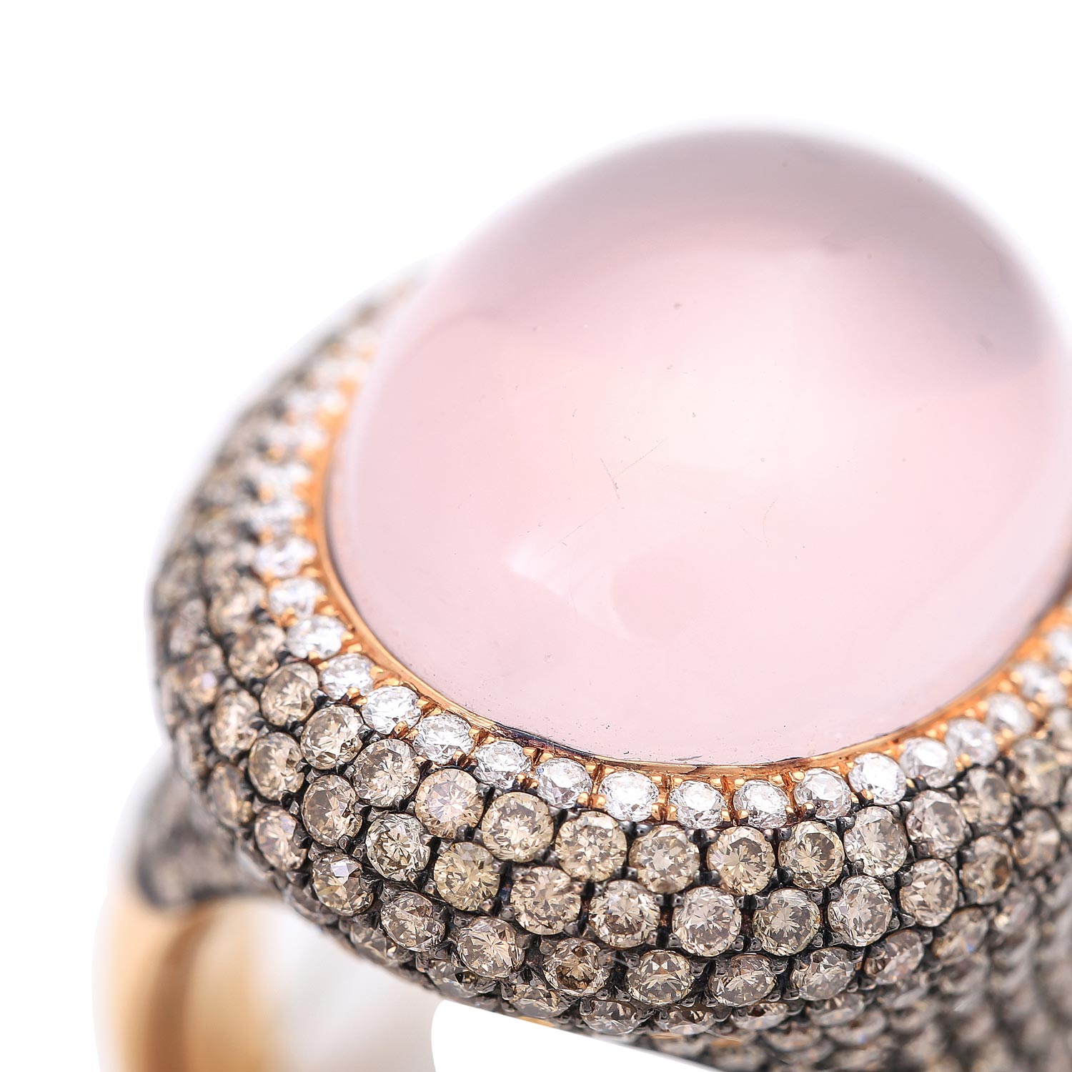 Damenring. Bes. mit 1 Rosenquarz u. braunen u. weißen Diam.-Brill. zus. 3,81 cts. W/VSI.