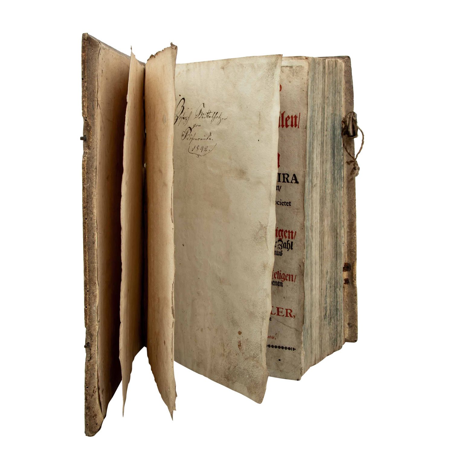 1717, Verlag: Augsburg: Bencard, III Band, Heiligebiographie des Jesuiten Pedro de Ribadeneira, HxBxT: 9/32/24 cm. Altersspuren, besch.