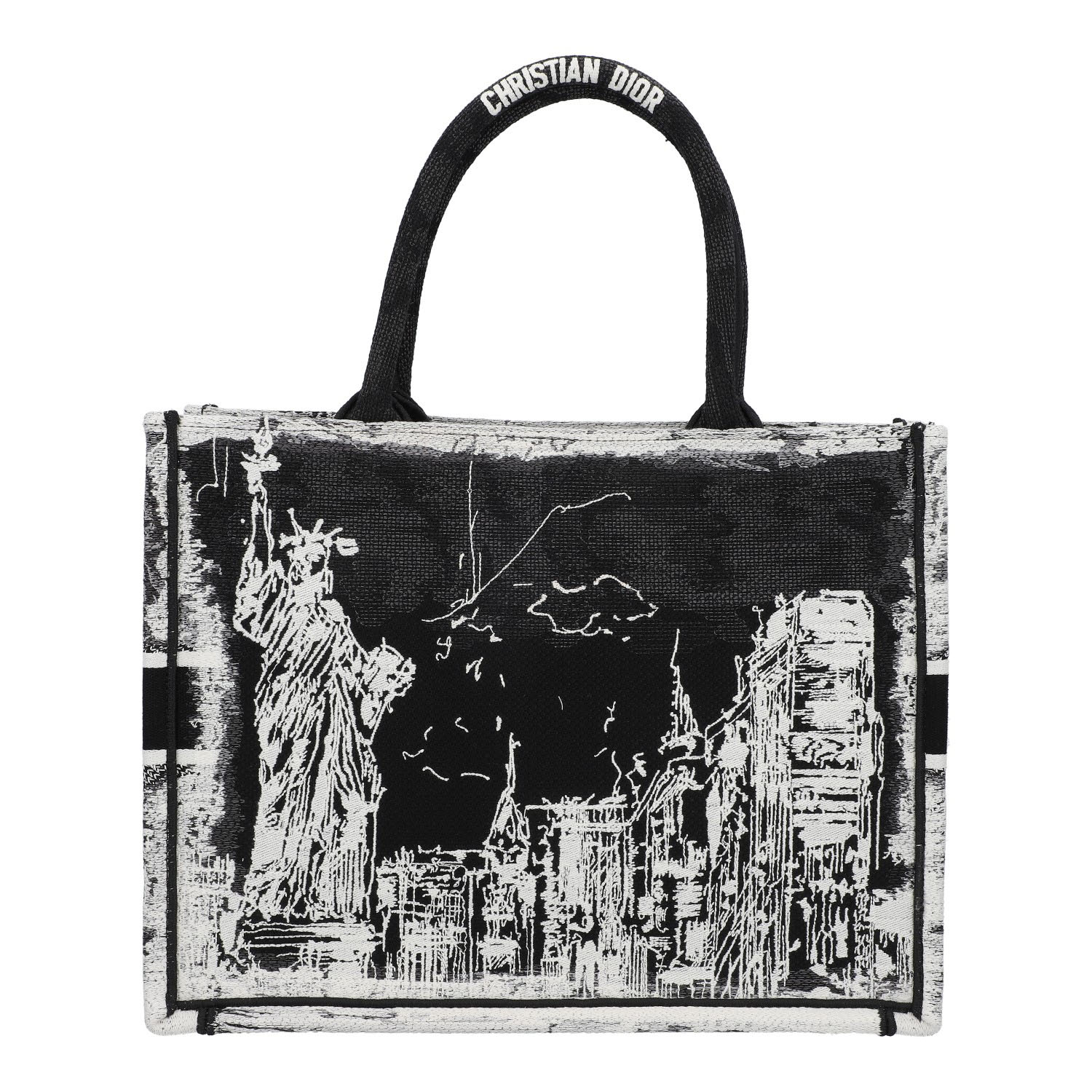 Koll. 2024. Limitiertes Modell in Schwarz/Weiß mit New Yorker Skyline sowie der Freiheitsstatue als Motiv. Doppelhenkel mit Logo Stickerei. Sehr guter Erhalt. 36x16x27,5cm.