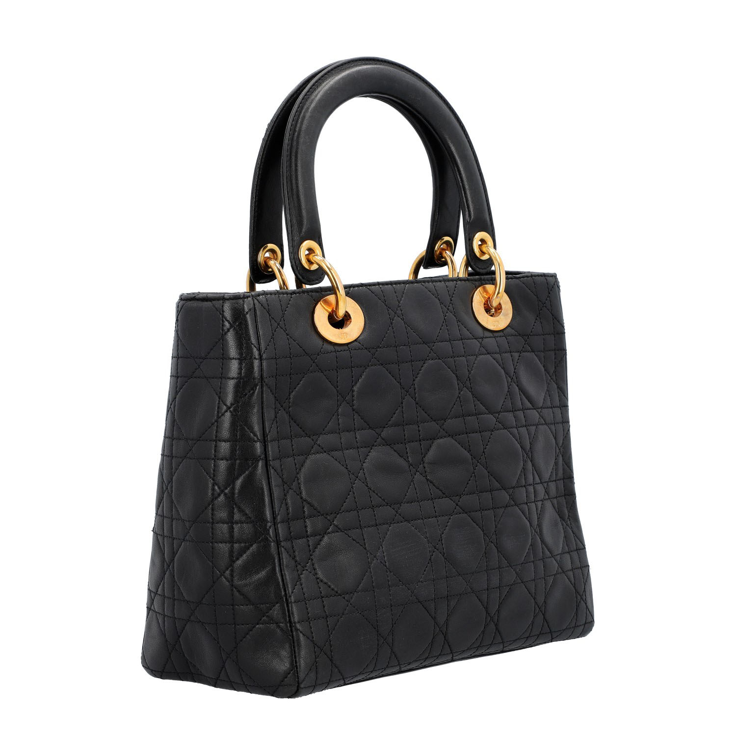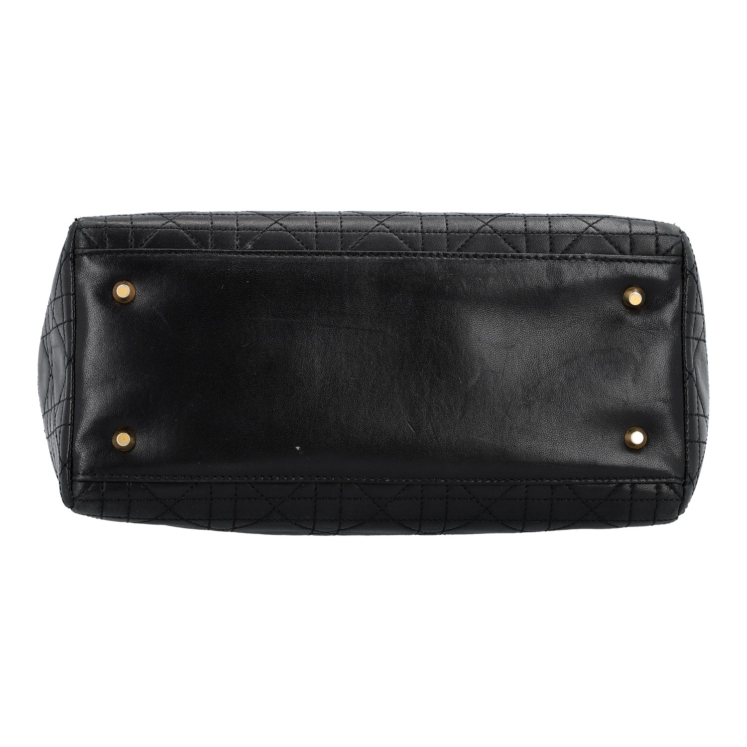 Koll. 1997. Akt. NP.: 5.900,-€. Lammleder in Schwarz mit klassischer Cannage-Steppung und goldfarbener Hardware. Klassisches Modell. Starke Altersspuren vorhanden, starker Abrieb an den Kanten, Verfärbungen und Gebrauchsspuren. 25x11x20cm.