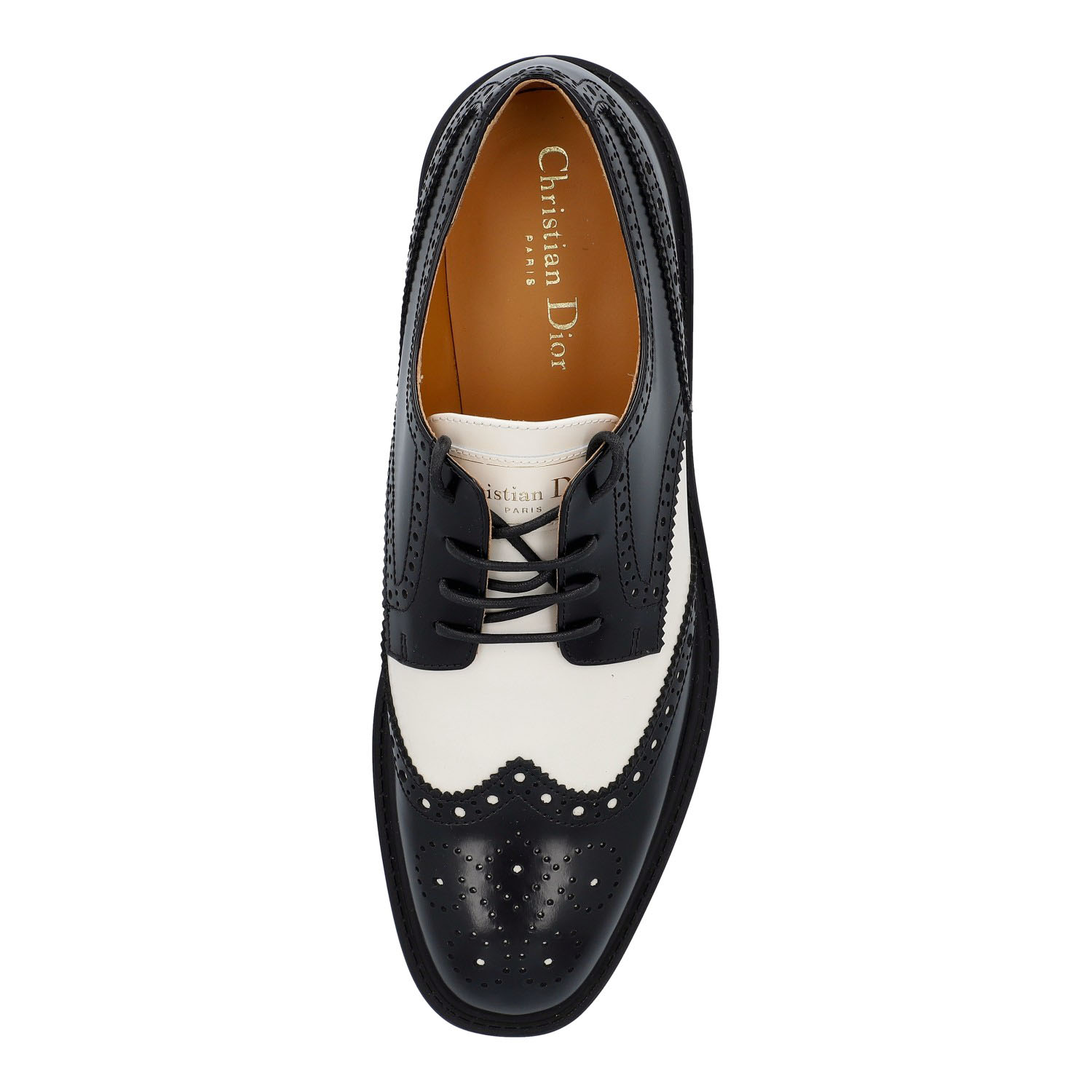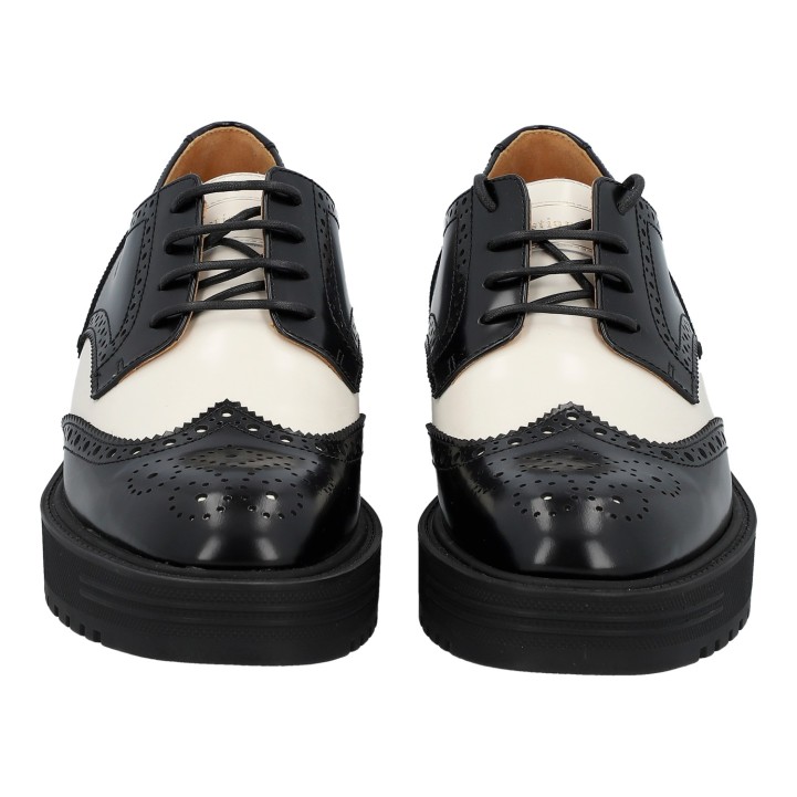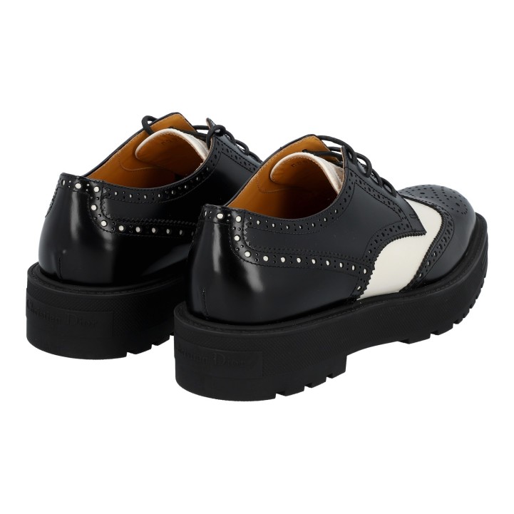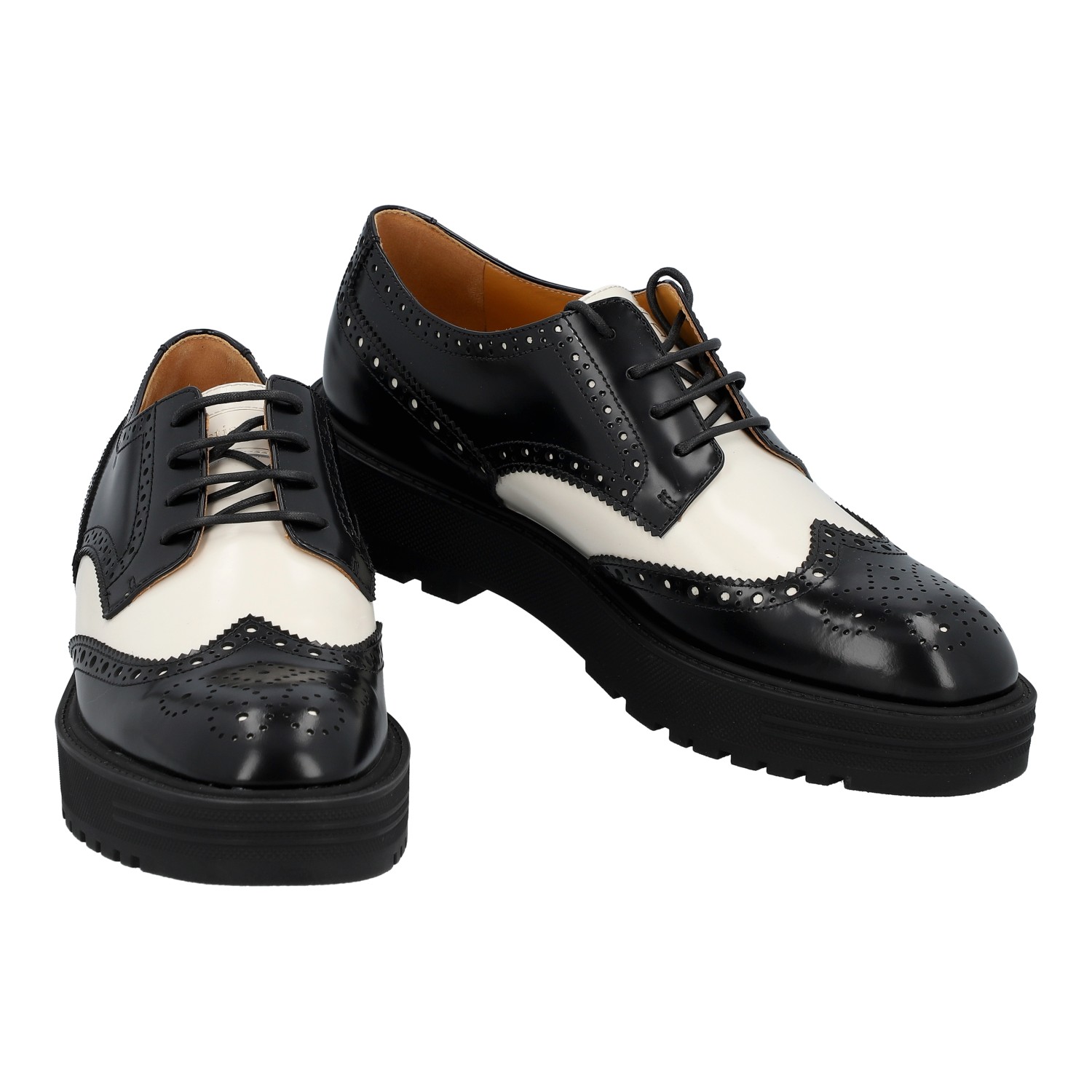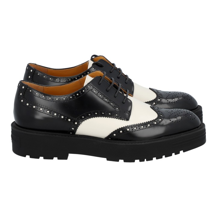 Klassischer Oxford-Schuh aus Kalbsleder in Schwarz und Weiß mit dekorativen Budapester-Details. Box und Staubbeutel anbei. Neuwertiger Zustand.