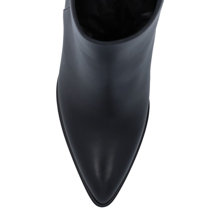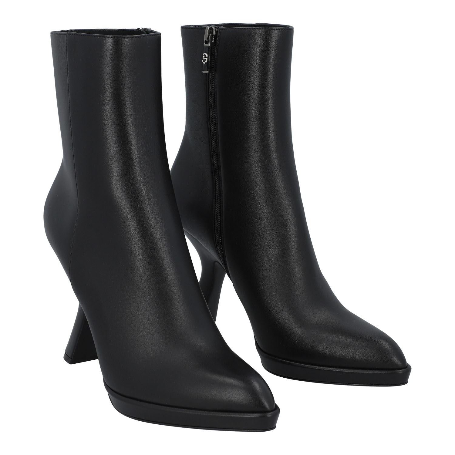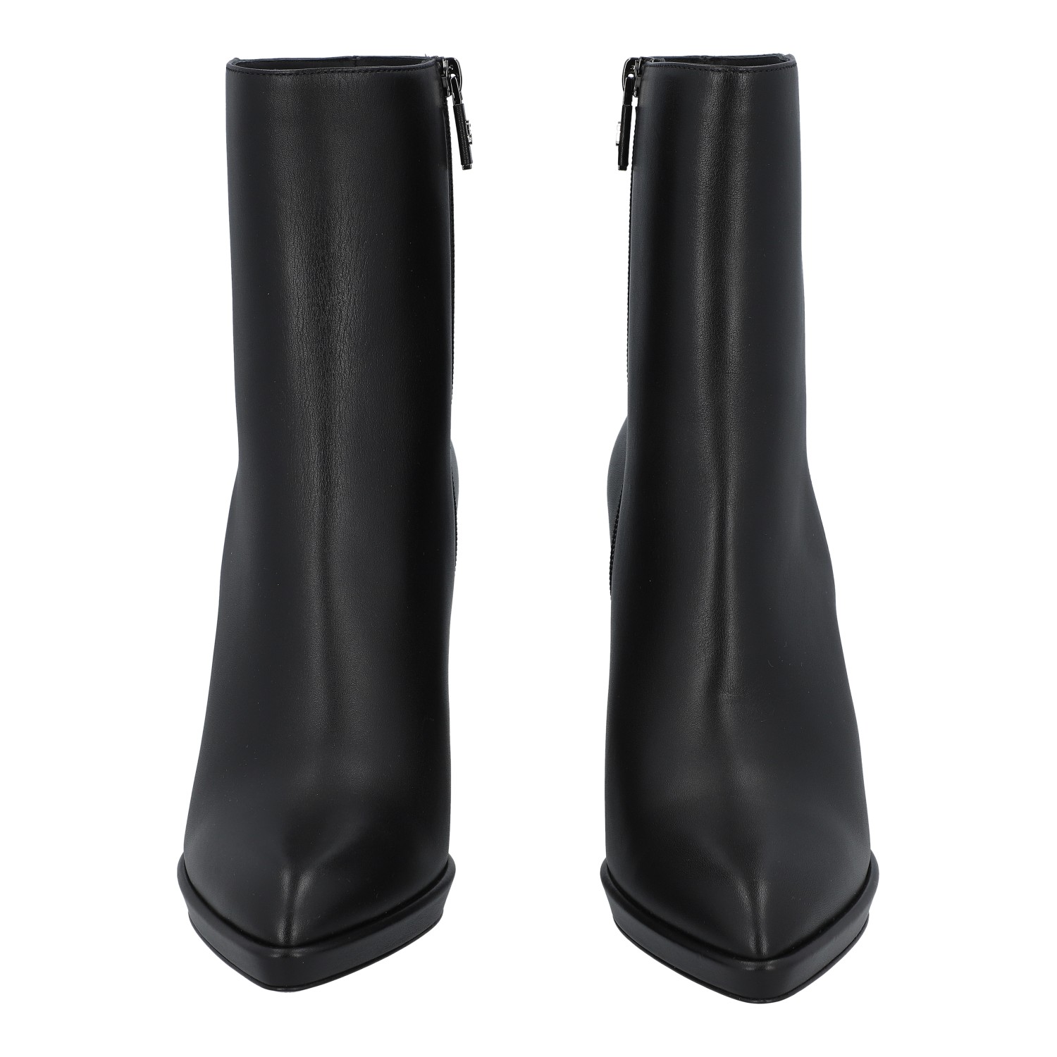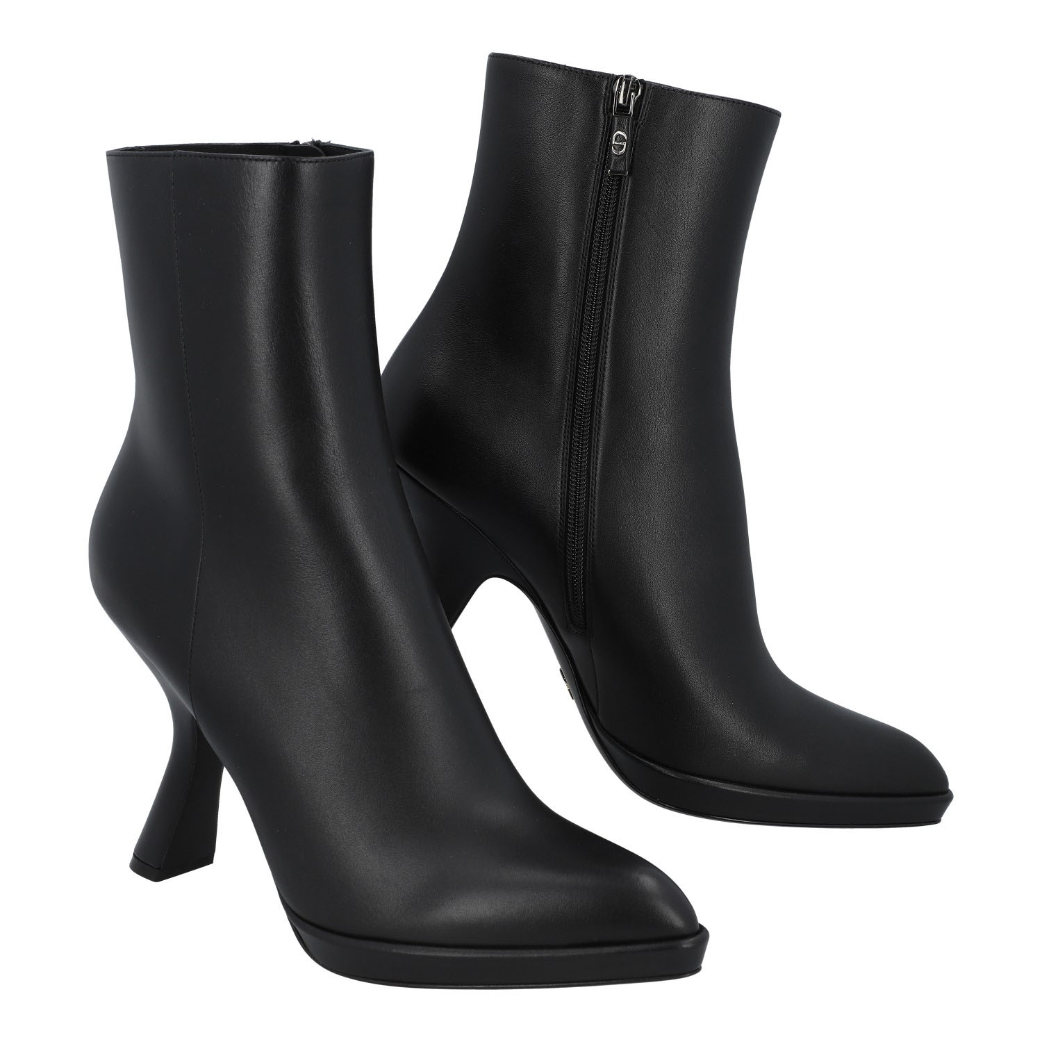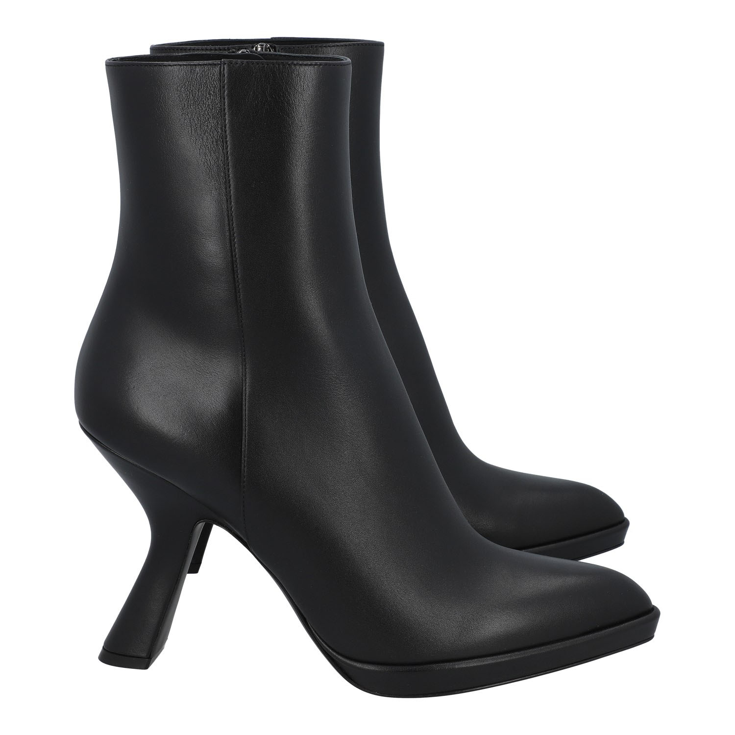 Akt. NP.: 1.490,-€. Kalbsleder in Schwarz mit seitlichem Reißverschluss und apartem Absatz (Höhe ca. 11,5cm). Leichte Plateausohle. Box und Staubbeutel anbei. Sehr guter Erhalt.