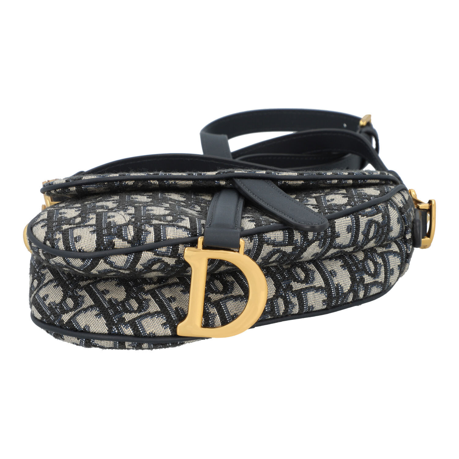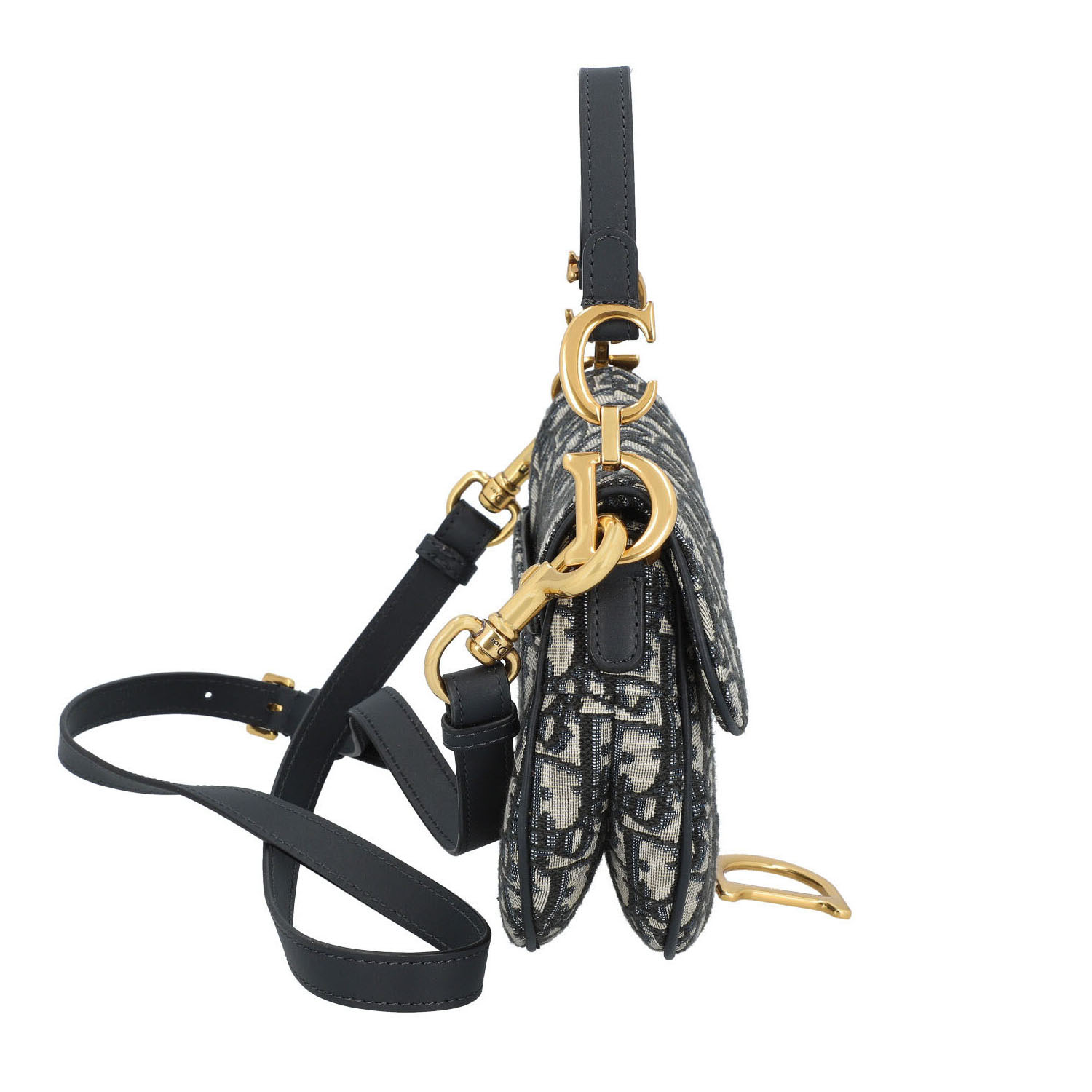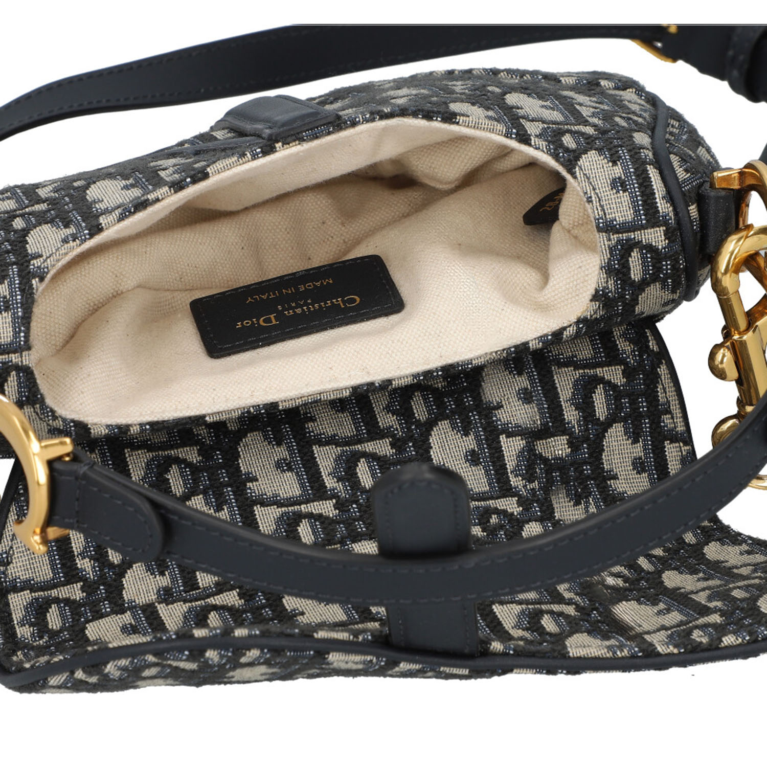 Oblique Jacquard mit goldfarbener Hardware, Steigbügelförmiger „D“-Magnetverschluss, „CD“-Schriftzug am Riemen, schmaler, verstell- und abnehmbarer Schulterriemen und Außenfach auf der Rückseite. Box, Staubbeutel und Kopie der Rechngung anbei. Gebrauchsspuren dezent vorhanden.
