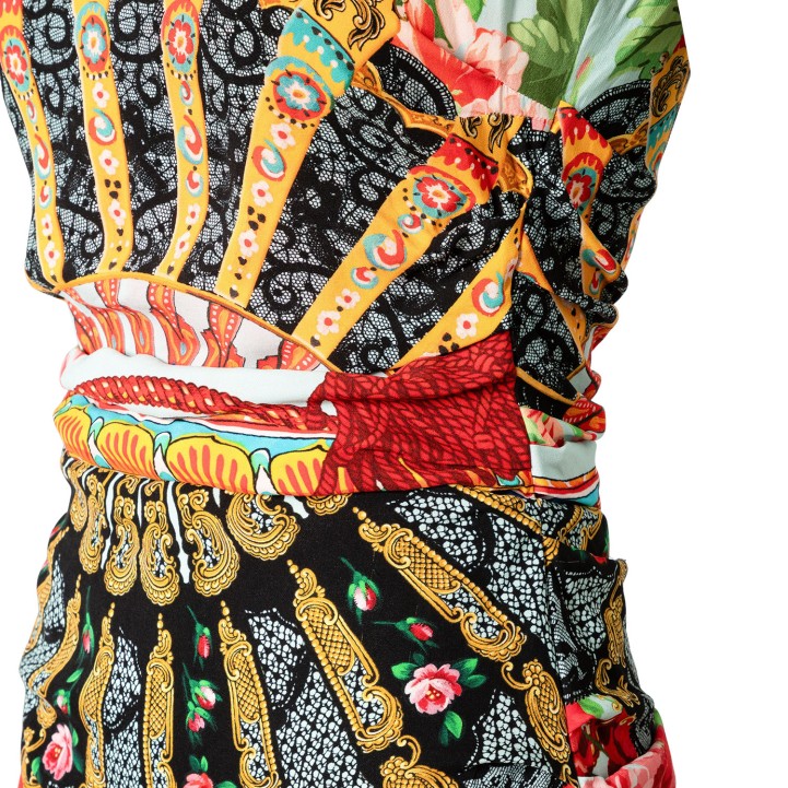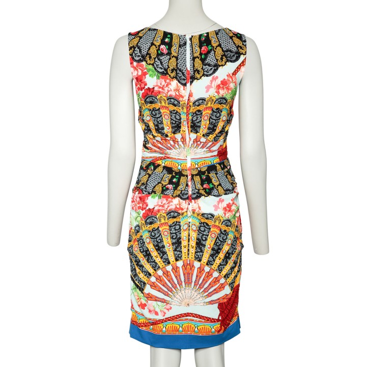 Leicht elastisches Kleid mit Musterung in Multicolor und dekorativen Raffungen. Guter Erhalt.