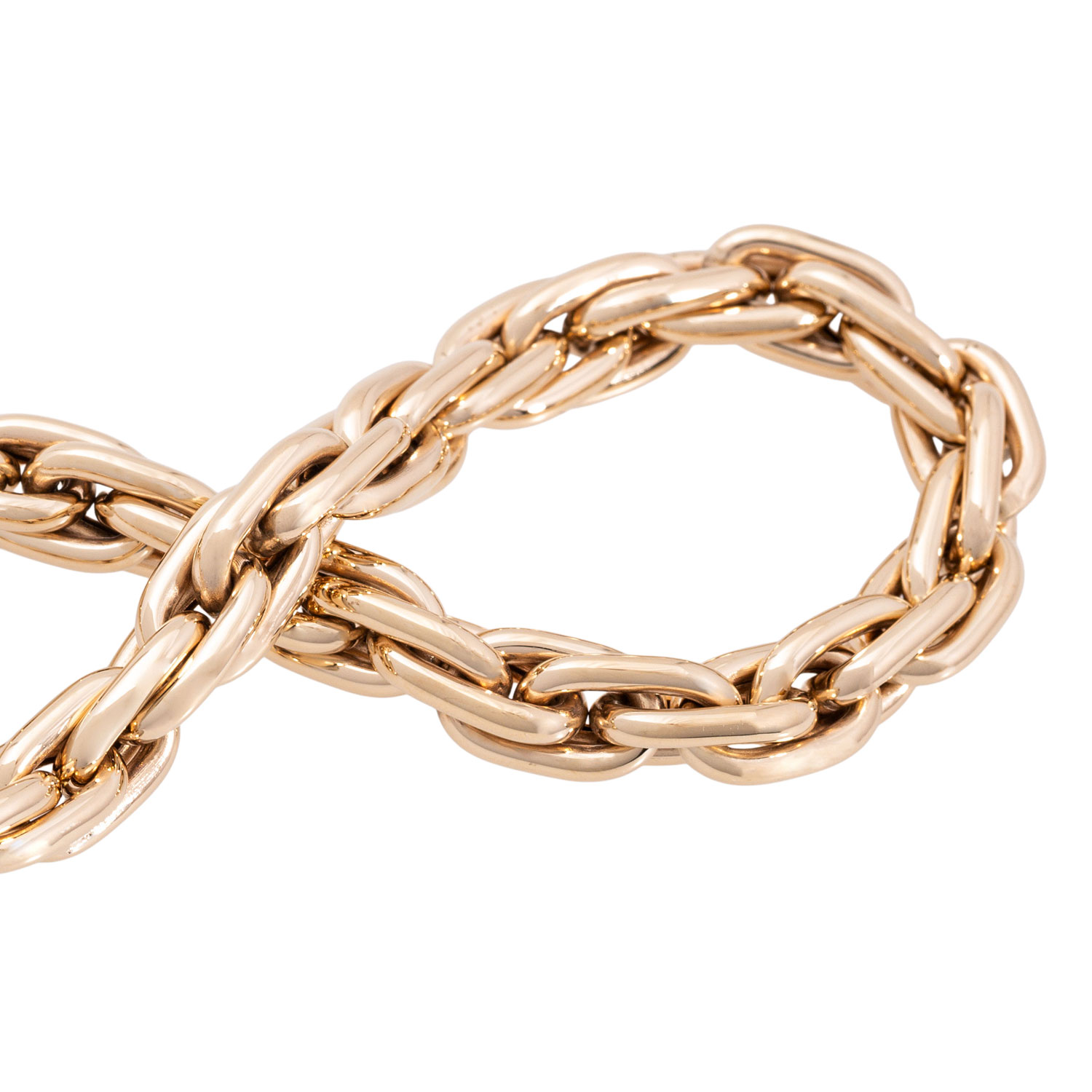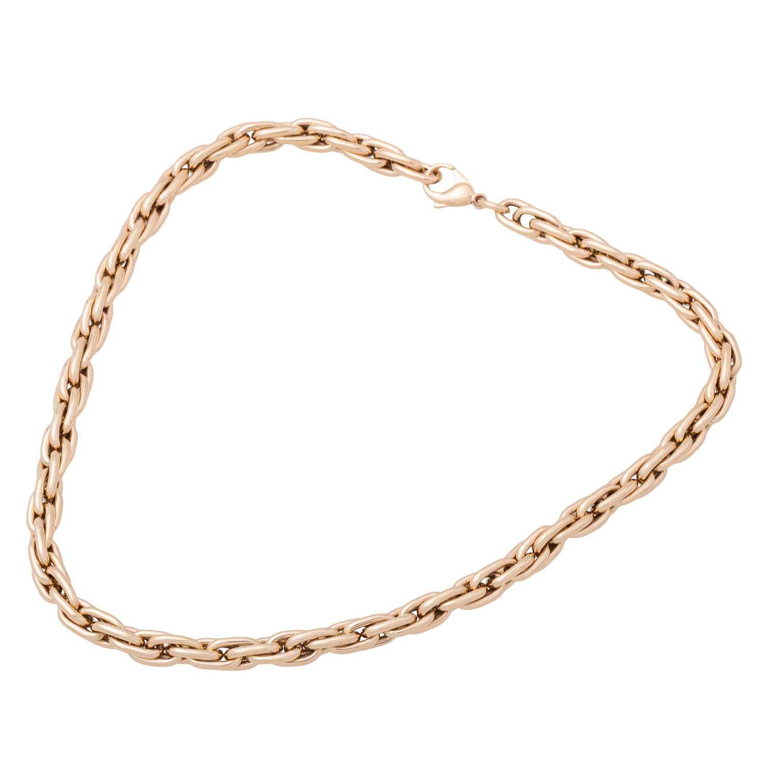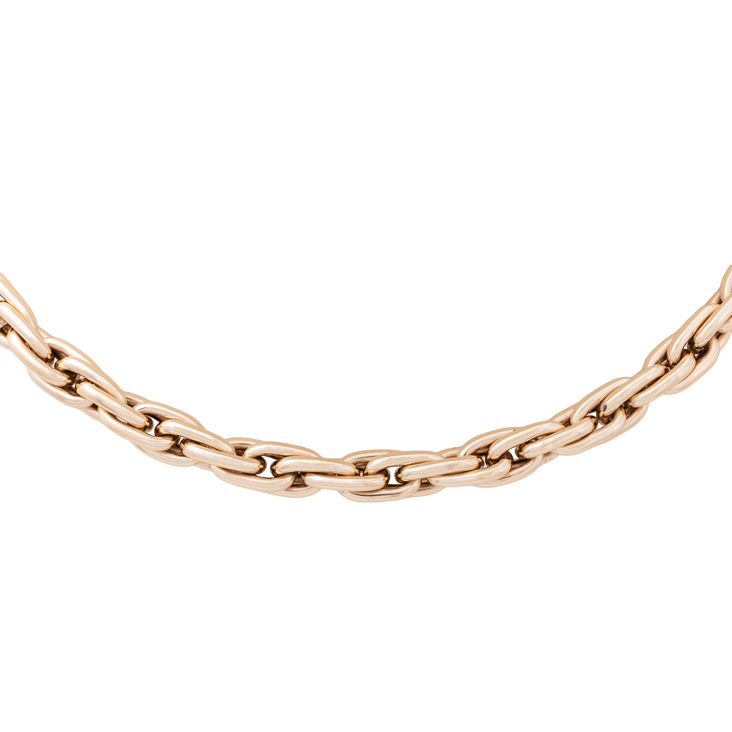 GG 14K, 50,9 g, L: 43 cm, B: 7,4 mm, Hohlglieder, Karabiner, Ende 20. Jh., minimale Tragespuren.