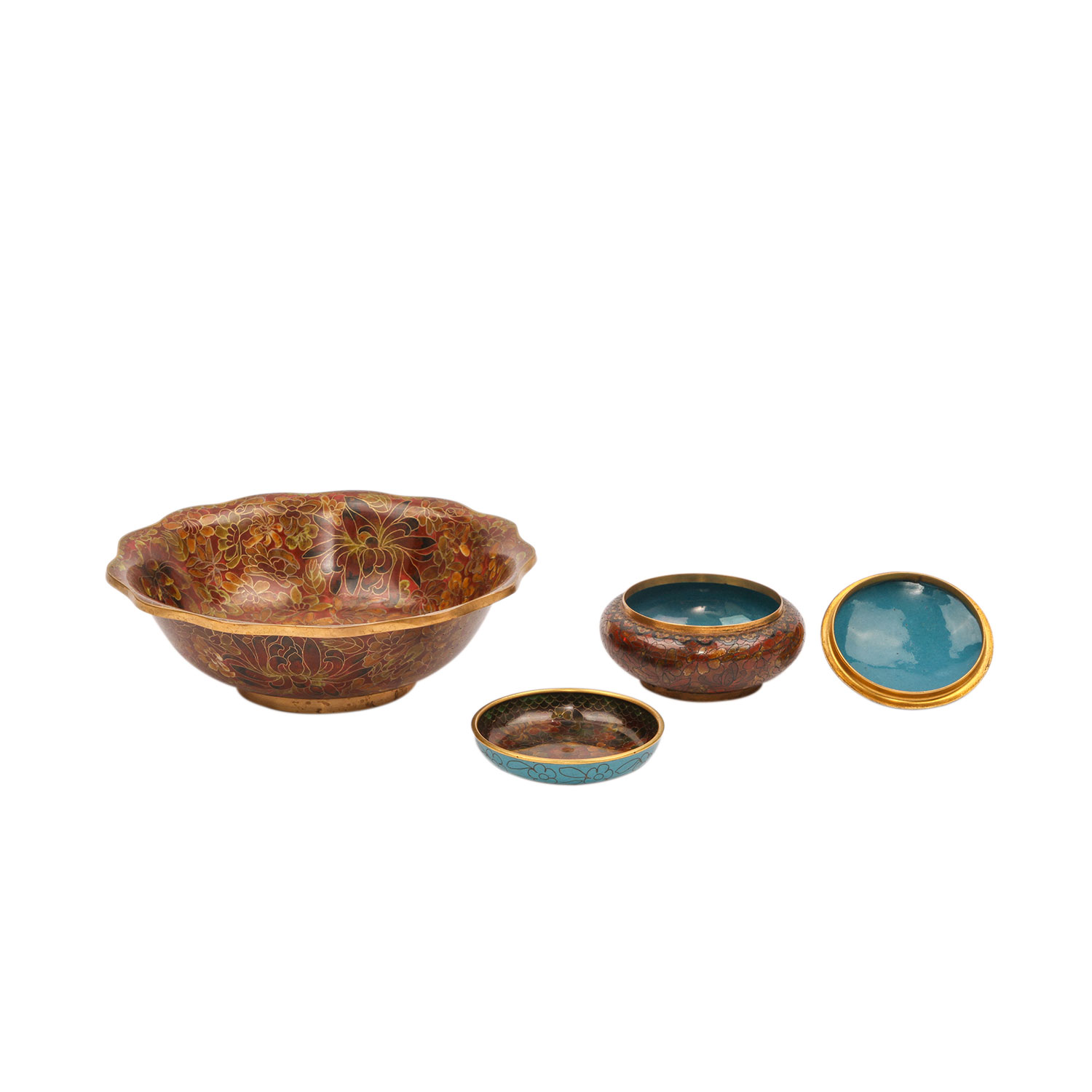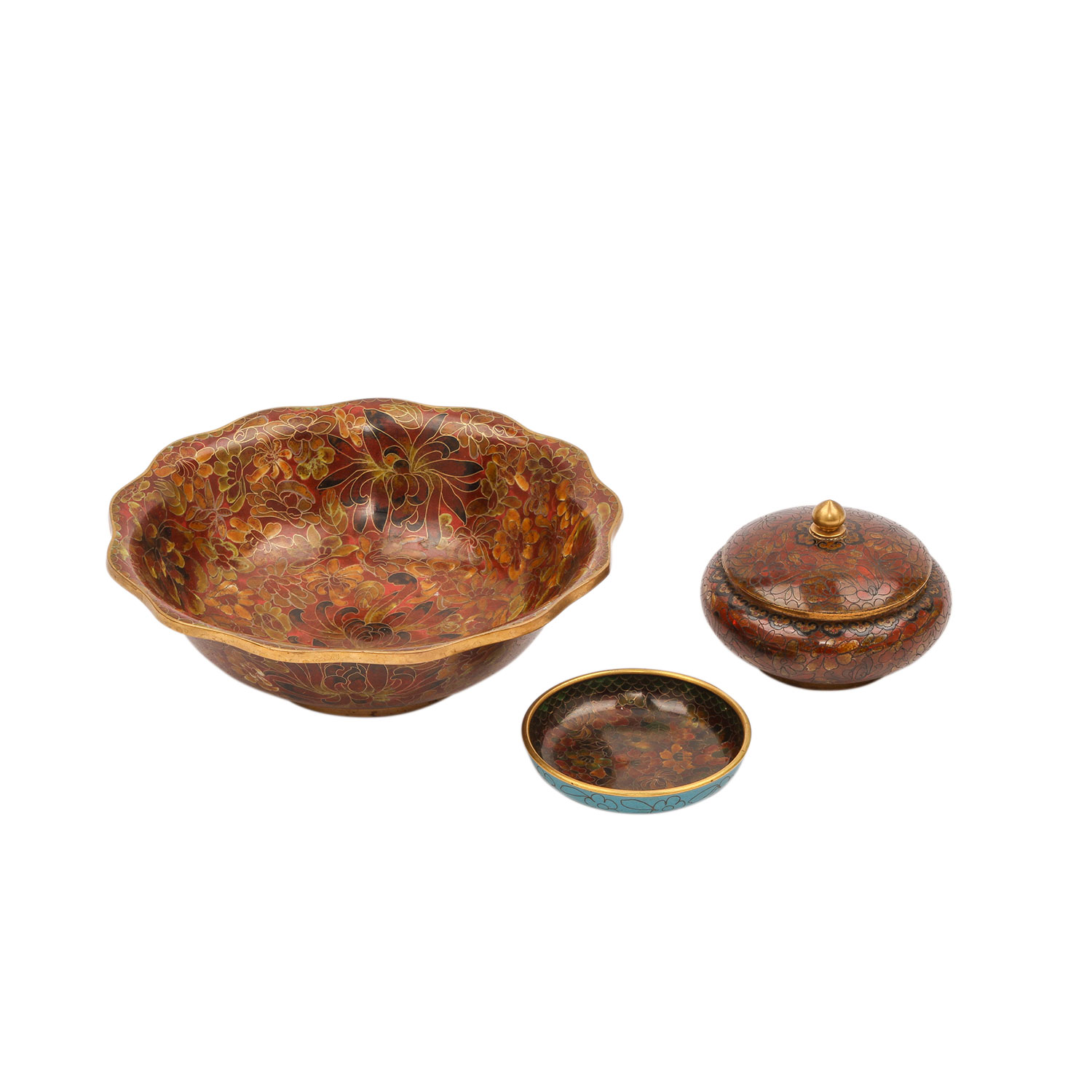 Dreiteiliges Set aus Cloisonné. CHINA, 20. Jh..