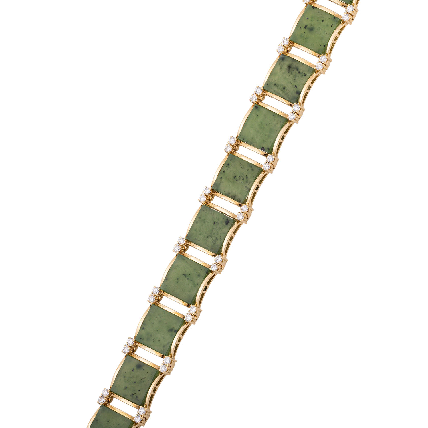 Edles Armband mit quadratischen Jadeplatten und Brillanten