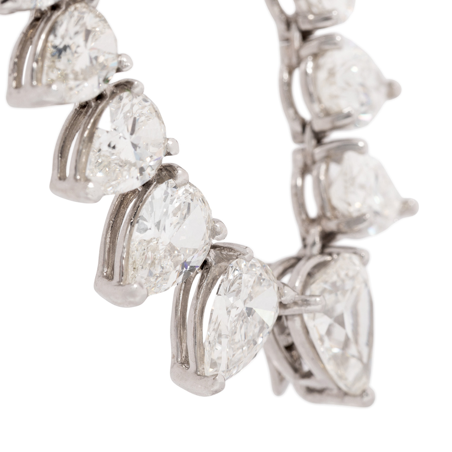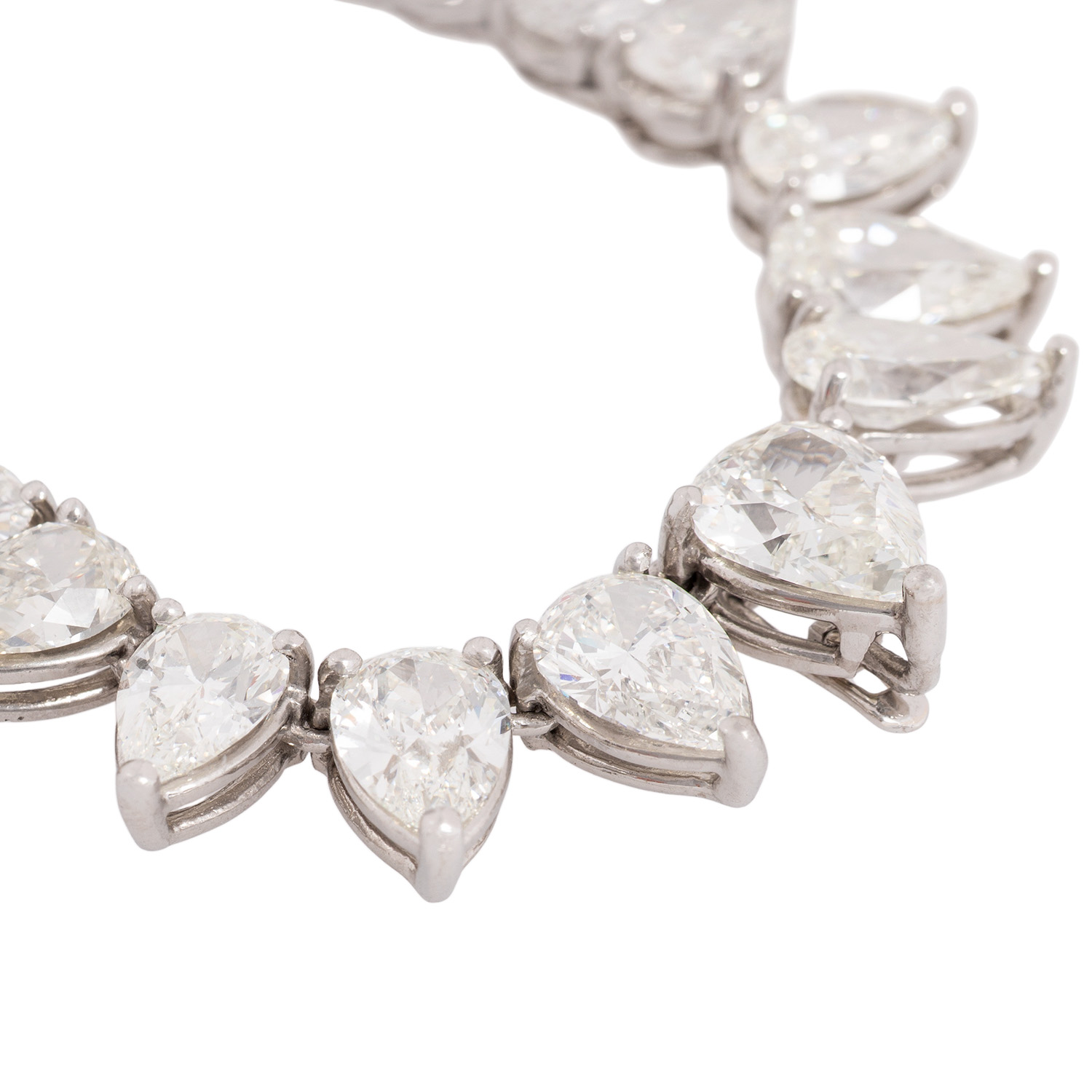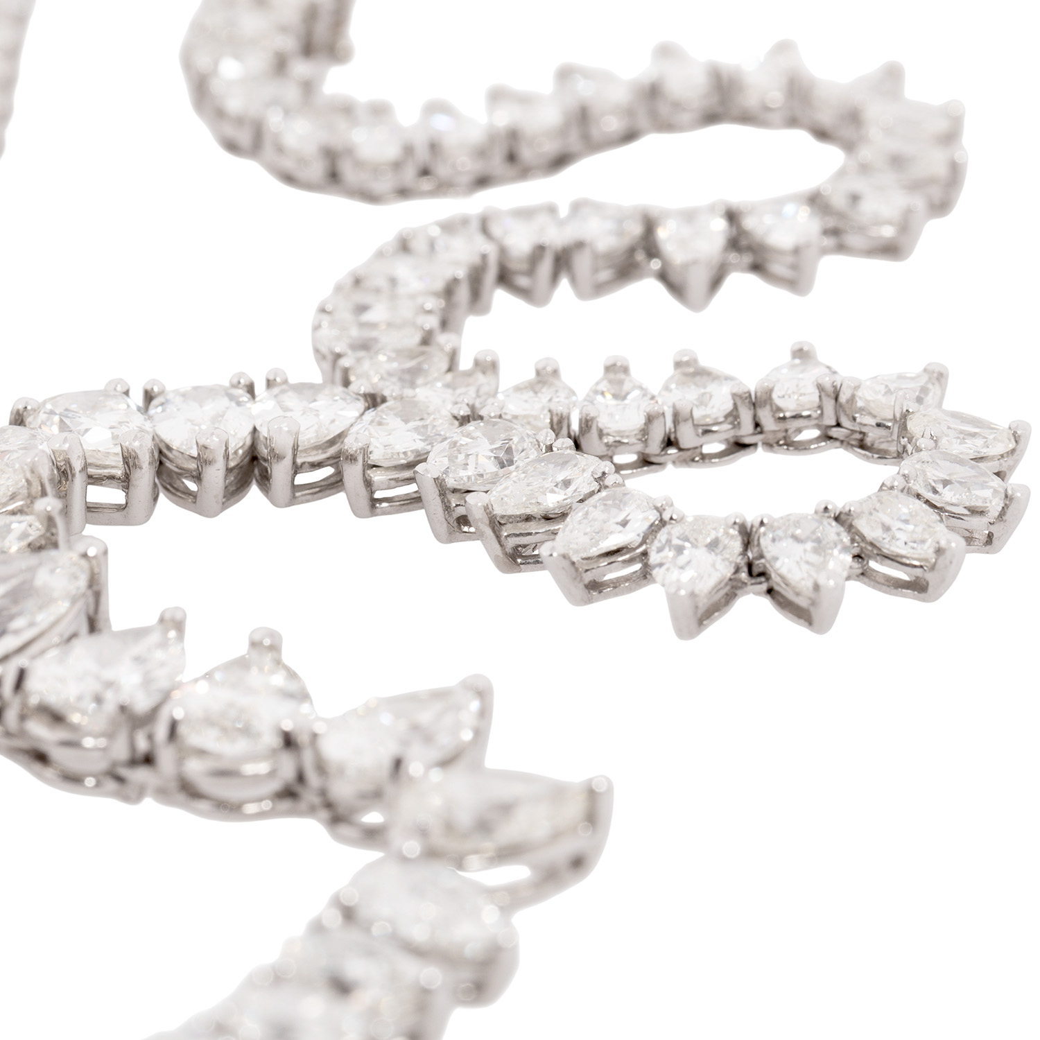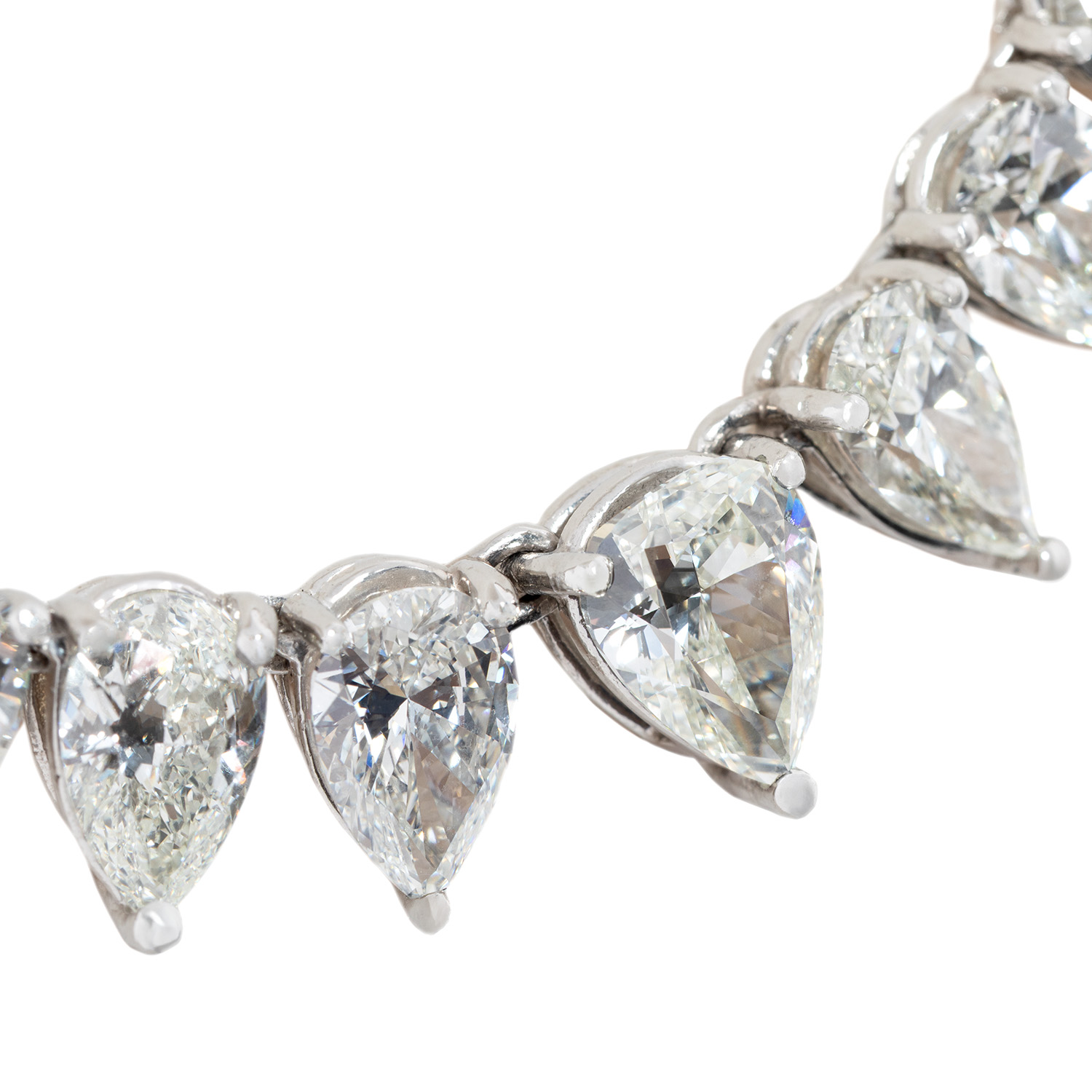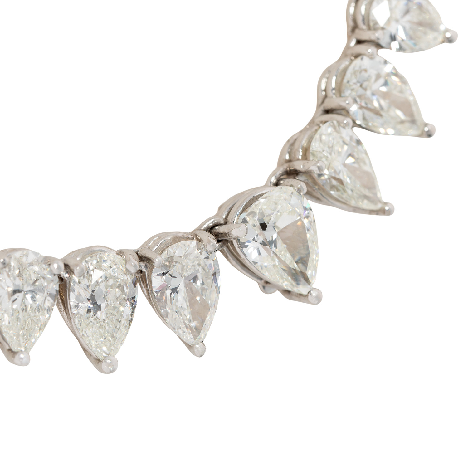 zus. ca. 38,94 ct, im Größenverlauf von ca. 5,5x4 bis 12x6 mm, ca. FW-GW (G-L)/VVS-VS, vereinzelt SI, größter Stein ca. 1,7 ct, WBW (2005): ca. 210.000 €, Platin, 53.2 g, L: 41 cm, Anfertigung von Hans D. Krieger (Idar-Oberstein) im Jahr 2005, sehr guter Erhalt, mit Kopien der Herstellerexpertise und eines Wertgutachtens. (1)