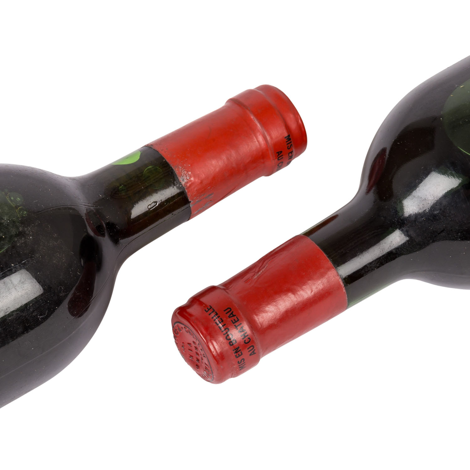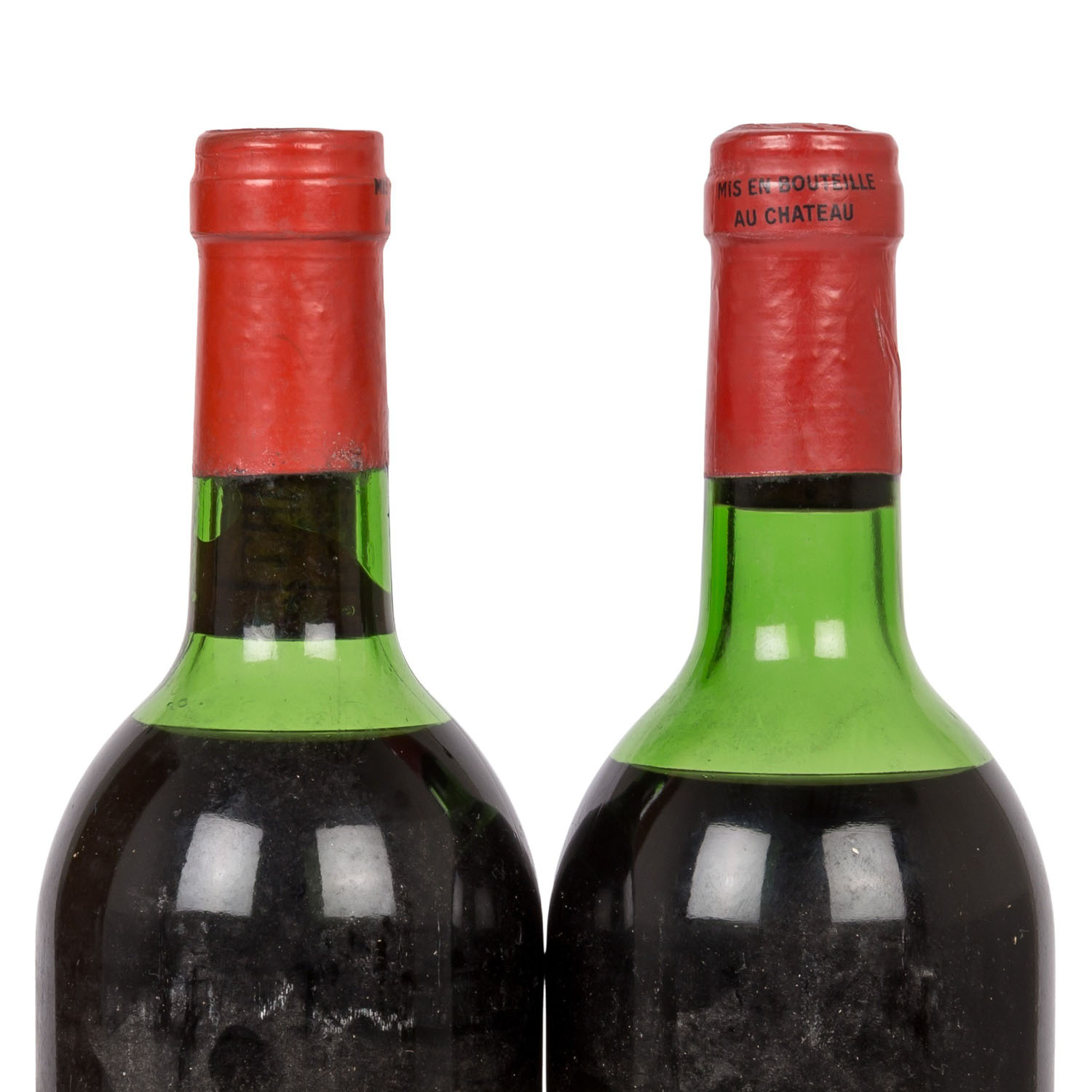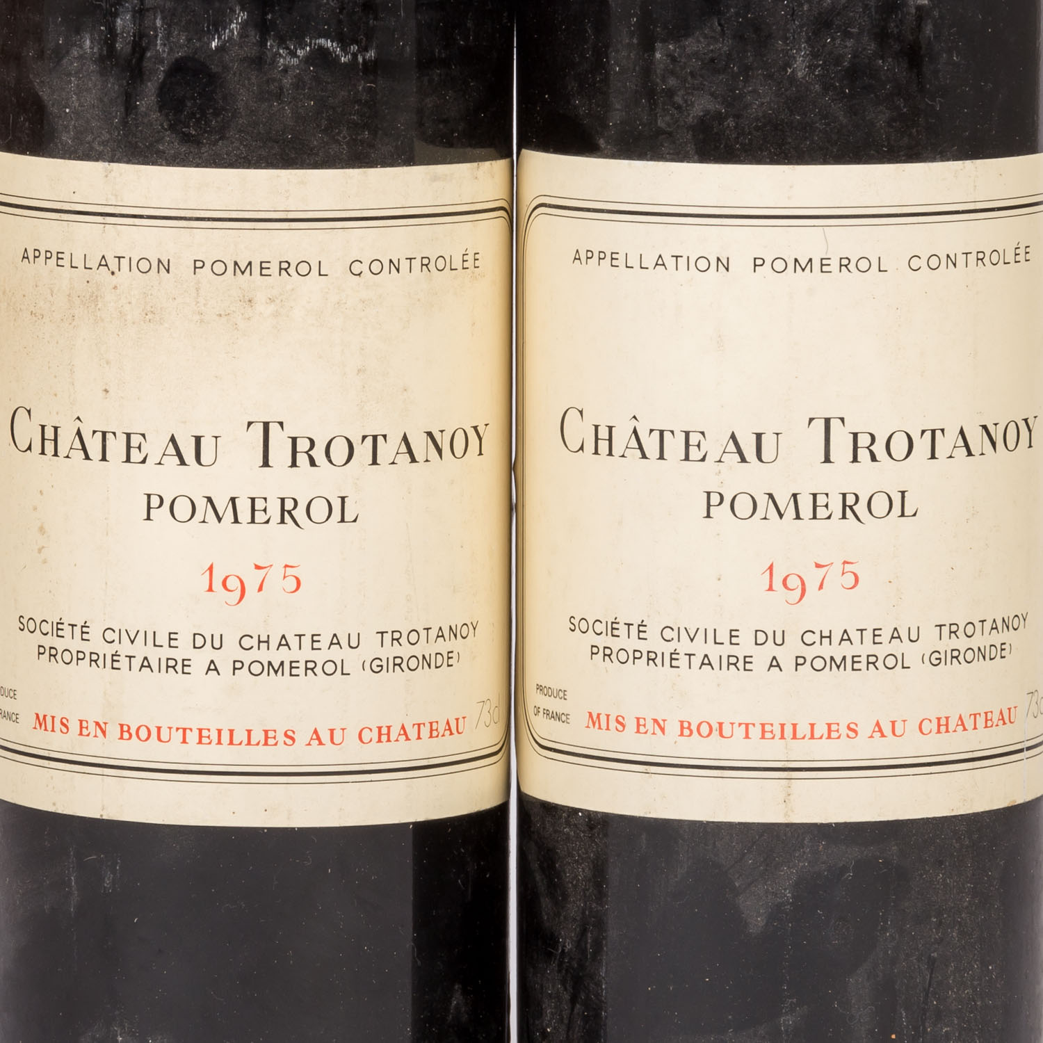 1975 CHÂTEAU TROTANOY Pomerol 2 Flaschen, Bordeaux, France, 730 ml, fill level HS/MS (high shoulder/mid shoulder). One cork lower in the neck of the bottle. Signs of age and storage.