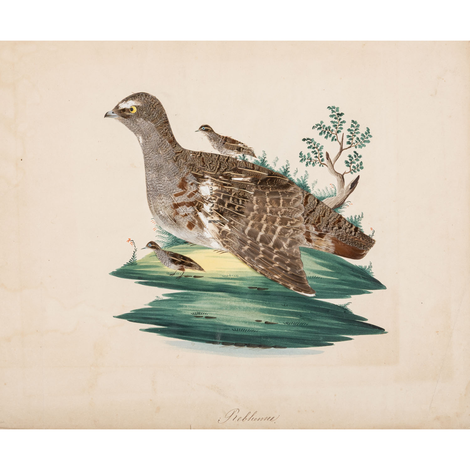 3 HUNTING COLLAGEN with partridge motifs in landscape, 19th century,