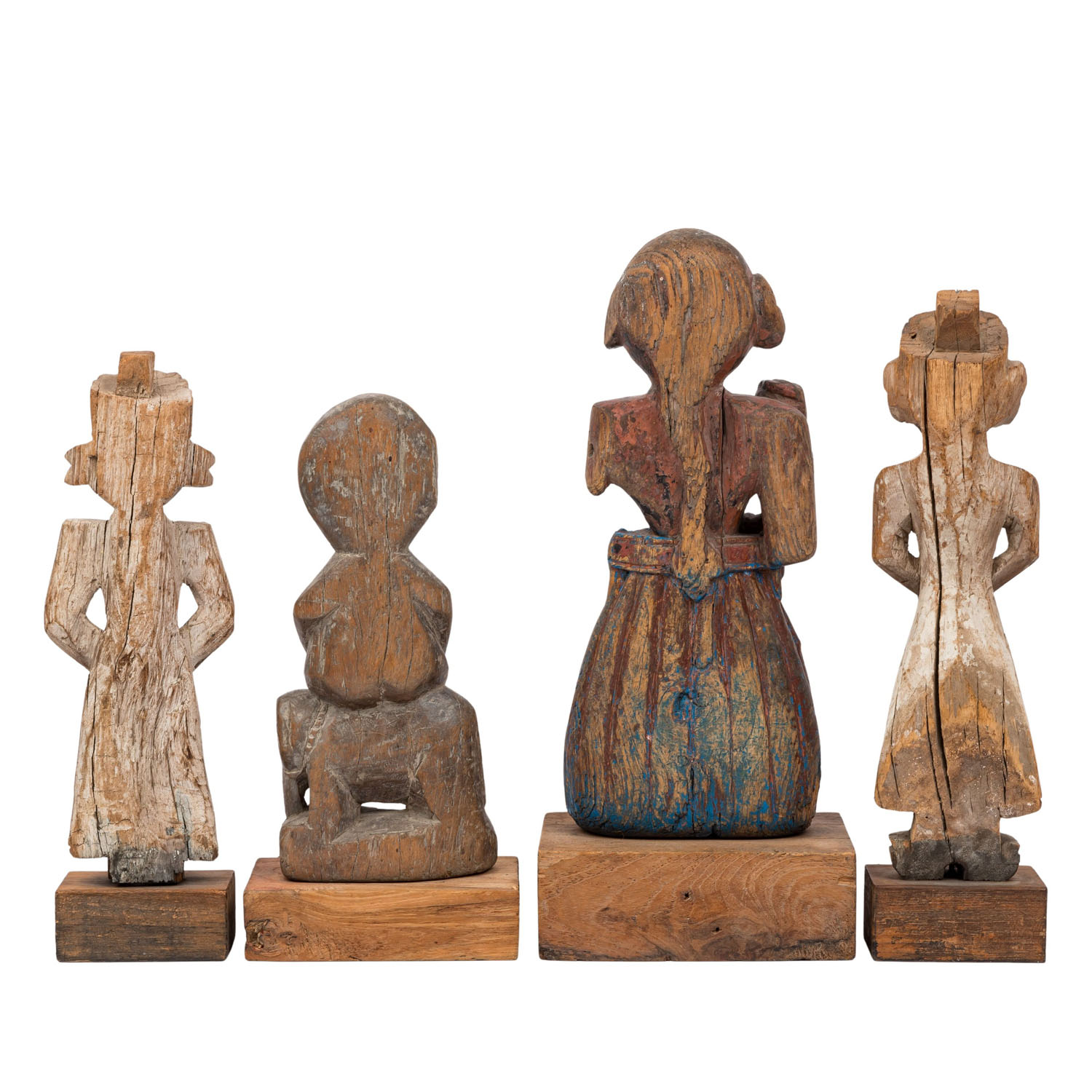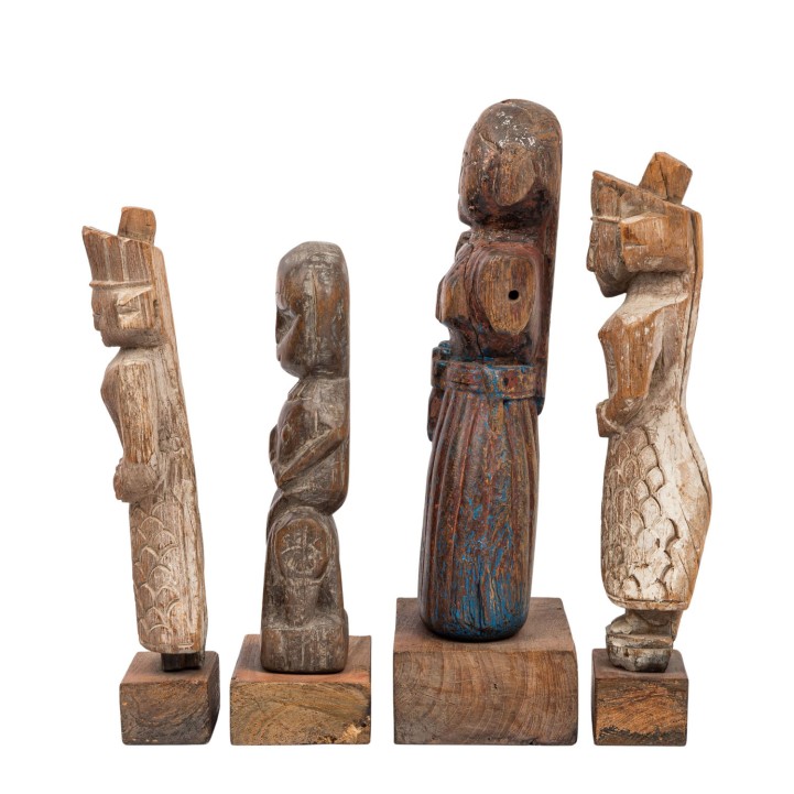 4 wooden statuettes. NORTHERN INDIA, around 1800: