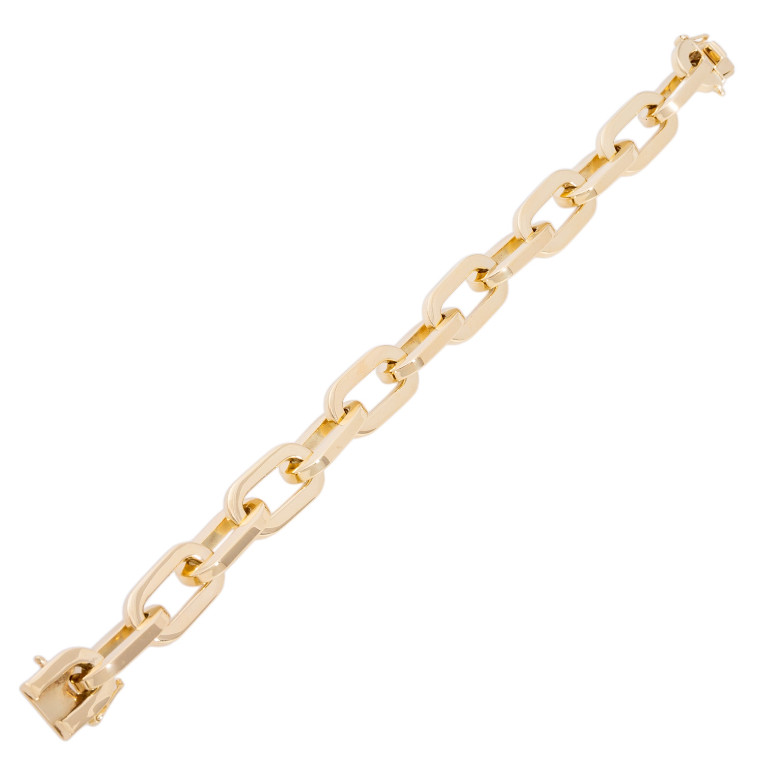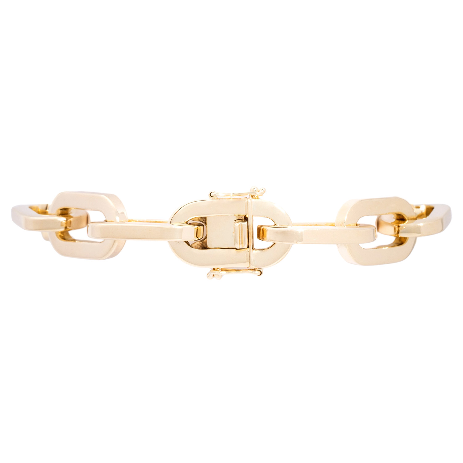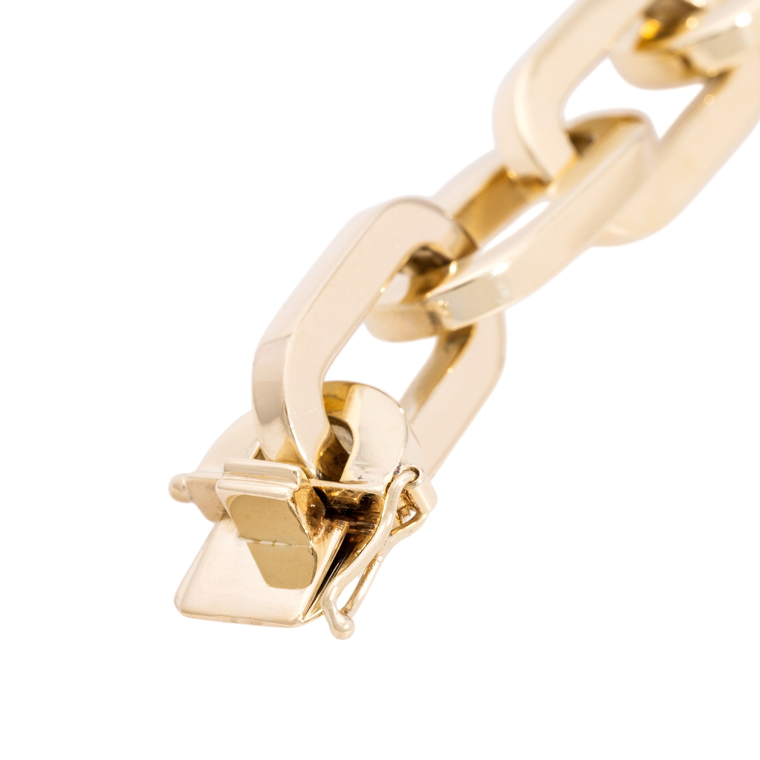 Anchor bracelet, polished, 18K yellow gold, 86.5 g, L: ca. 21 cm, W: ca. 12 mmpolished, 18K yellow gold, late 20th century, minor signs of wear, box clasp with safety catch.