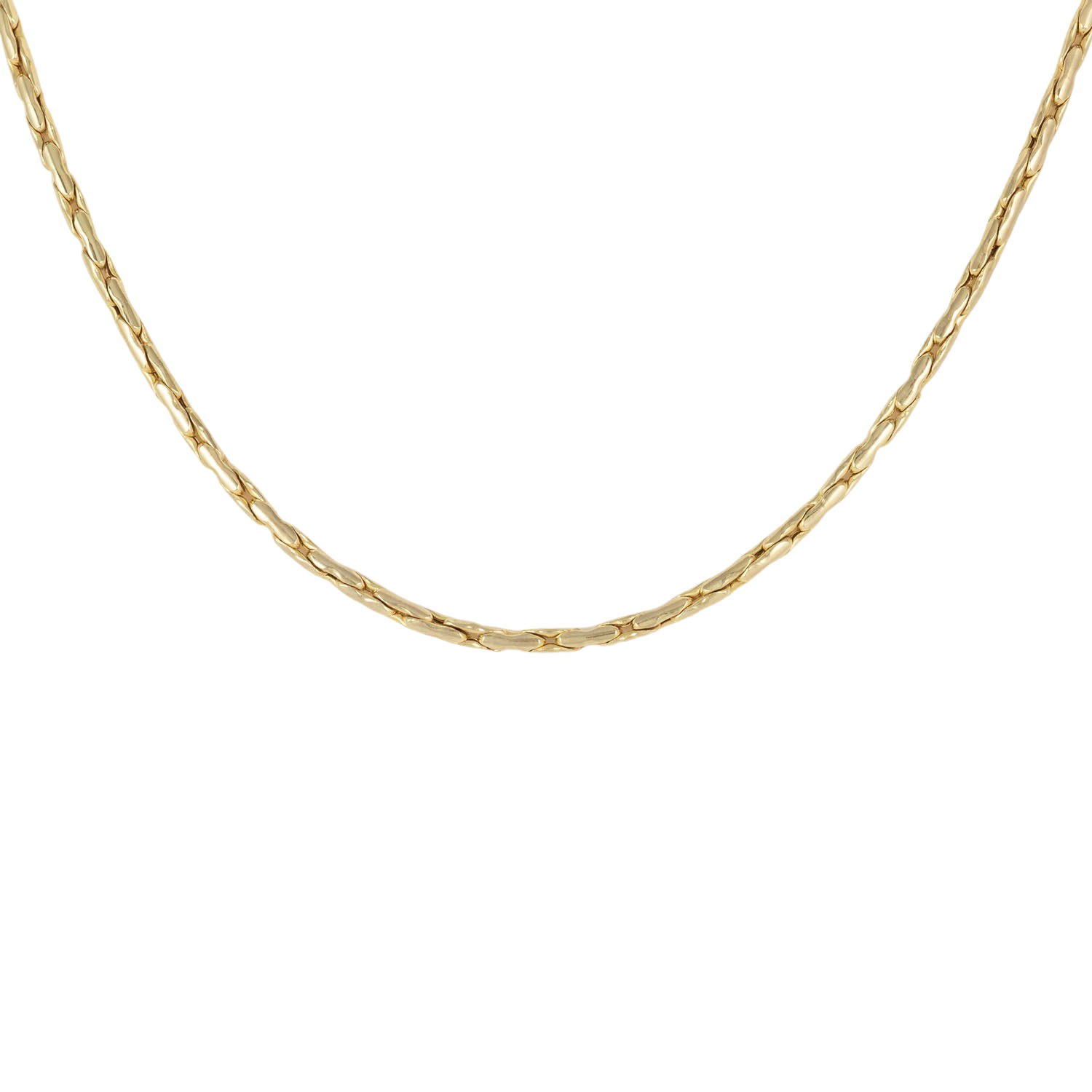 Anchor chain, round, 14K yellow gold, 7.2 g, L: 45 cm, D: 1.5 mm, carabiner clasp, 20th/21st century, minimal signs of wear.
