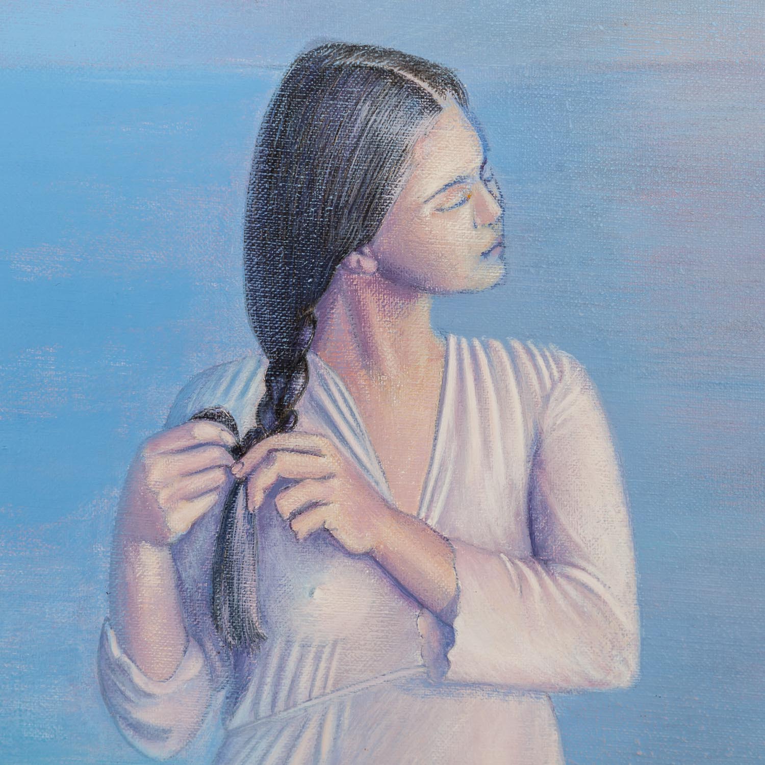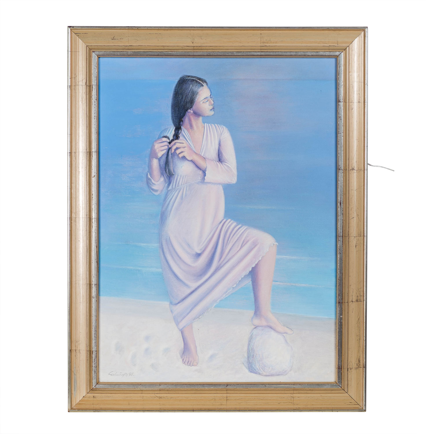 ANDERSEN, ERLING (1937-2010), 'Young woman on the beach', below left signed and dated 'Erling A 91', mixed media / canvas, HxW: approx. 75x55 cm (90x69 cm with frame). Signs of age, a few stains. With frame (signs of age and rubbing).