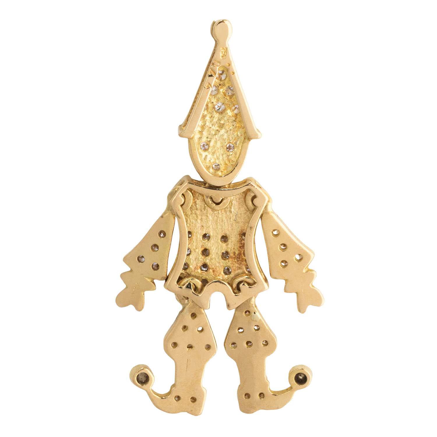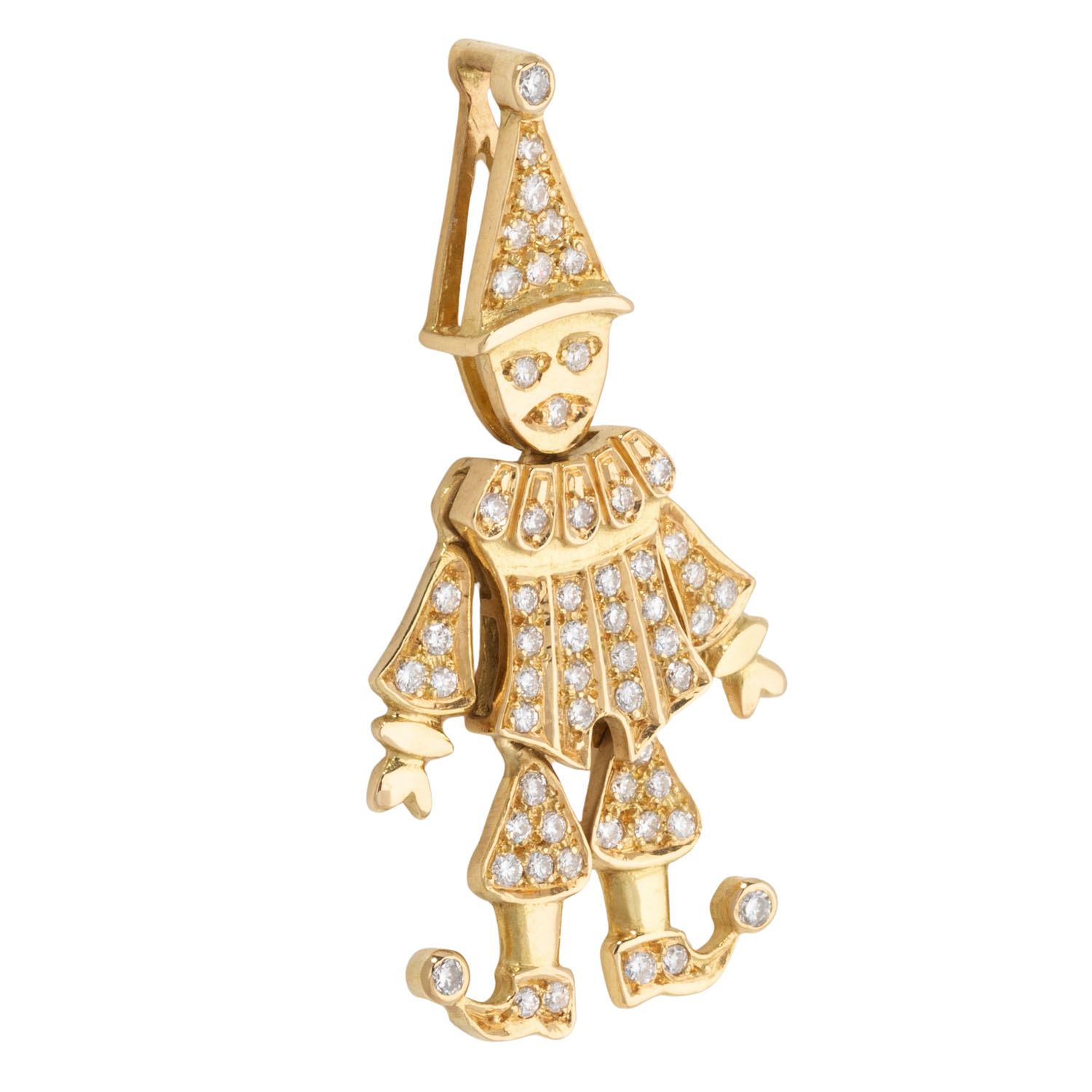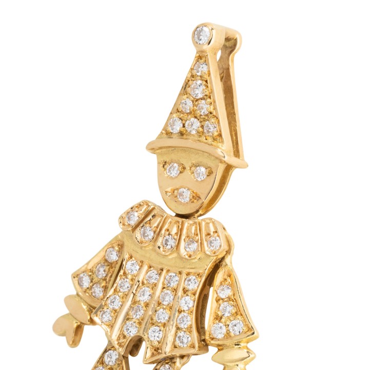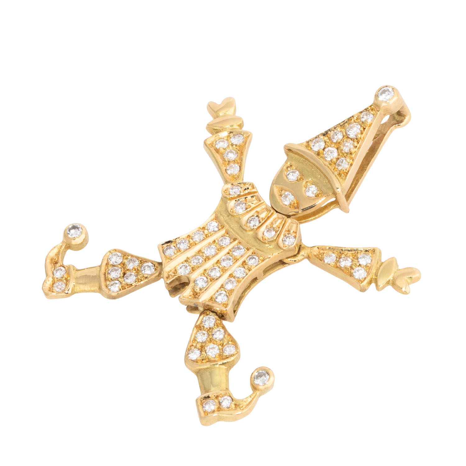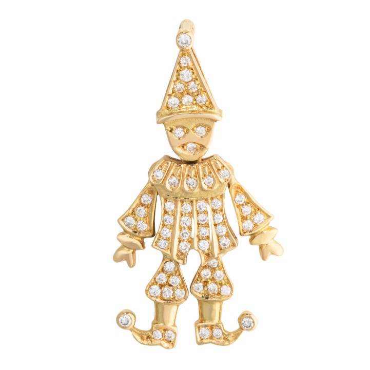 Pendant 'Harlekin', set with 58 brilliant cut diamonds, totalling 0.44 ct (marked), good colour and clarity, 18K yellow gold, 5.3 g, L x W: 38.2 x 18.5 mm, 5 movable limbs, late 20th century, minimal signs of wear.