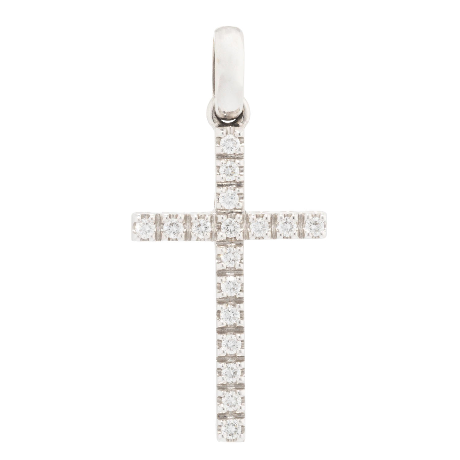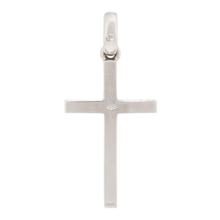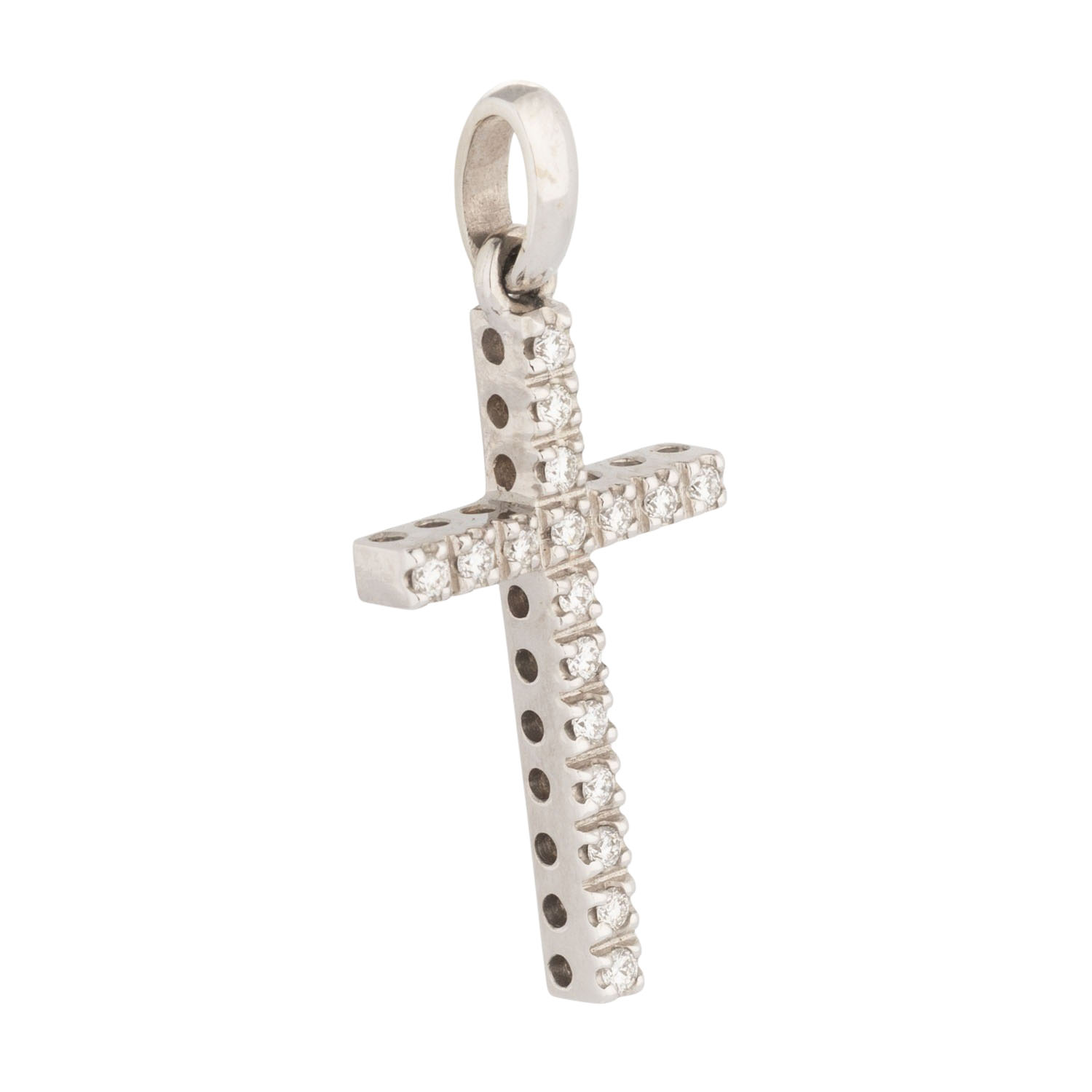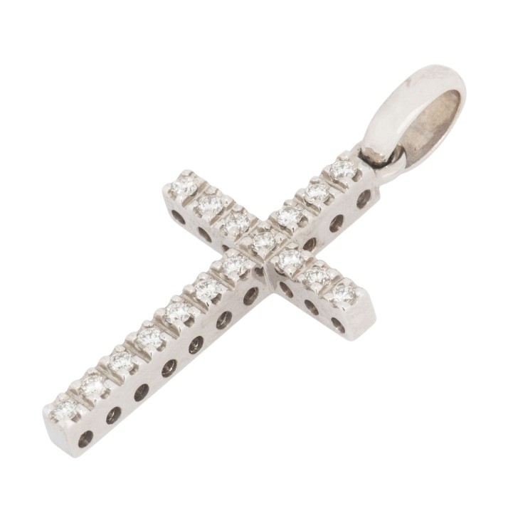 Cross pendant with 17 diamonds, totalling approx. 0.23 ct, good color and clarity, 14K WG, 3.1 g, 3.5x1.5 cm, 20th/21st century, minor signs of wear.