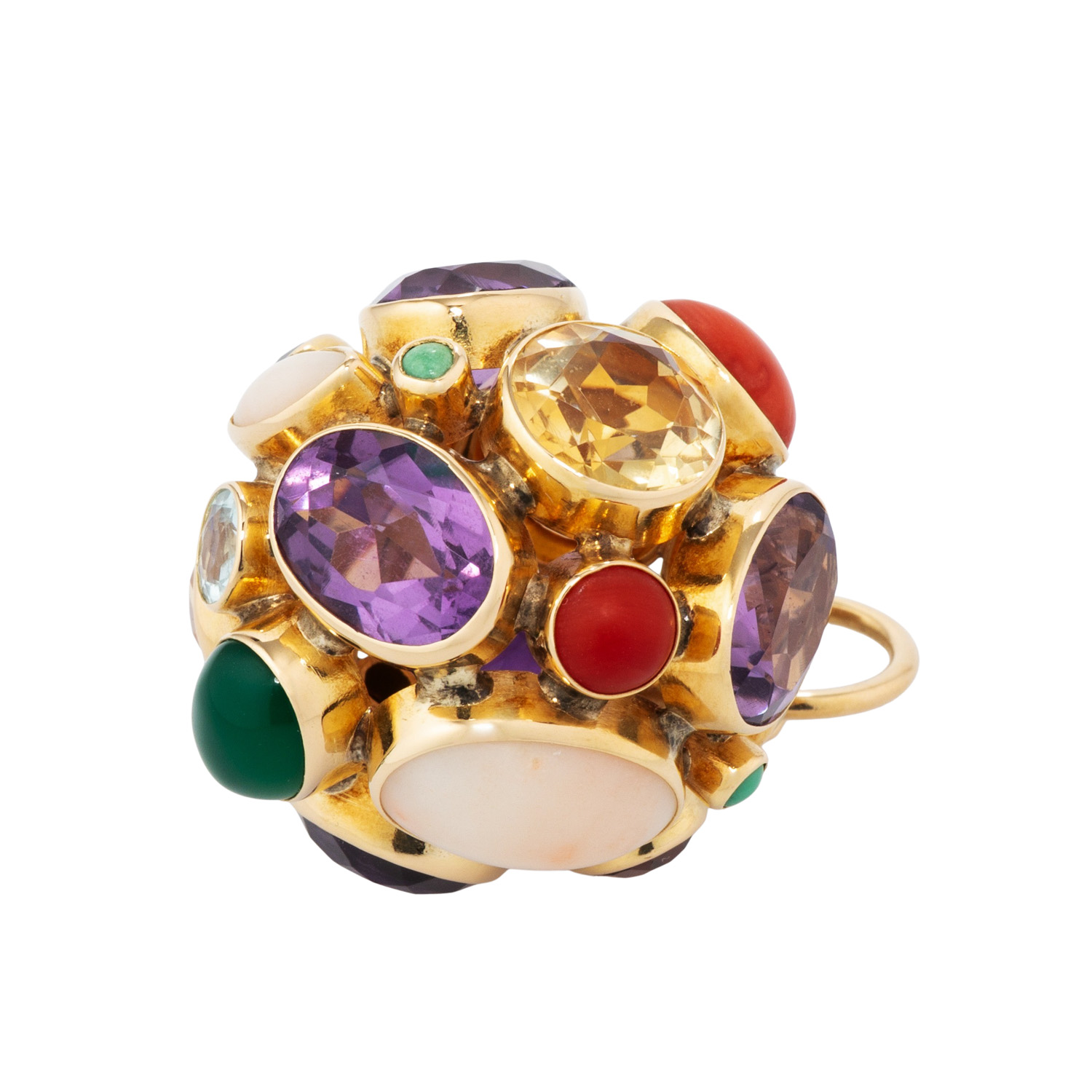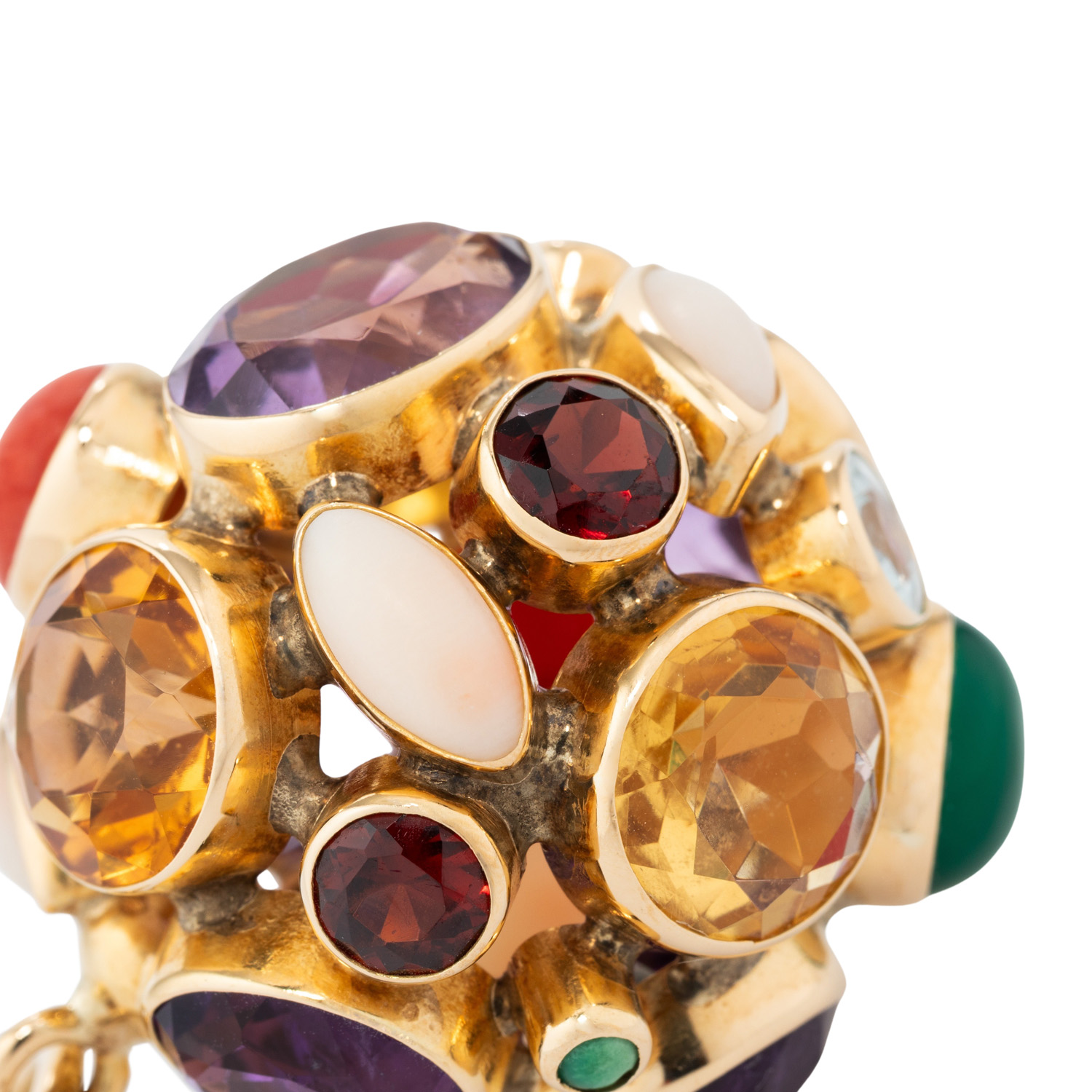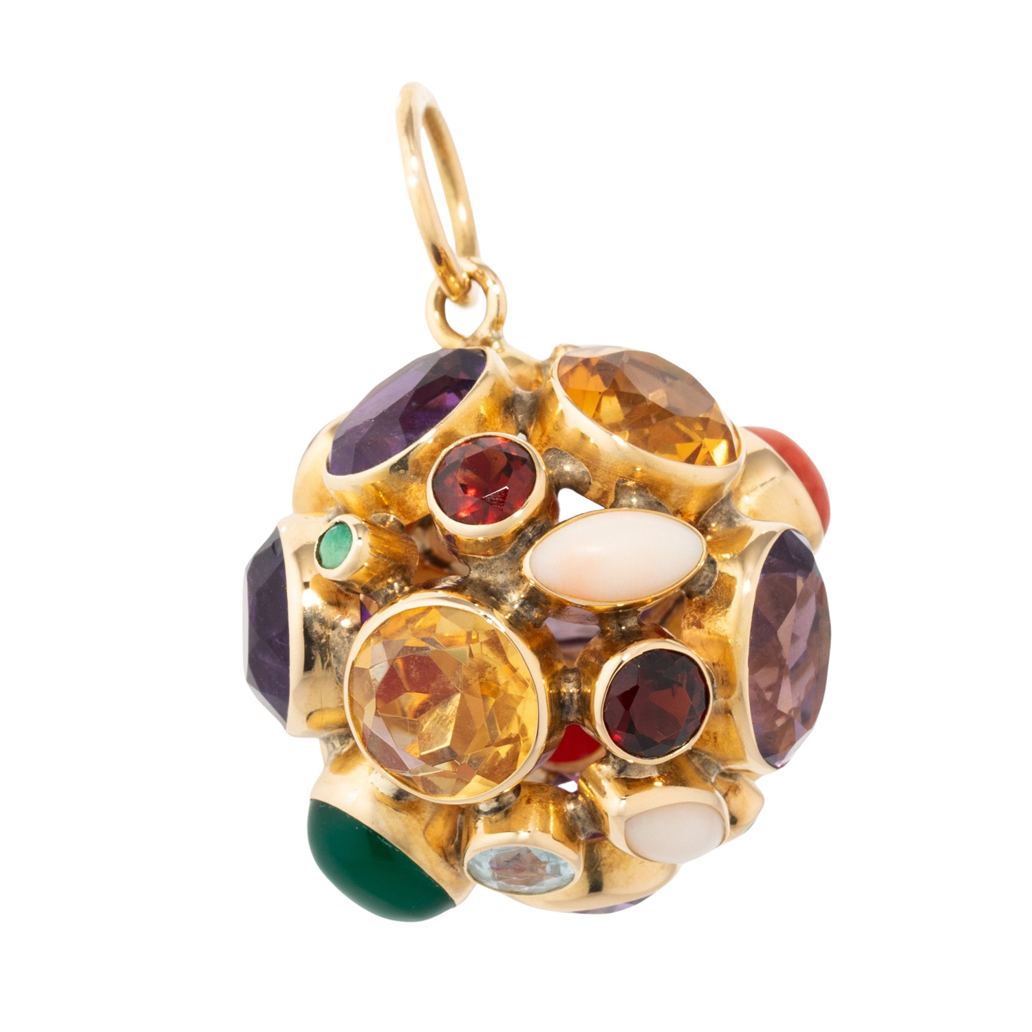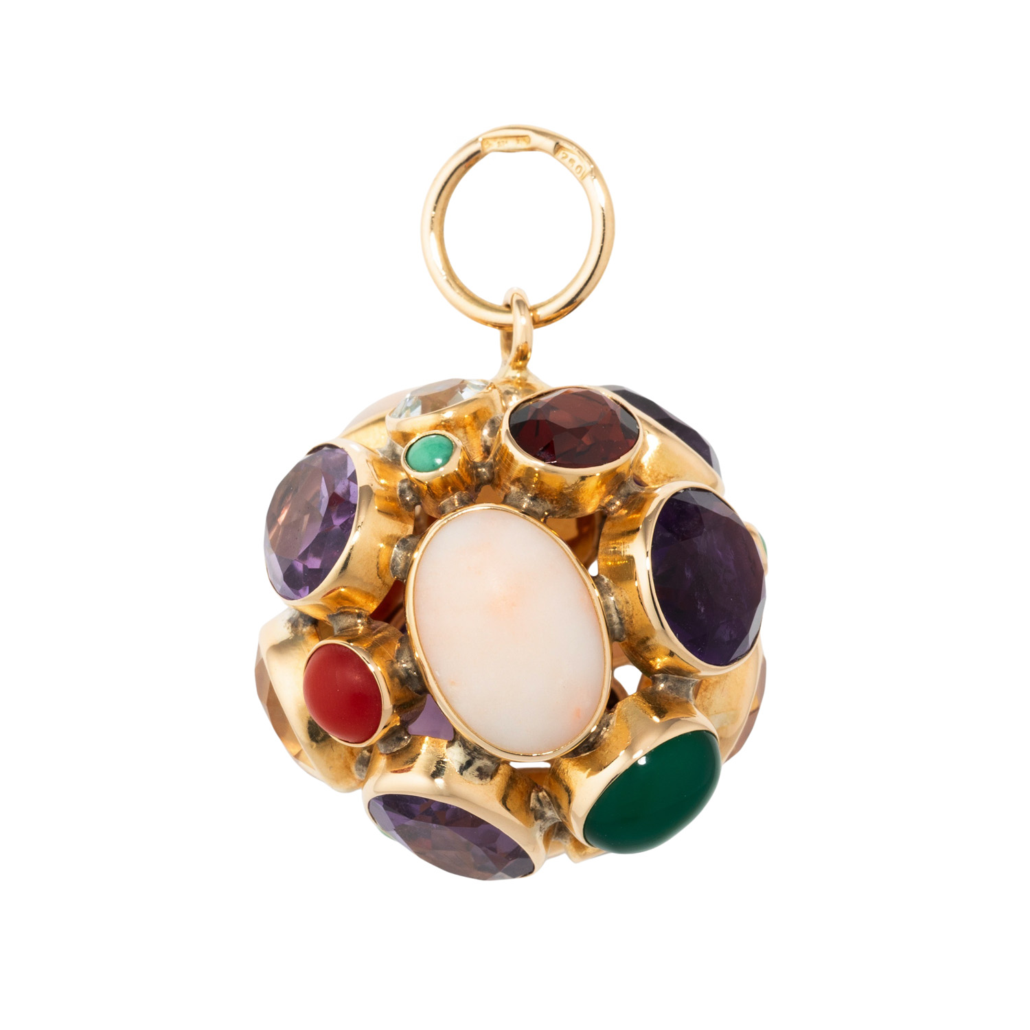 Pendant ‘Ball’ with 23 colourful gemstones: aquamarines, amethysts, citrines, garnets, turquoises and corals, YG 18K, 24 g, D: ca. 29 mm, eyelet D: ca. 8.5 mm, 20th/21st century, minimal signs of wear, with Italian maker's mark. No shipping outside the EU!