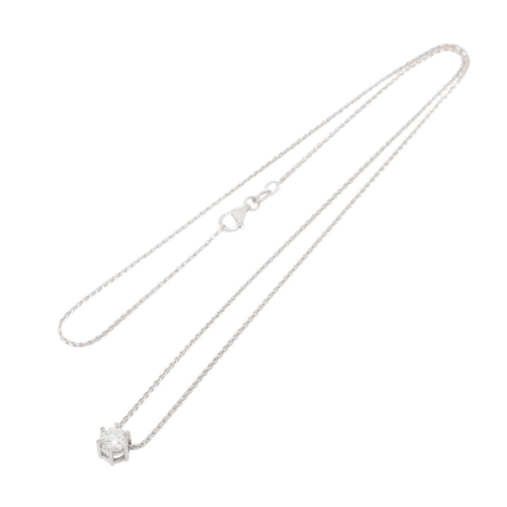 Pendant with brilliant-cut diamond, 0.50 ct, TIW (K)/SI, on necklace, WG 18K, 3.8 g, L: 45 cm, 21st century, mint condition.