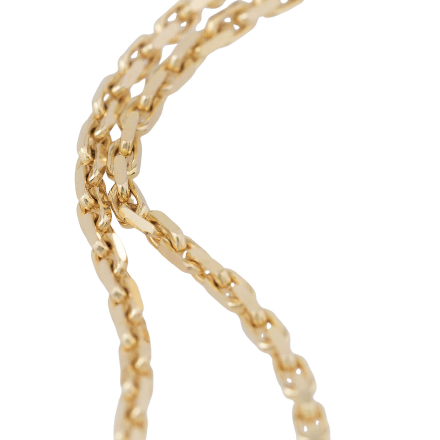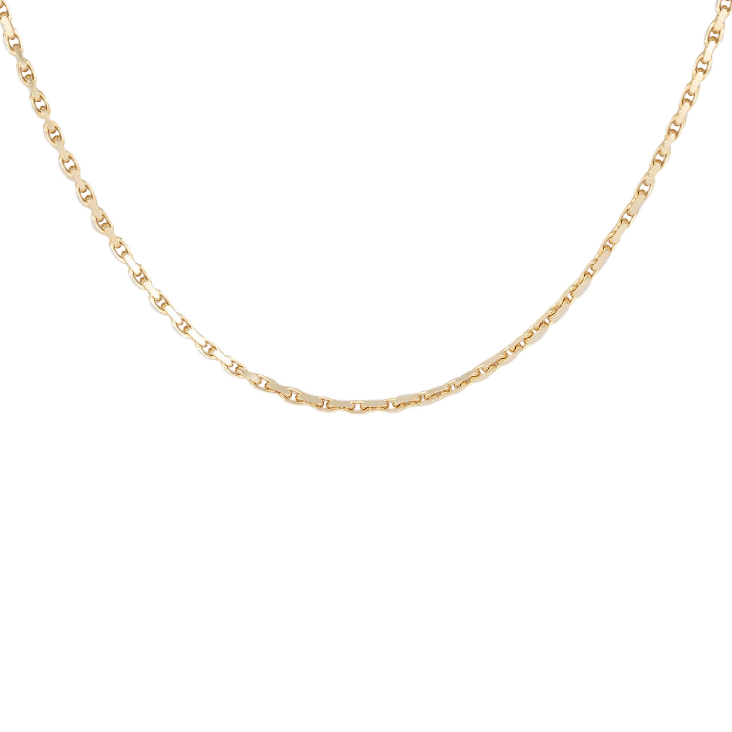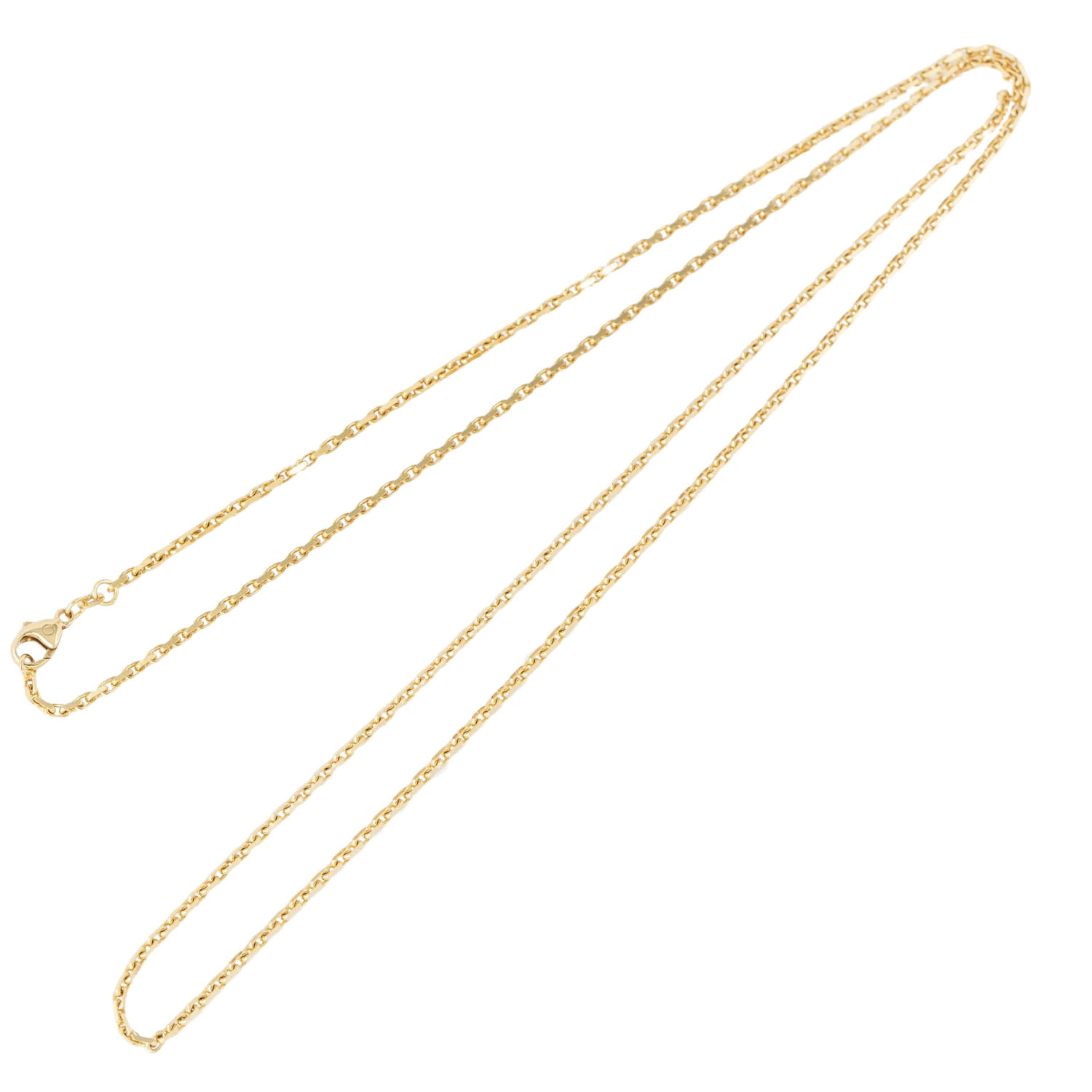 Anchor chain, diamond cut, 14K yellow gold, 16.8 g, L: 80 cm, W: 2 mm, carabiner clasp, 20th/21st century, minimal signs of wear.