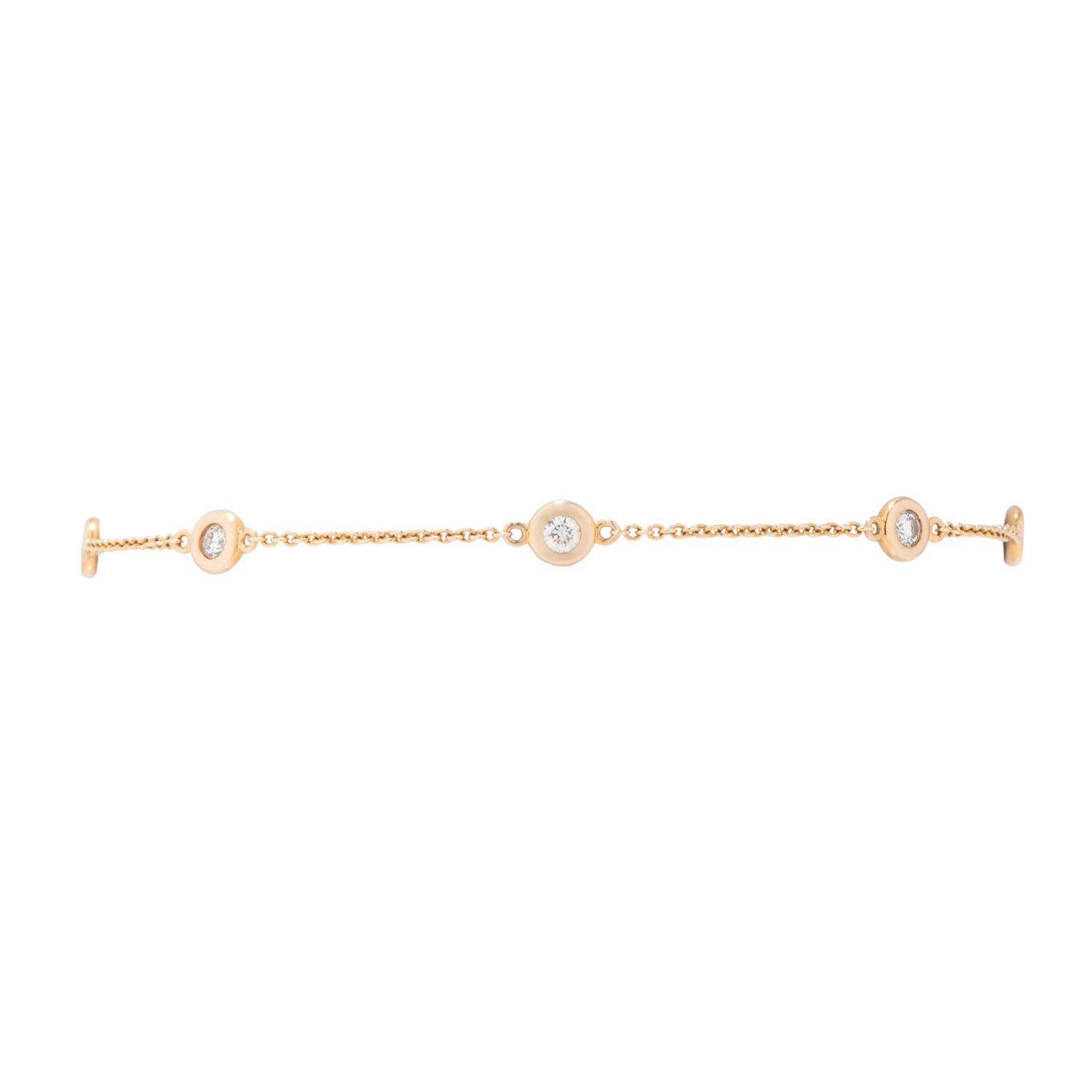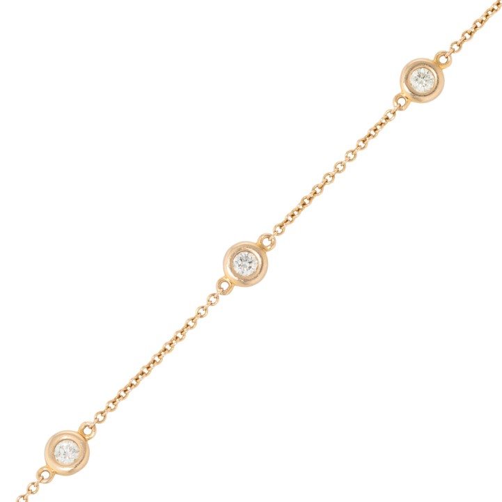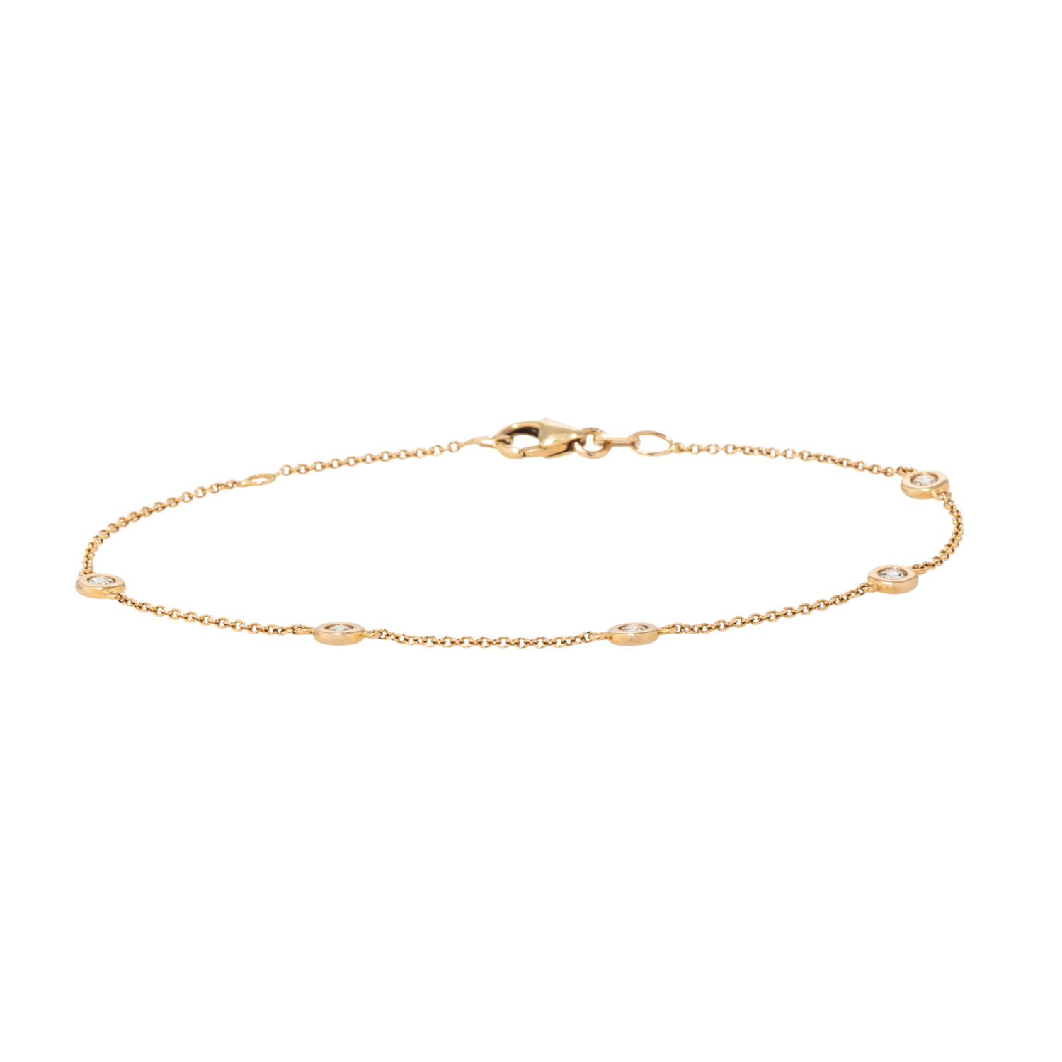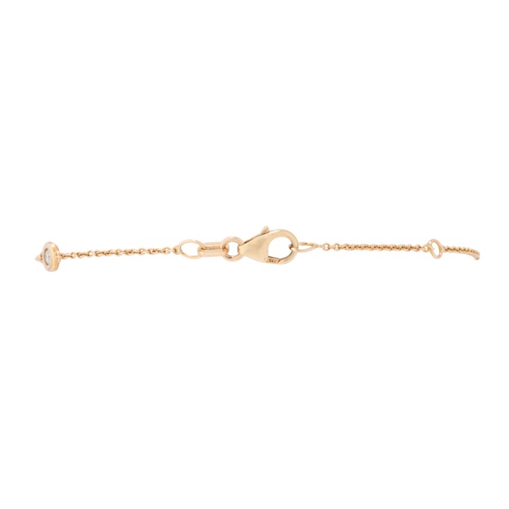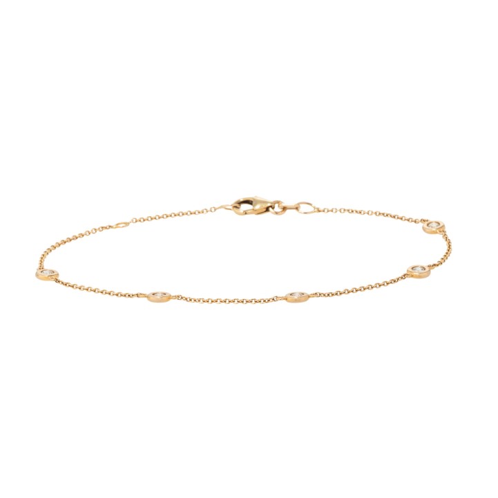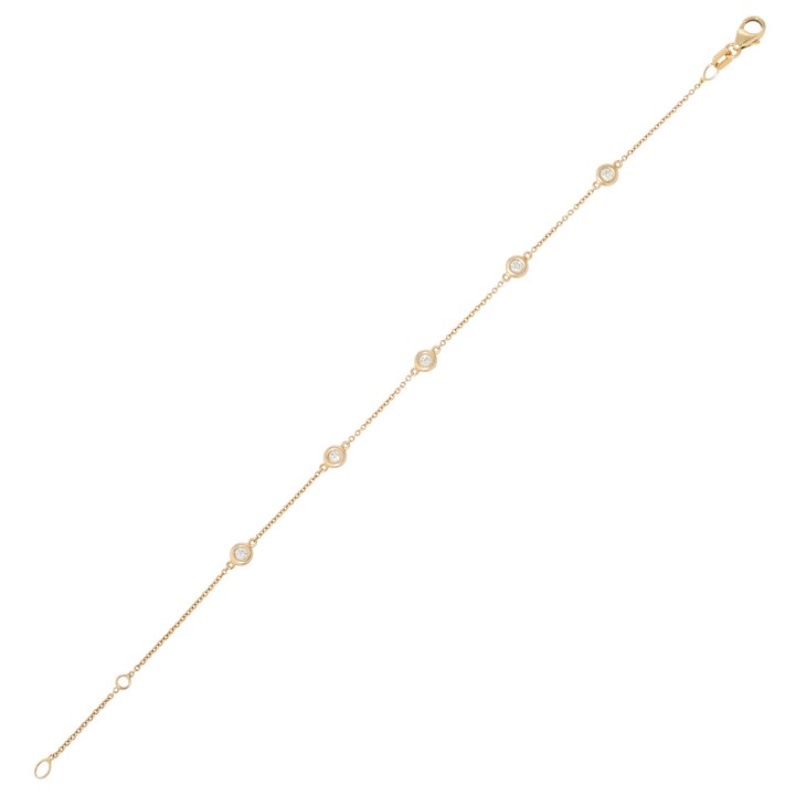 Bracelet with 5 brilliant-cut diamonds, totaling approx. 0.25 ct, WHITE (H)/SI, 14K yellow gold, 1.9 g, L: approx. 19.5 cm, 2nd eyelets 17.5 cm, W: approx. 0.8 - 4.2 mm, 21st century, minimal signs of wear.