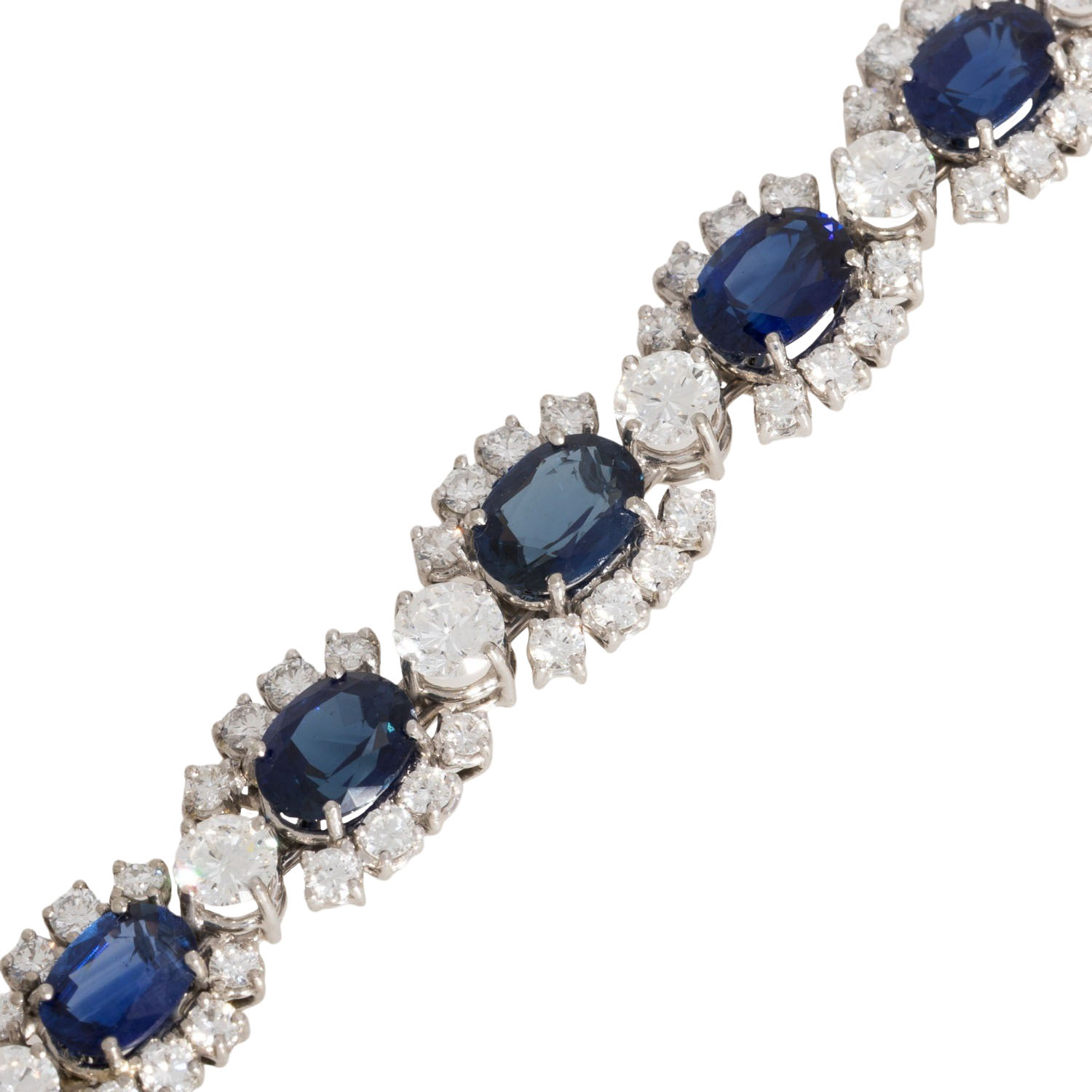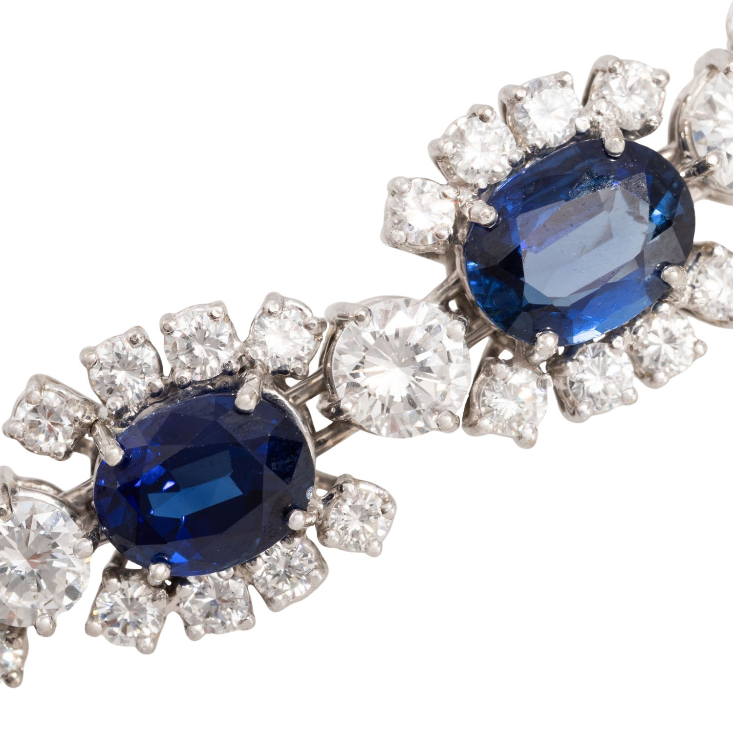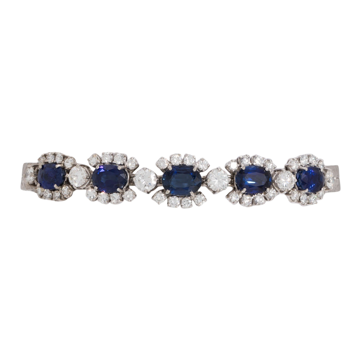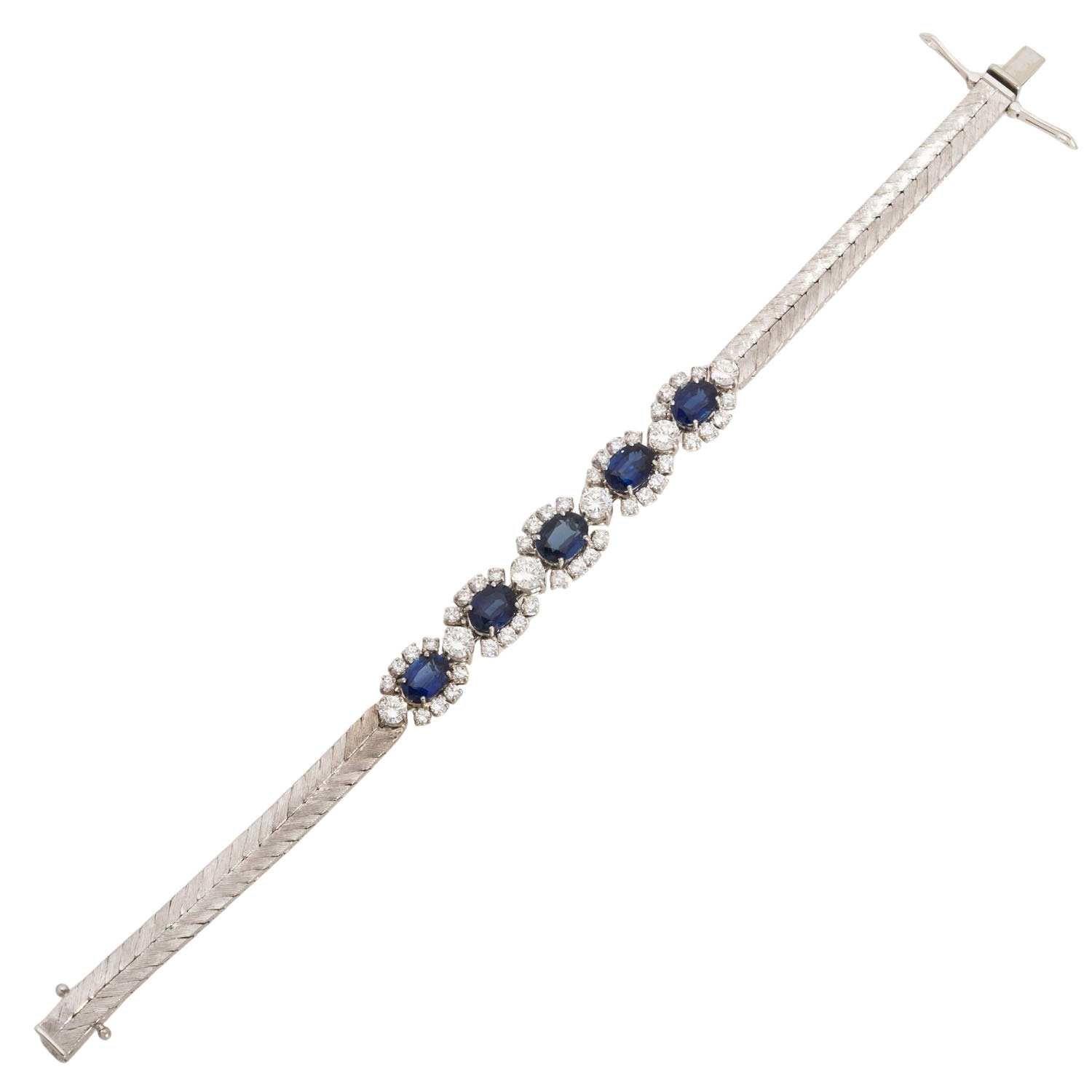 Bracelet set with 5 oval-cut sapphire totalling approx. 5.3 ct, brilliant-cut diamonds totalling approx. 2.6 ct, approx. RW (G)/VS, 18K WG, 27.2 g, lenght 18 cm, 20th/21st century, signs of wear, certificate.