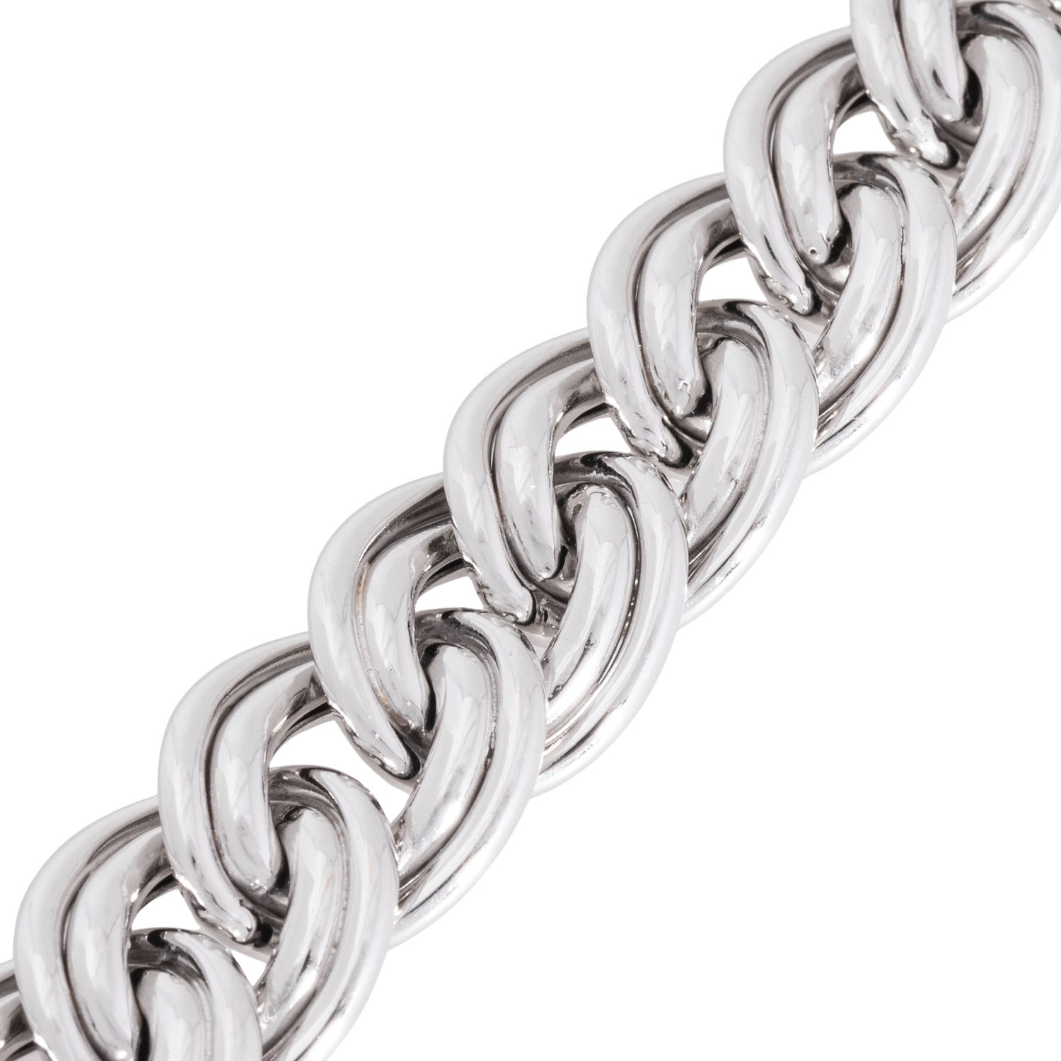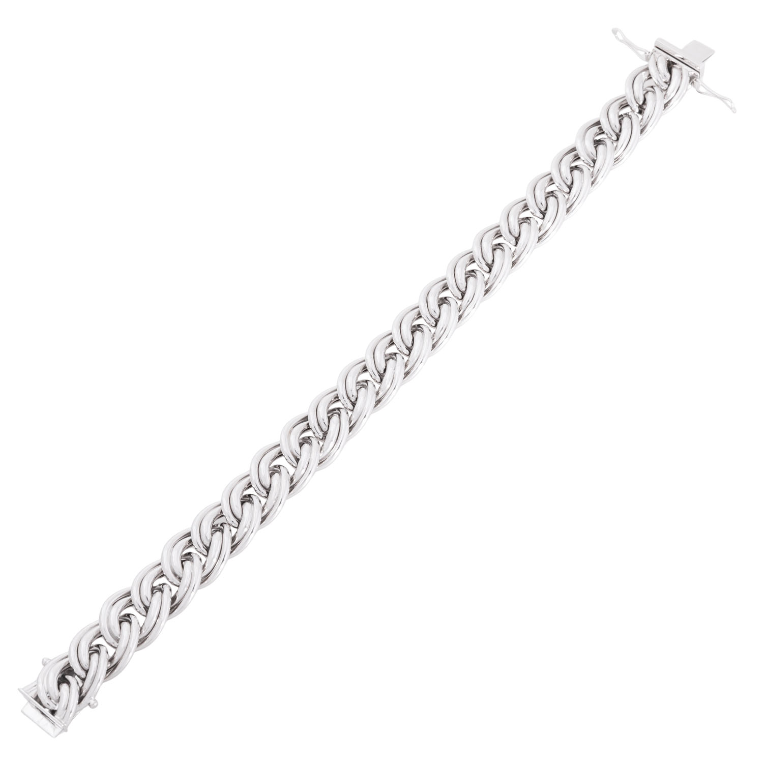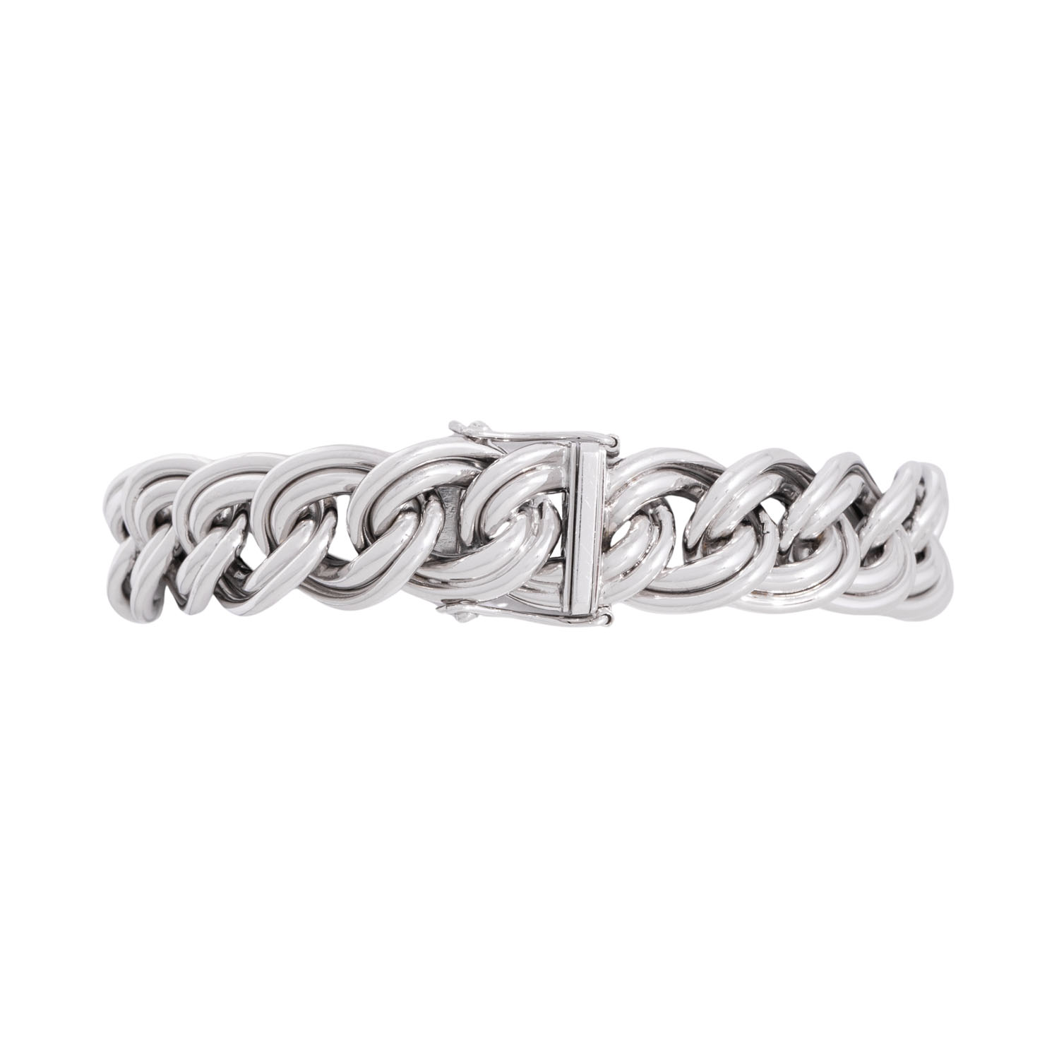 Bracelet, double curb links, 14K white gold, 38.6 g, L: 20 cm, W: 13.1 mm, box clasp, 2 safety catches, 20th/21st century, minimal signs of wear, handcrafted.