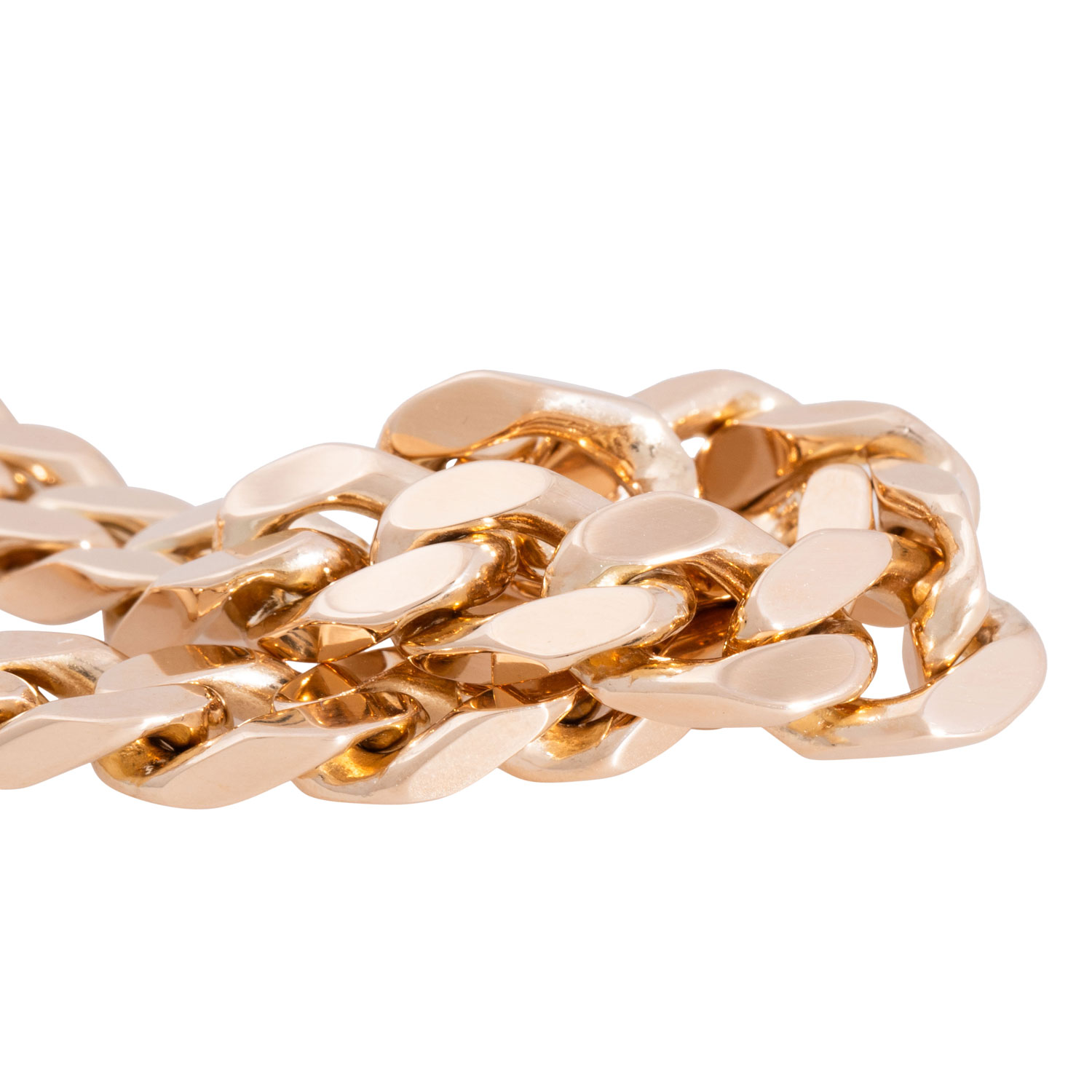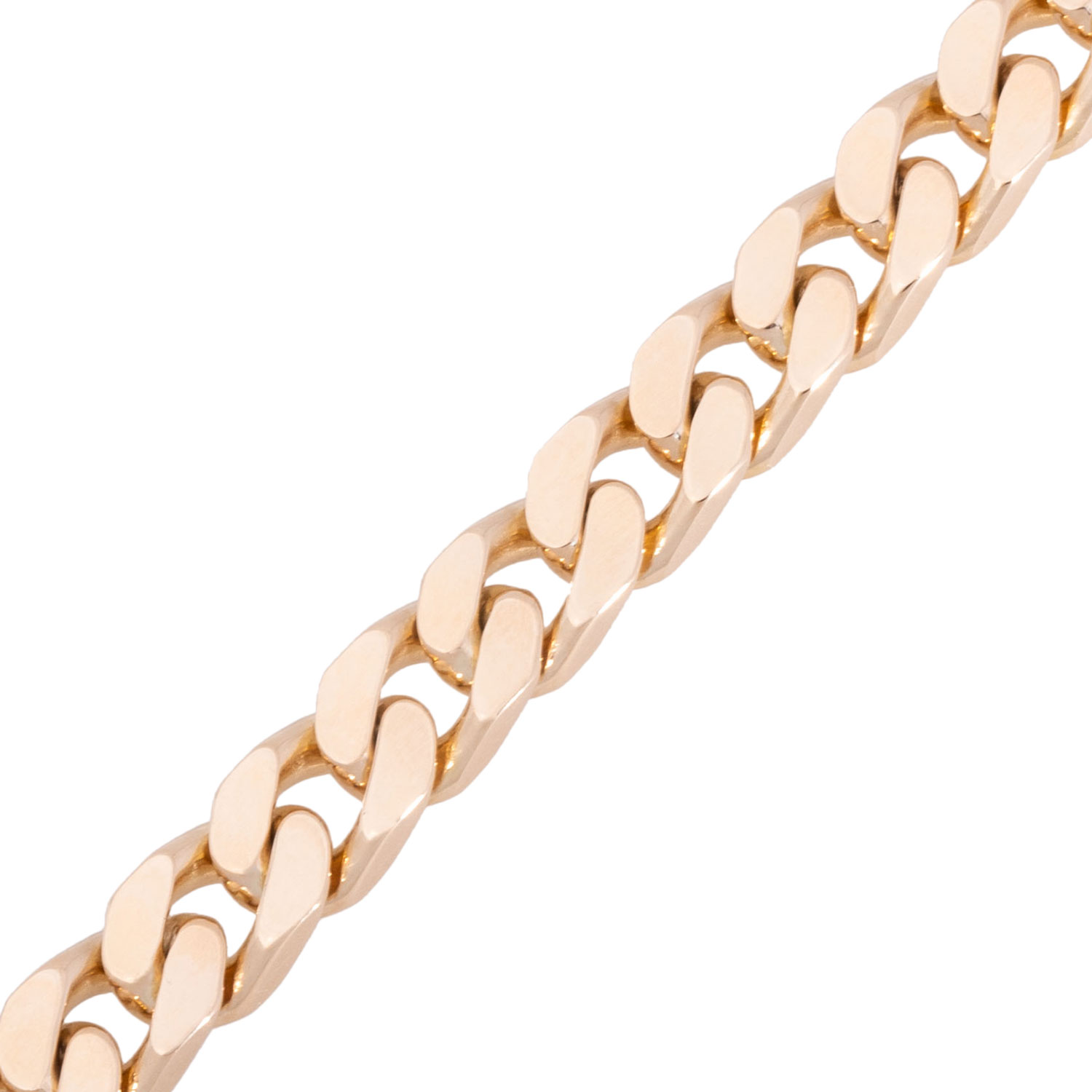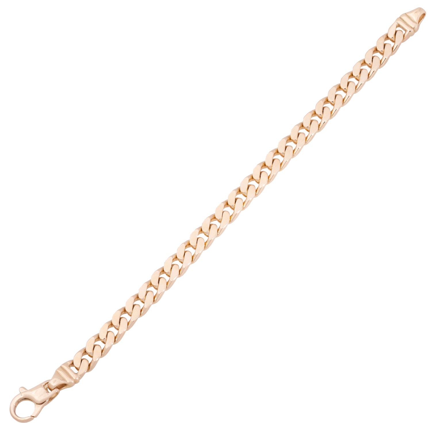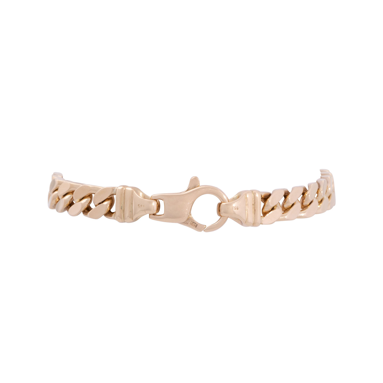 Bracelet, curb links grinded, polished, 14K yellow gold, 30.9 g, L: 19 cm, W: 7 mm, with jewelry carabiner clasp, late 20th century, minimal signs of wear.