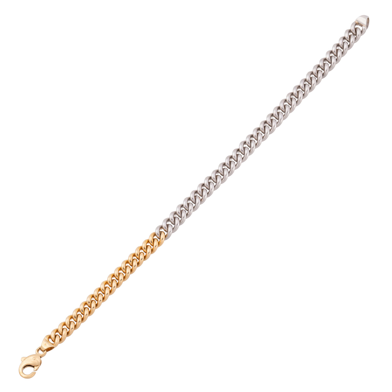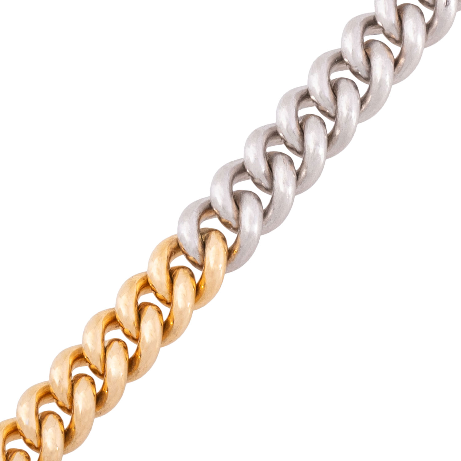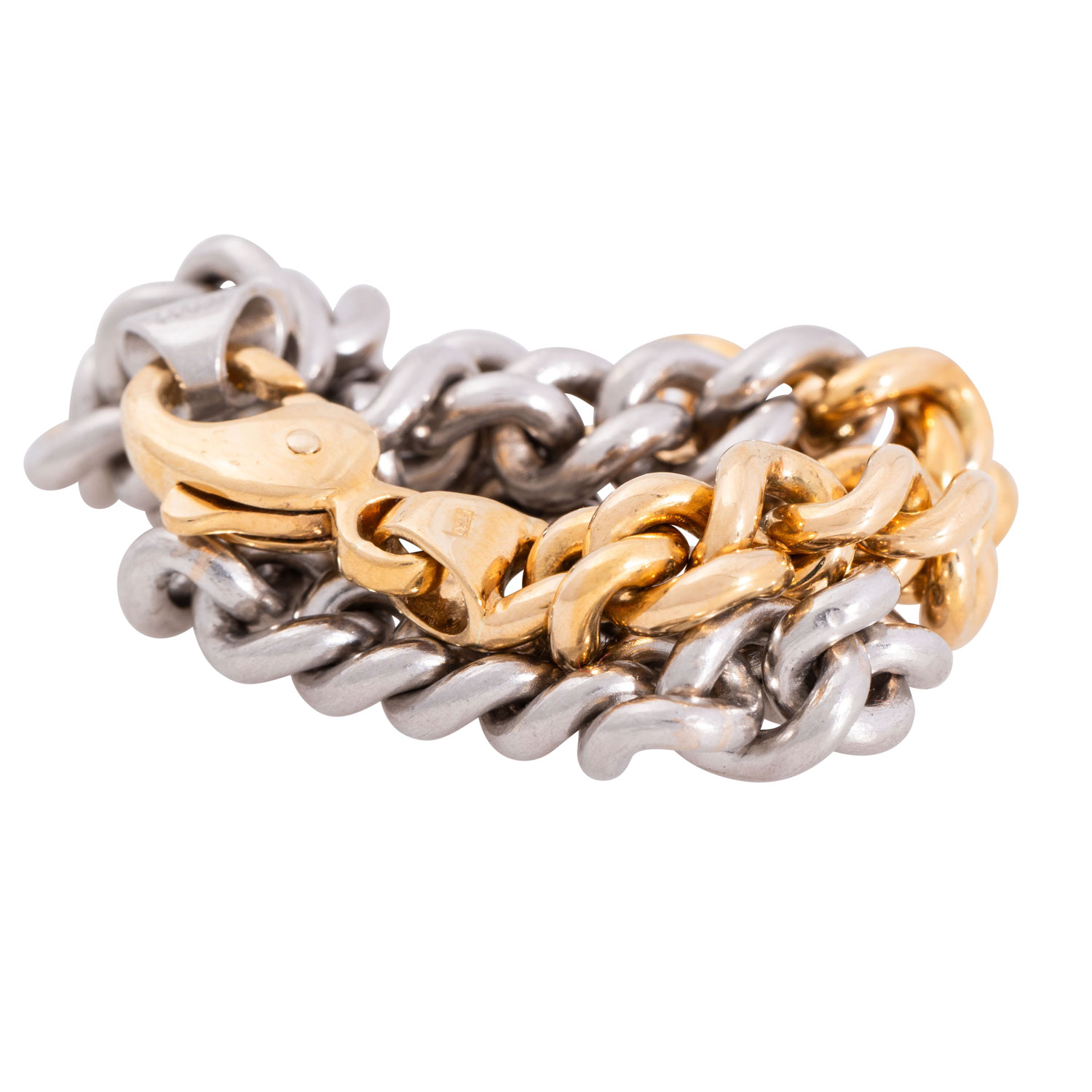 Curb link bracelet, 950 platinum/18K yellow gold, 38.4 g, L: 19.5 cm, W: ap. 6.4 mm, carabiner clasp, late 20th century, minimal signs of wear.