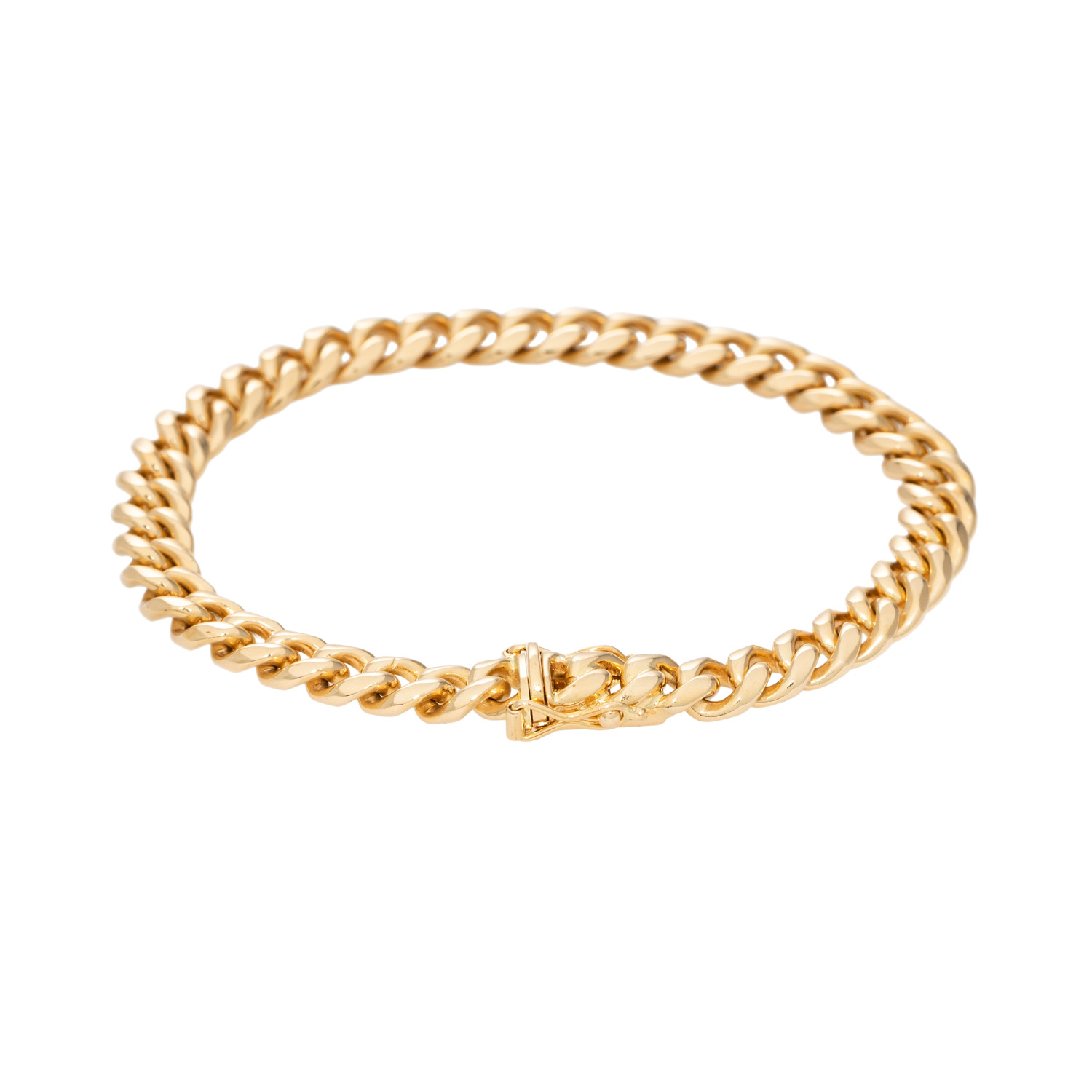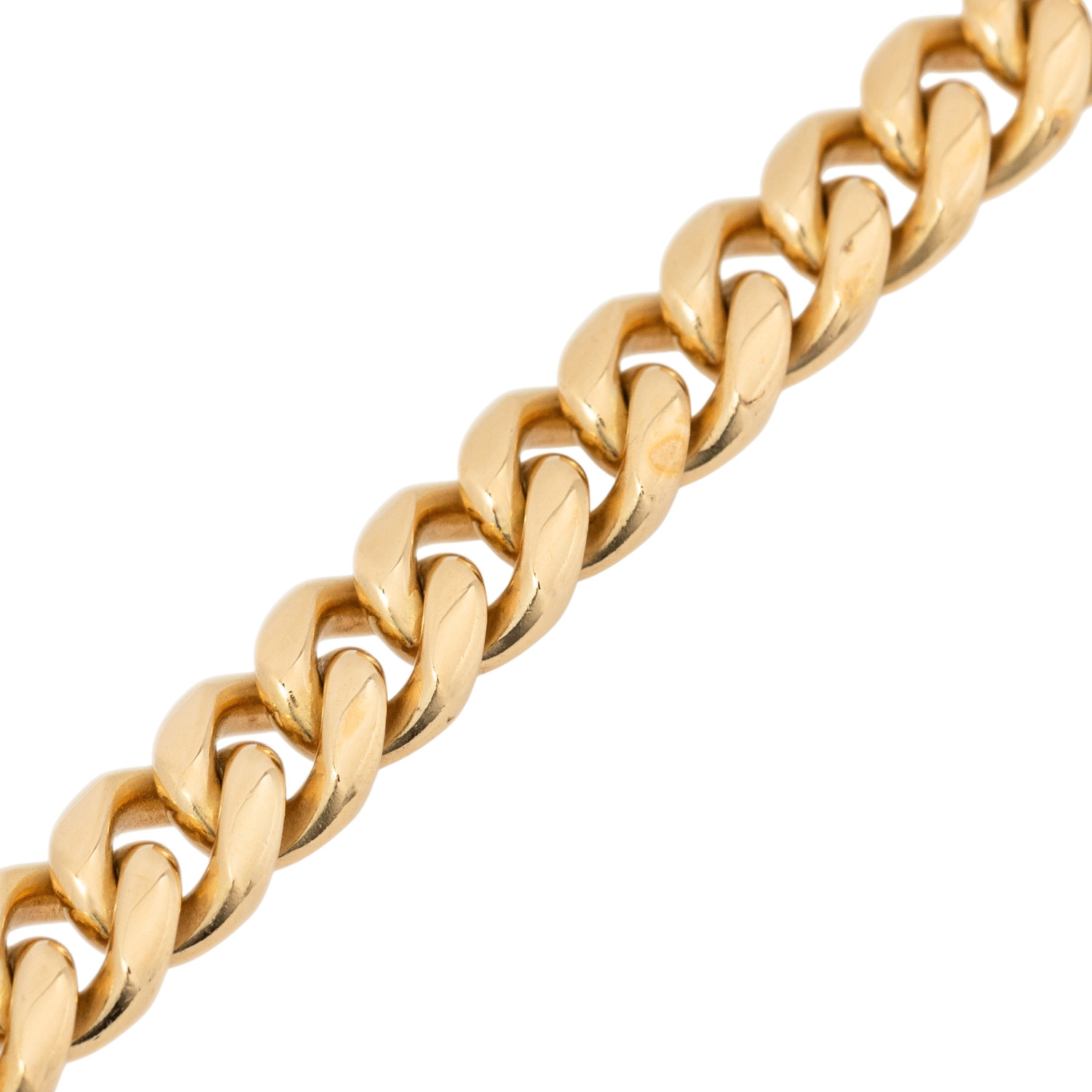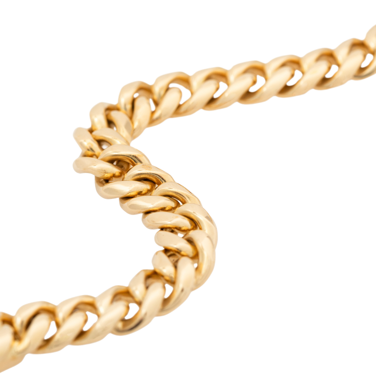 Curb link bracelet, 18K yellow gold, 39.3 g, L: 20 cm, W: 7.1 mm, box clasp, 2 safety catches, late 20th century, minor signs of wear.