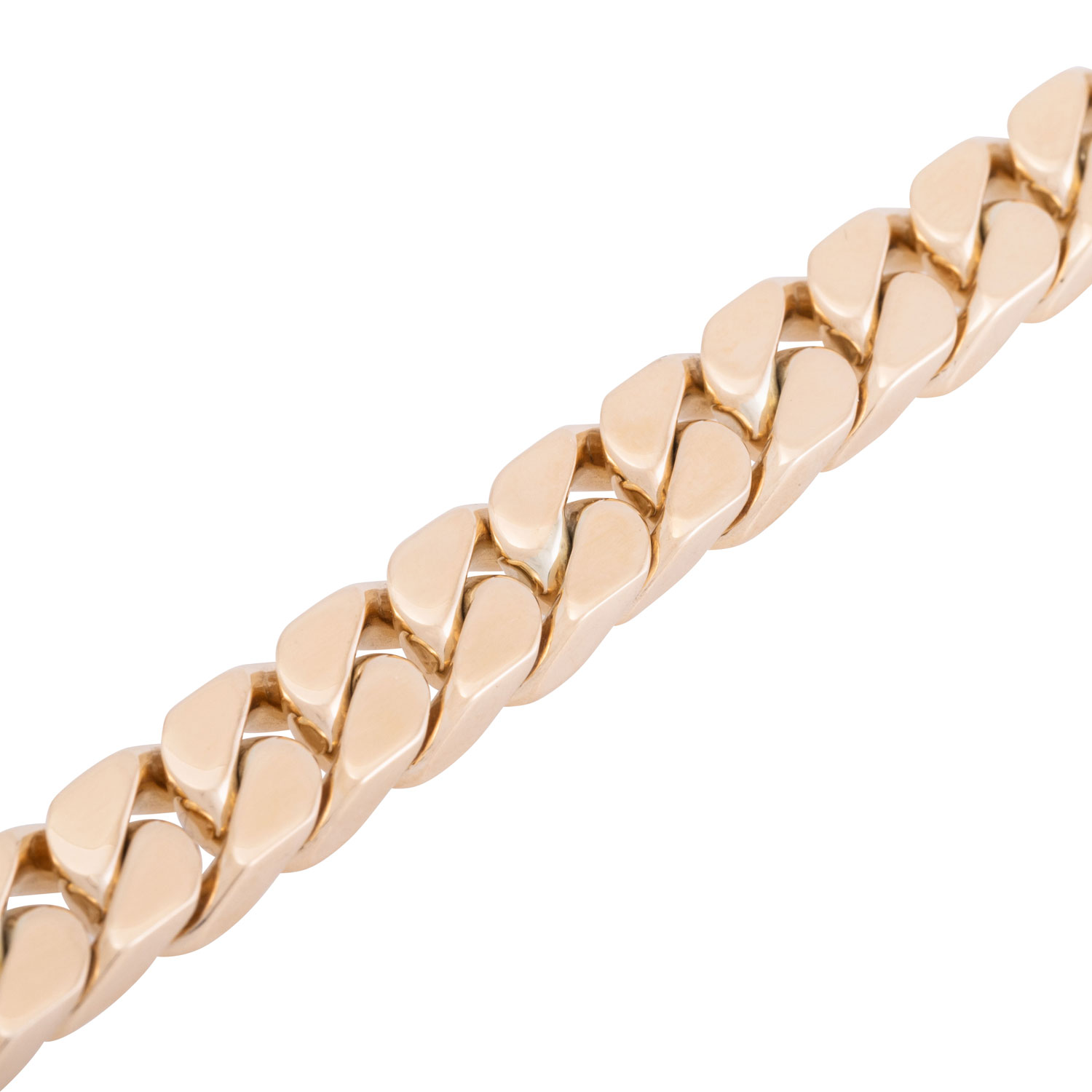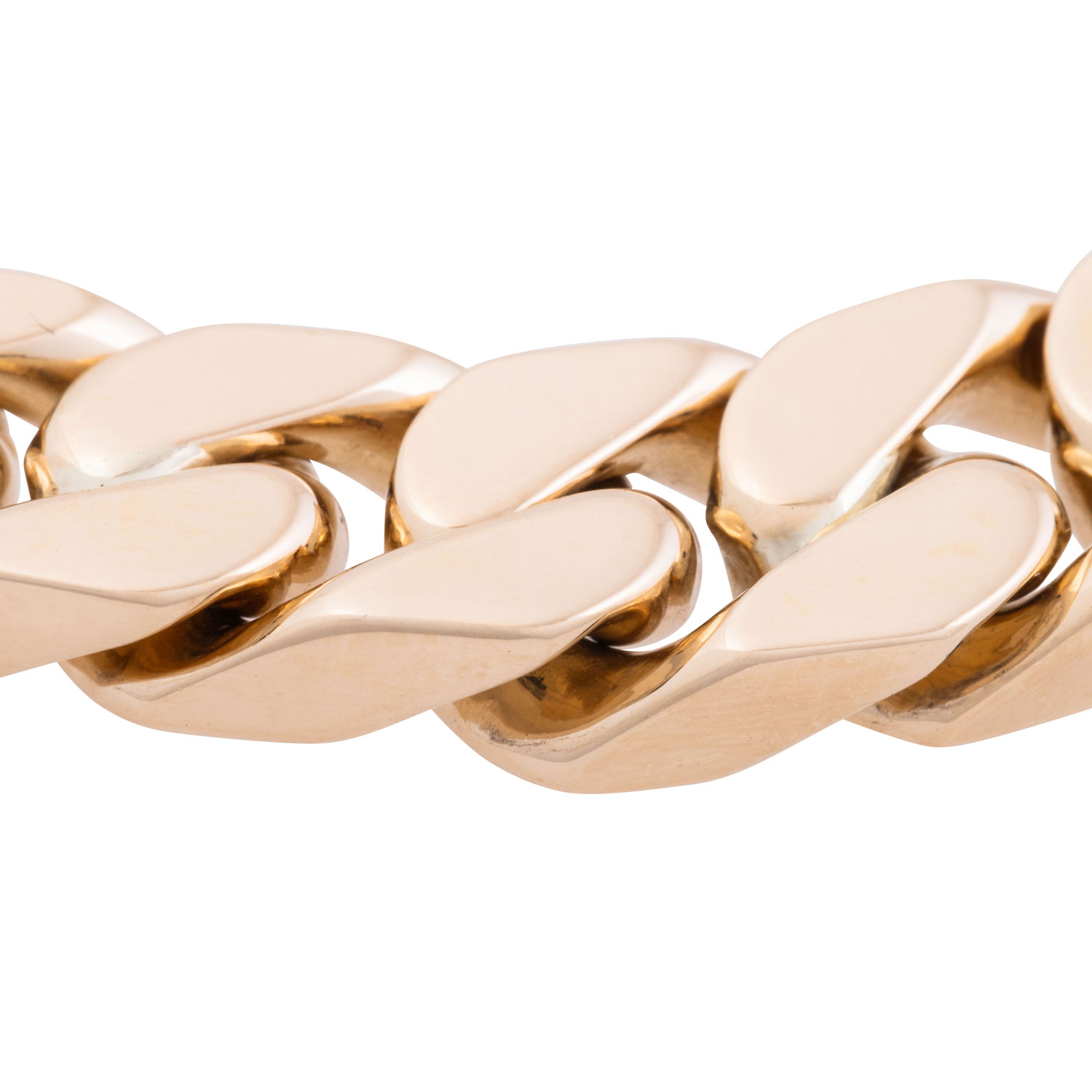 Bracelet, curb link chain grinded, 14K yellow and white gold, 56.0 g, L: 20 cm, W: 10 mm, box clasp, 2 security catches. late 20th century, minimal signs of wear.