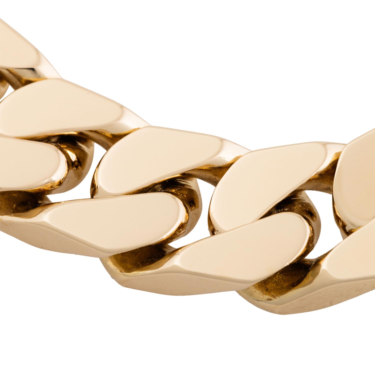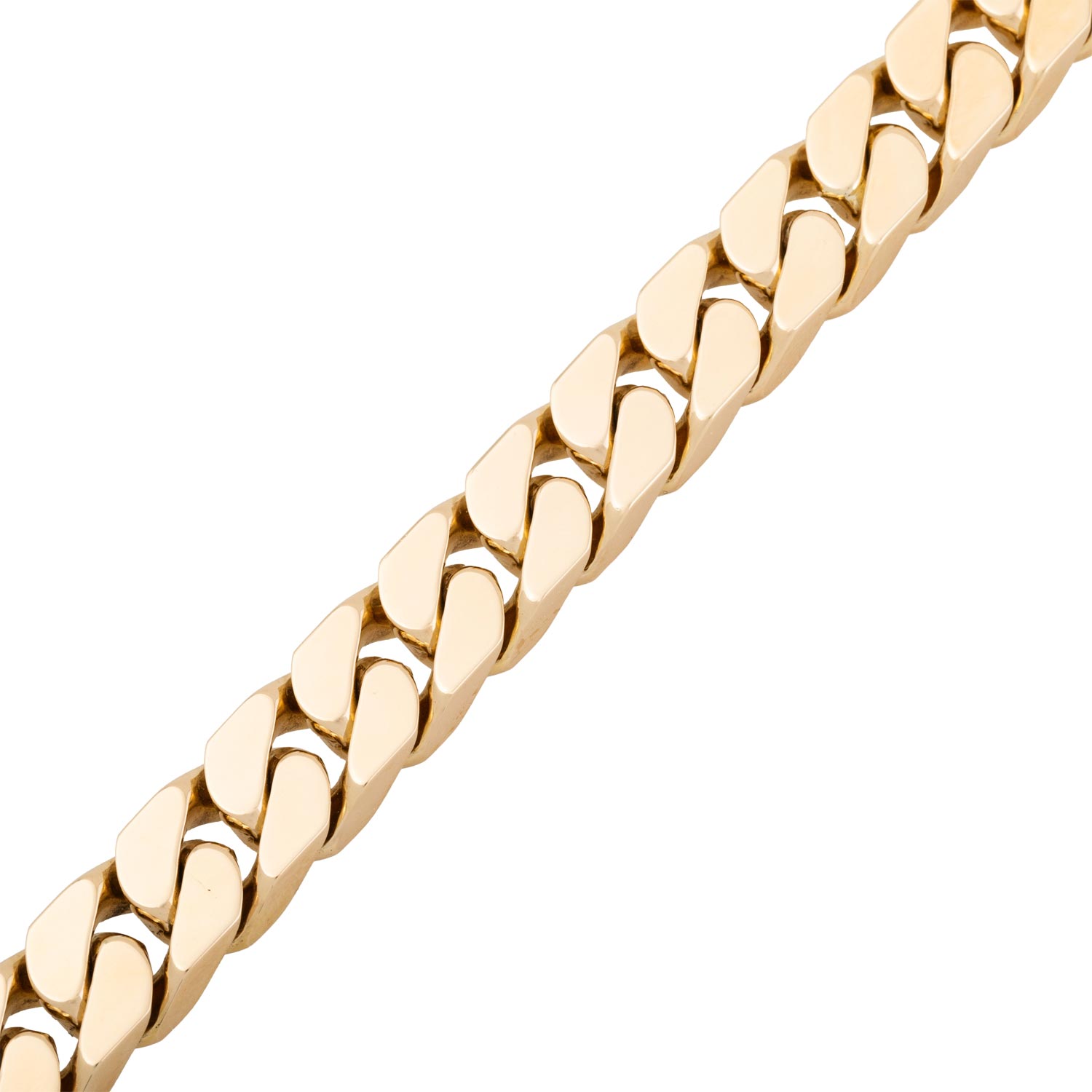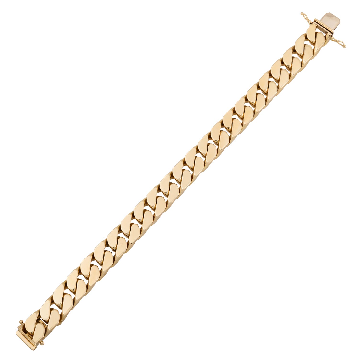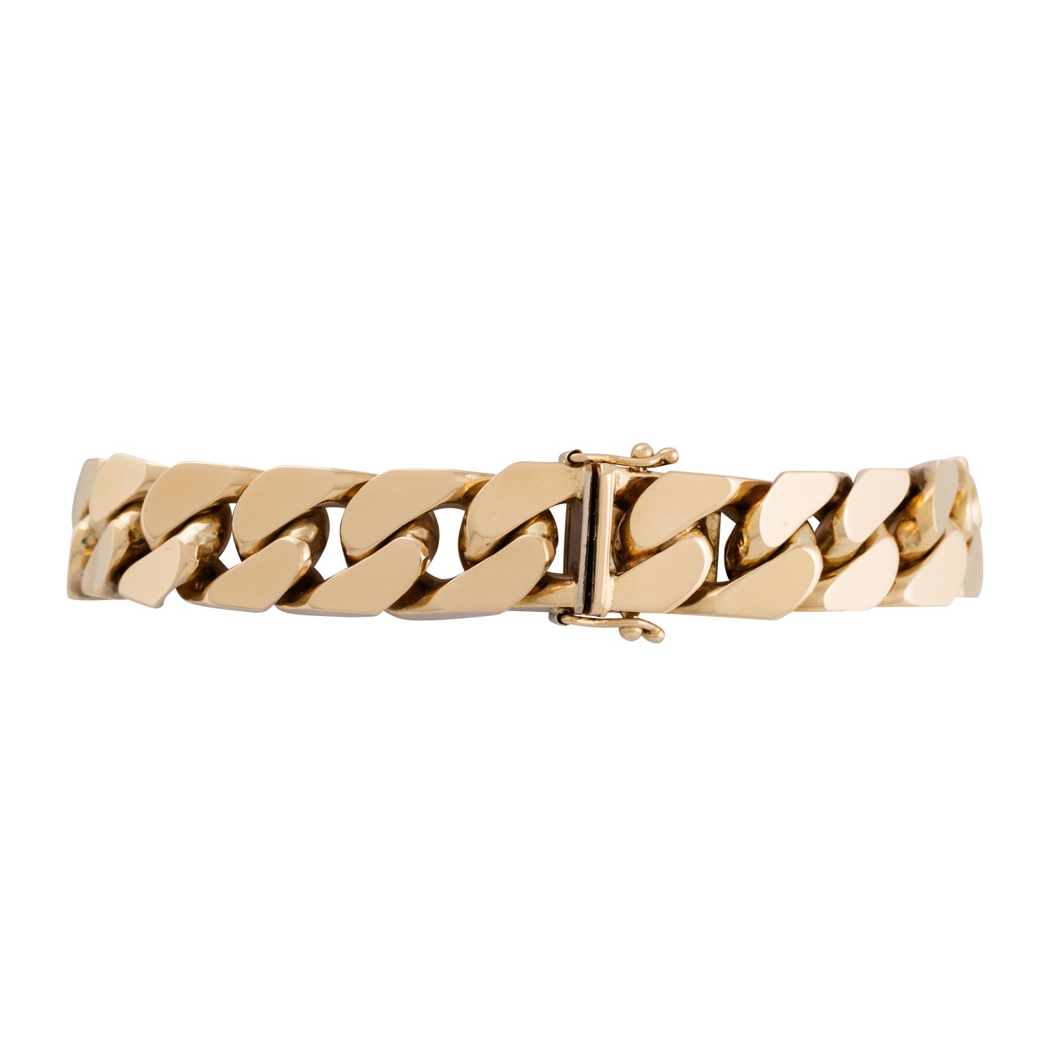 Bracelet, bilateral grinded, high polished, 14K yellow gold, 75.8 g, L: 19.5 cm, B x H: 10.5 x 4 mm, box clasp with 2 security catches, 20th/21st century, minimal signs of wear.