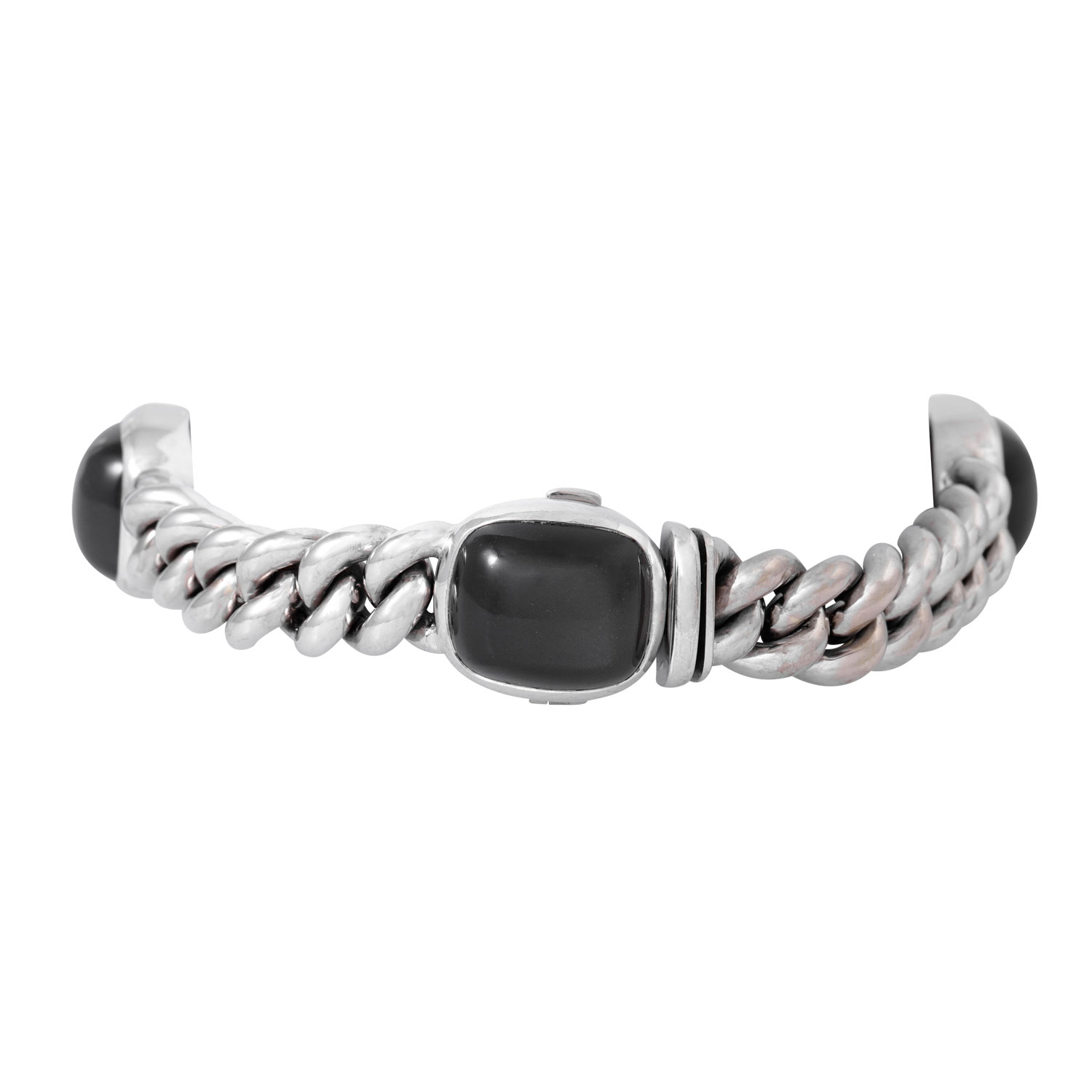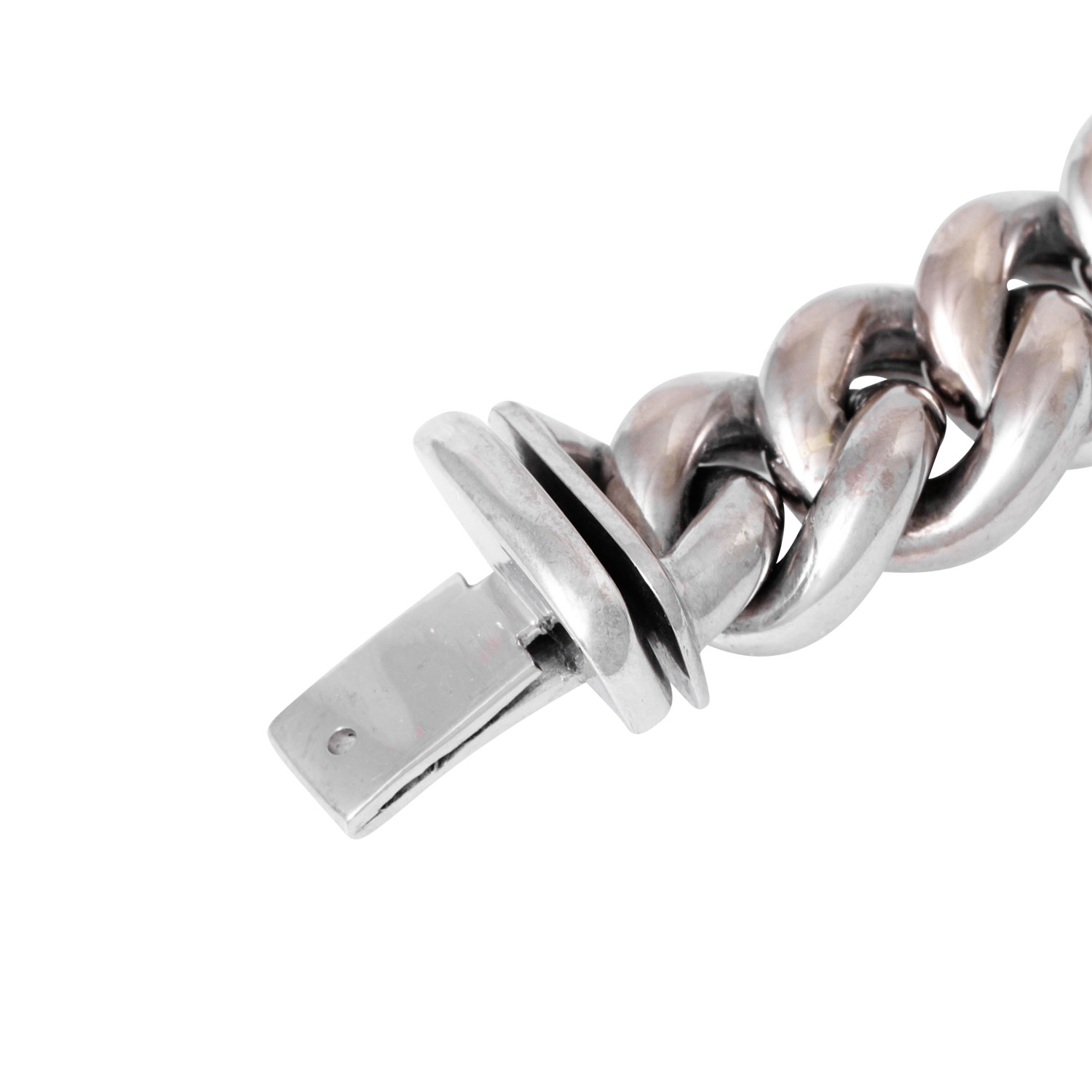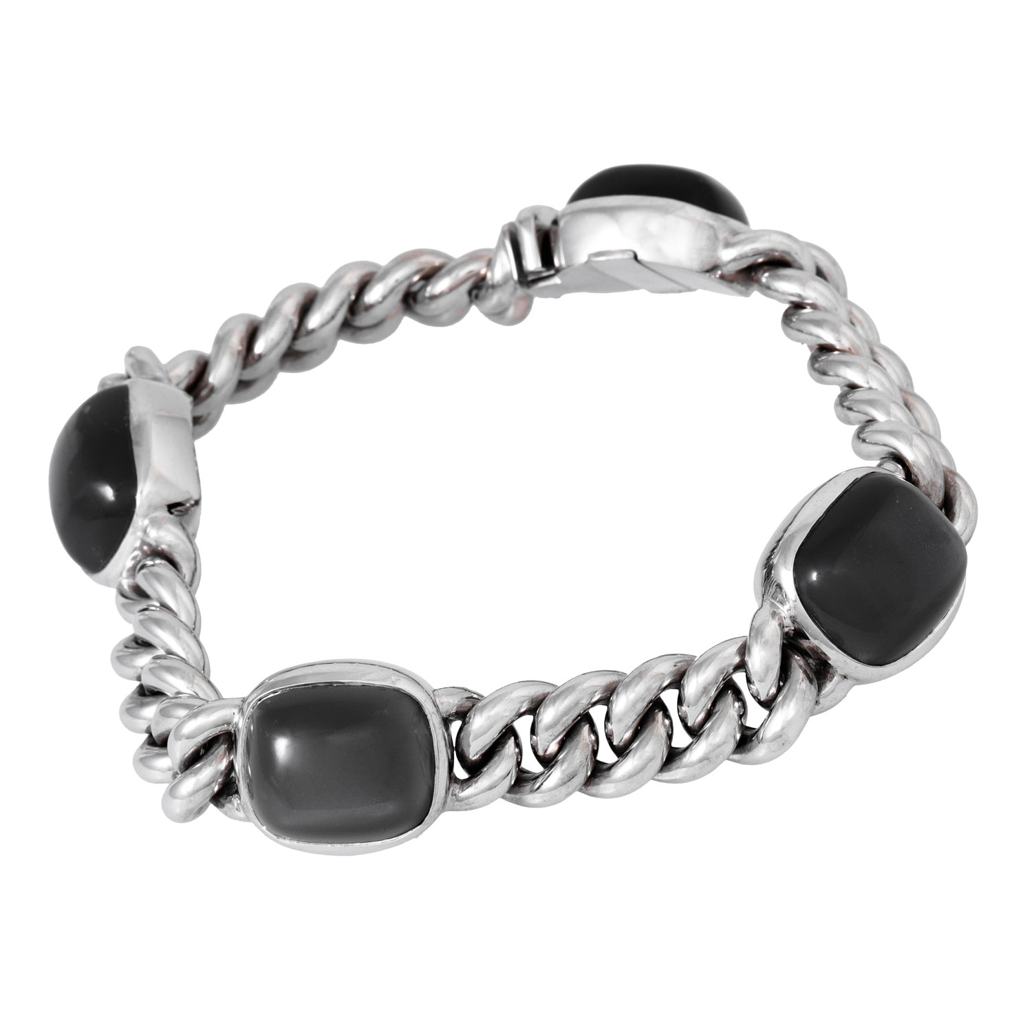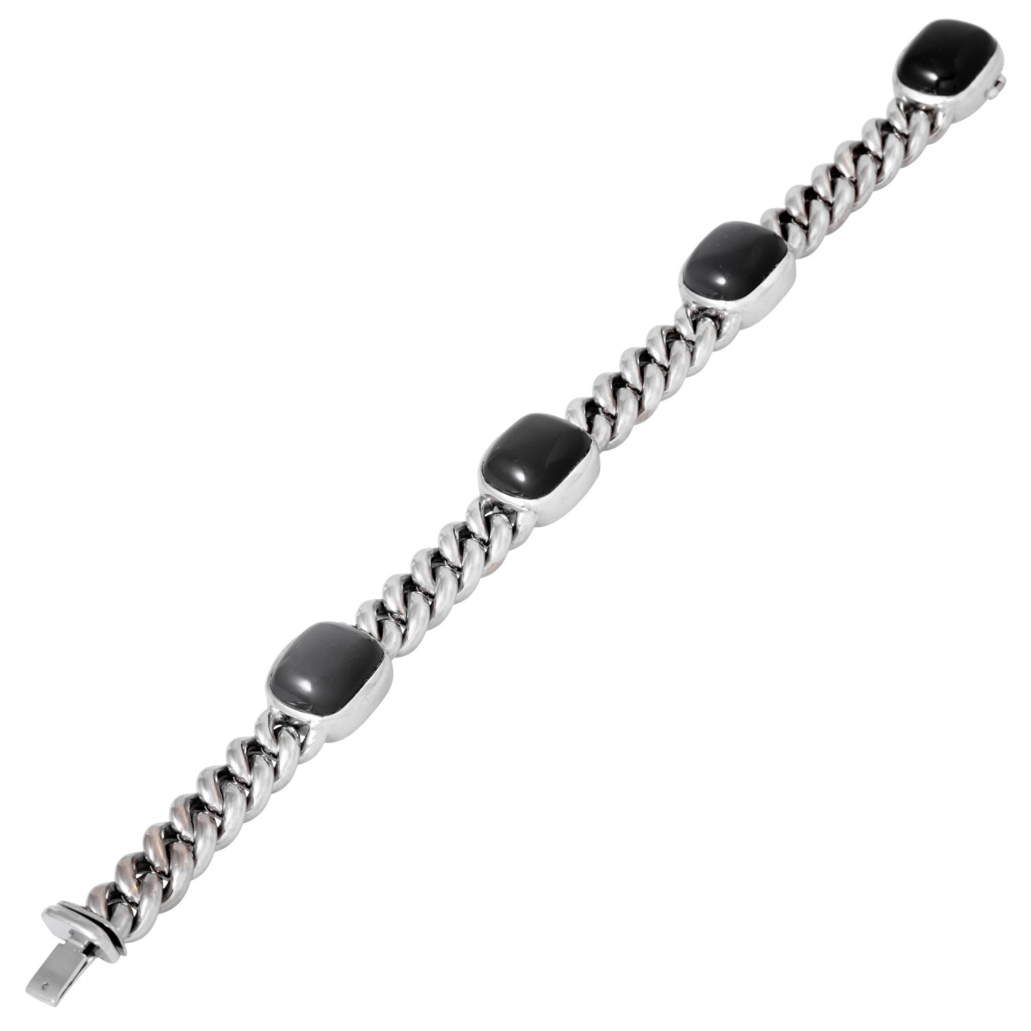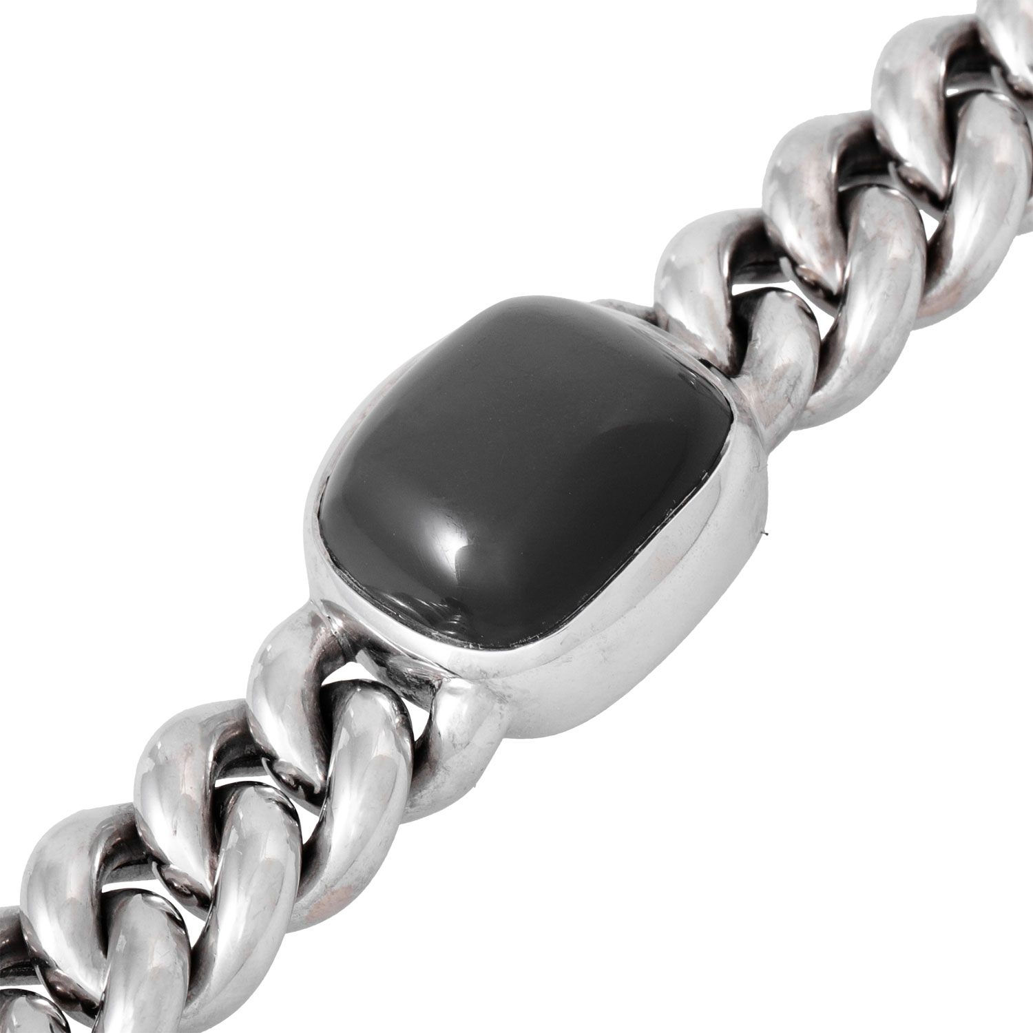 Bracelet, curb chain with 4 grey moonstones, cabochon rectangular antique, ca. 14 x 17 mm, 18K white gold, 96.0 g, L: 22,5 cm, W: 17 mm, box clasp with security flap, late 20th century, minor signs of wear.